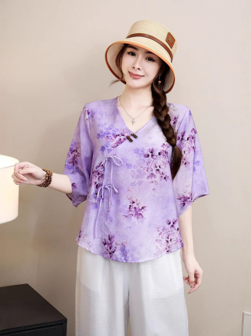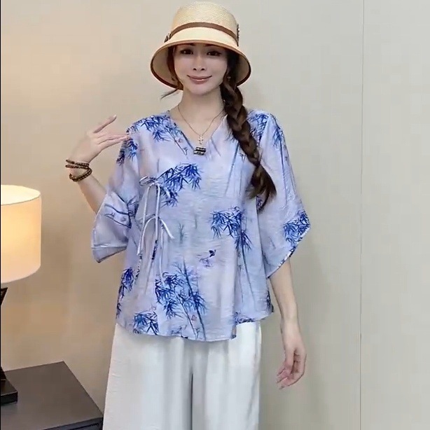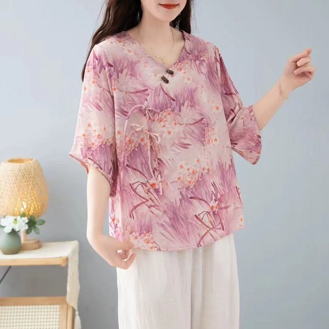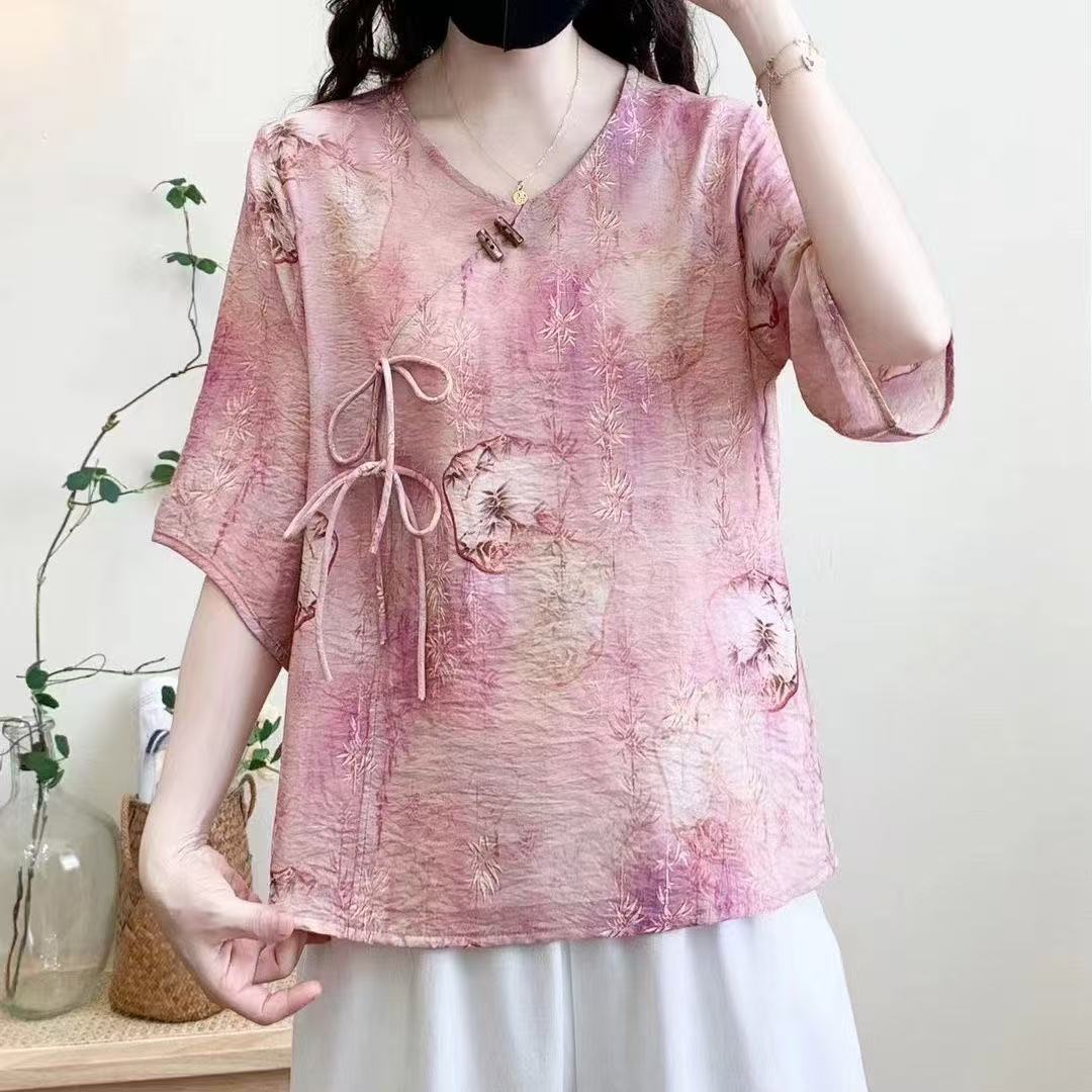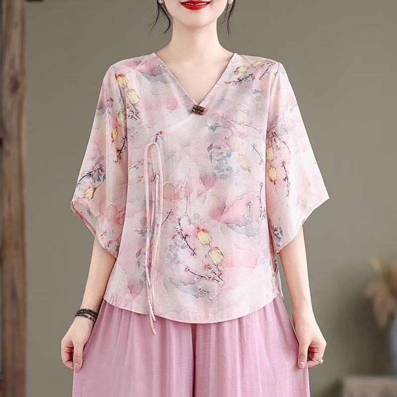 2025 новый китайский стиль женская рубашка с короткими рукавами улучшенная китайская одежда