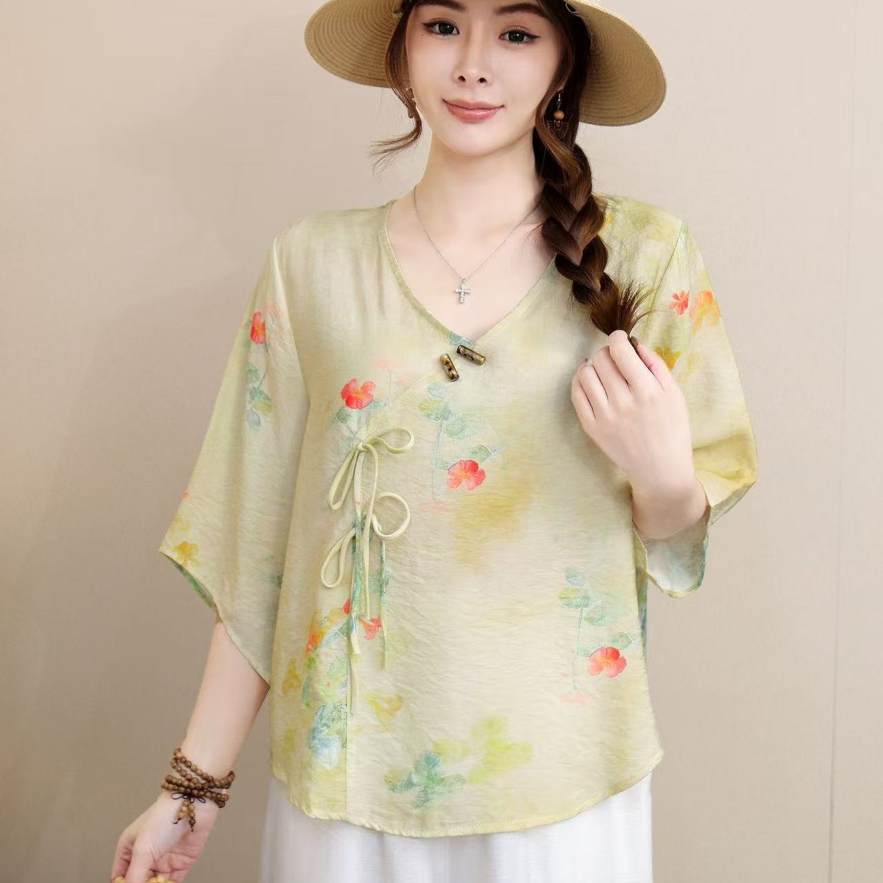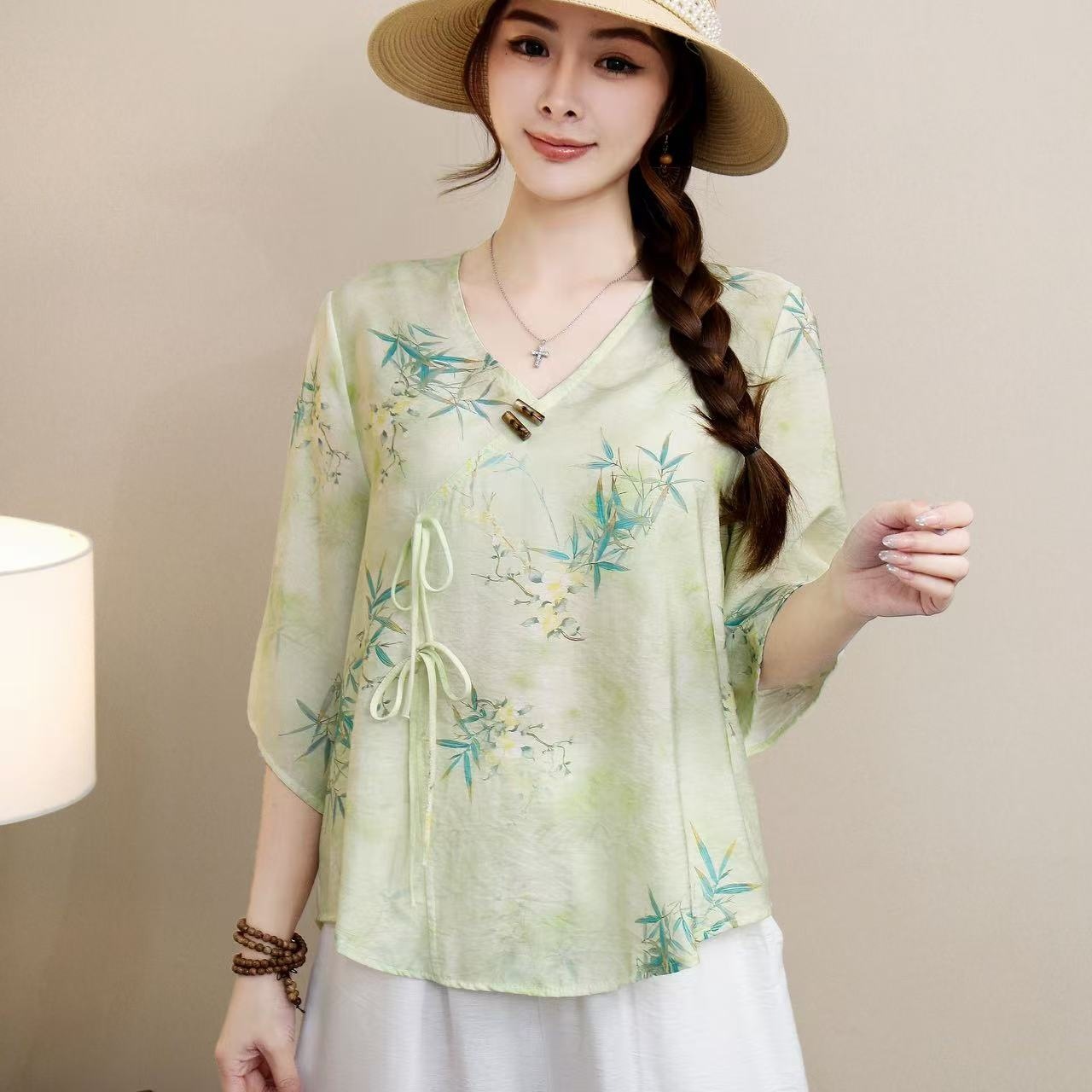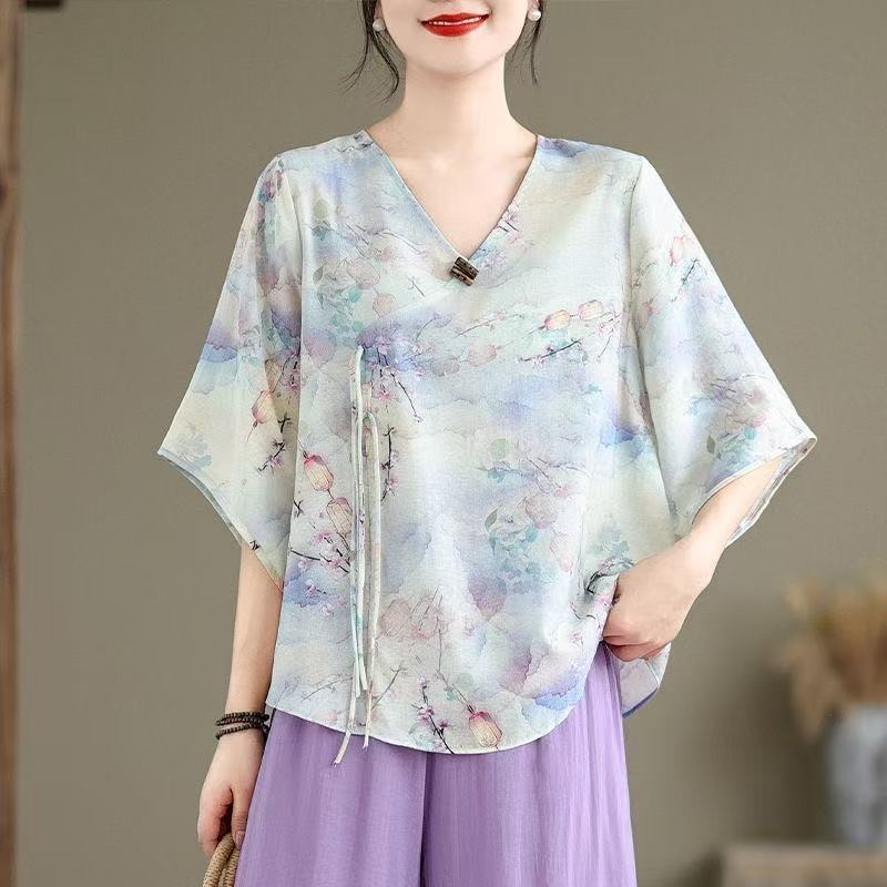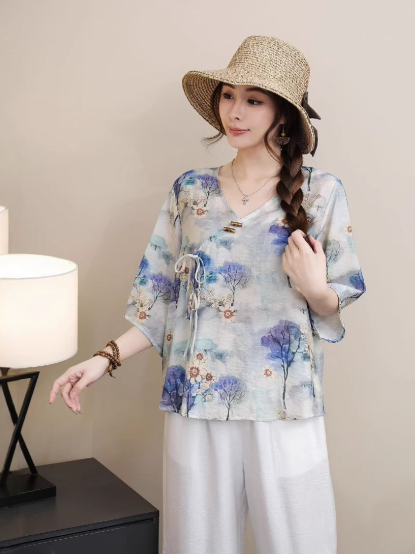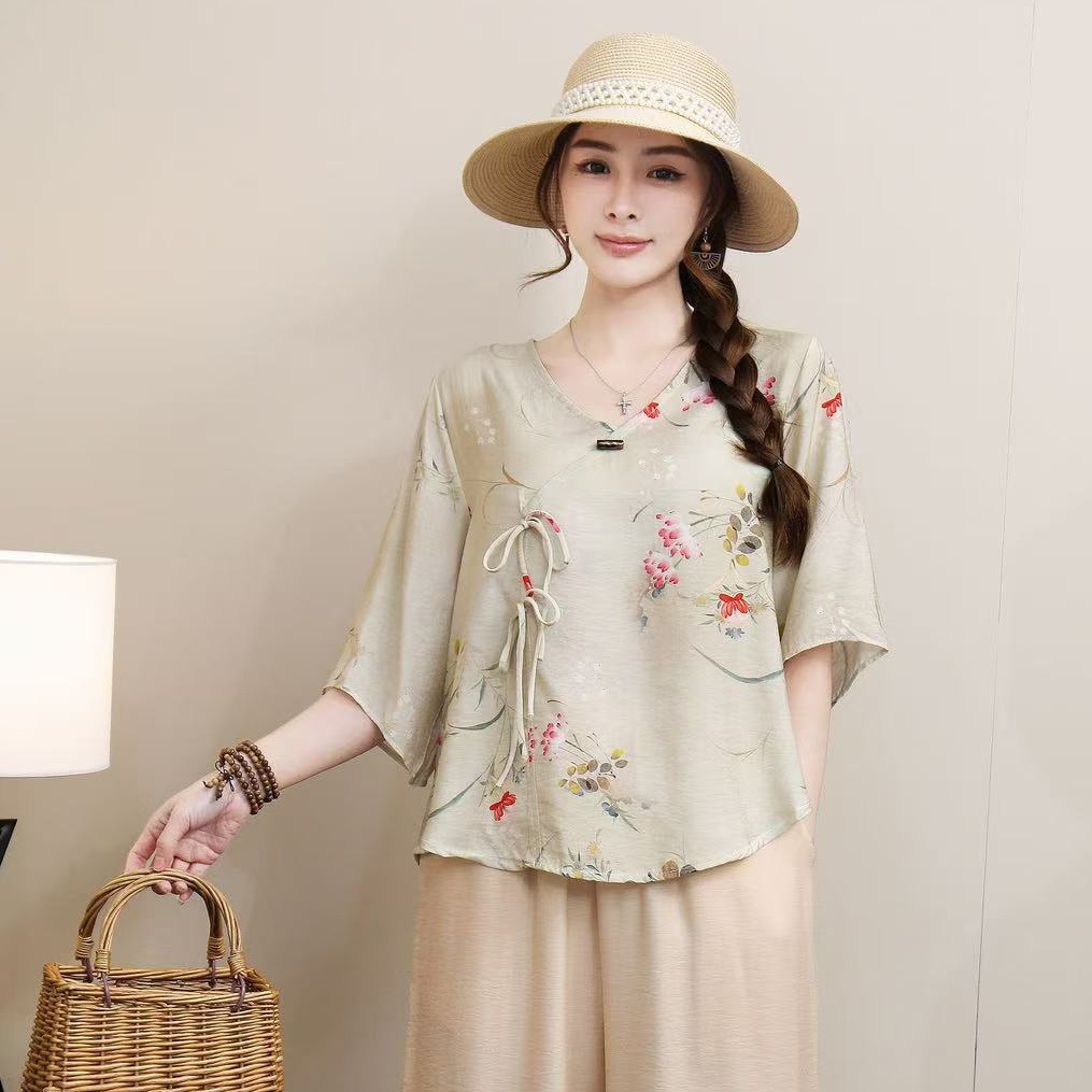 2025 новый китайский стиль женская рубашка с короткими рукавами улучшенная китайская одежда