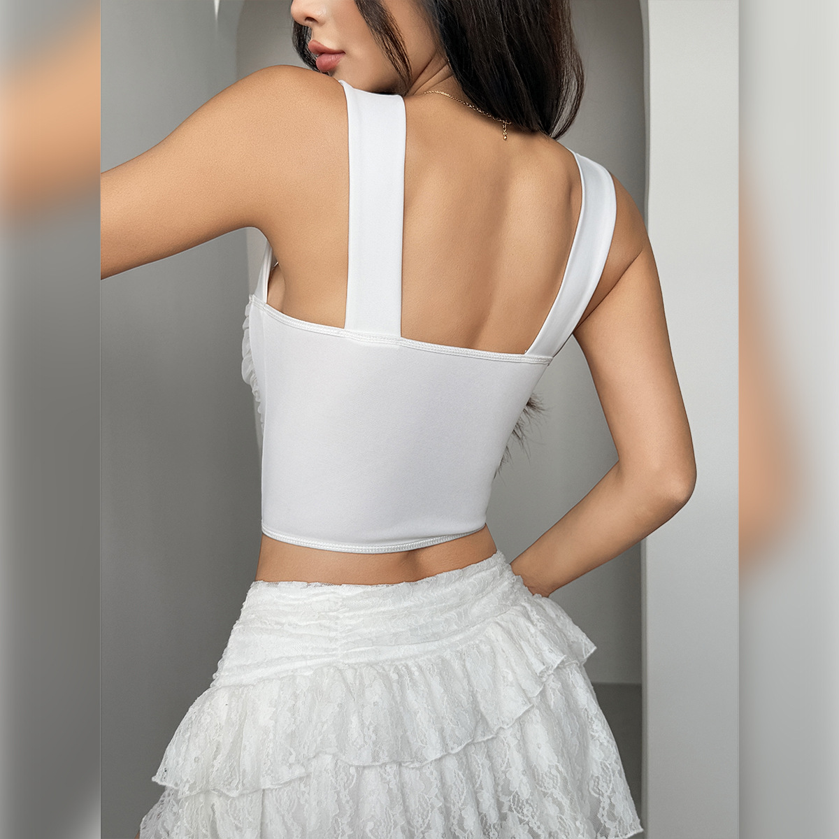 Новая трансграничная европейская и американская женская сексуальная сетчатая пряжа Перспективное сращивание покрашивание грудной грудной кости жилет 71009