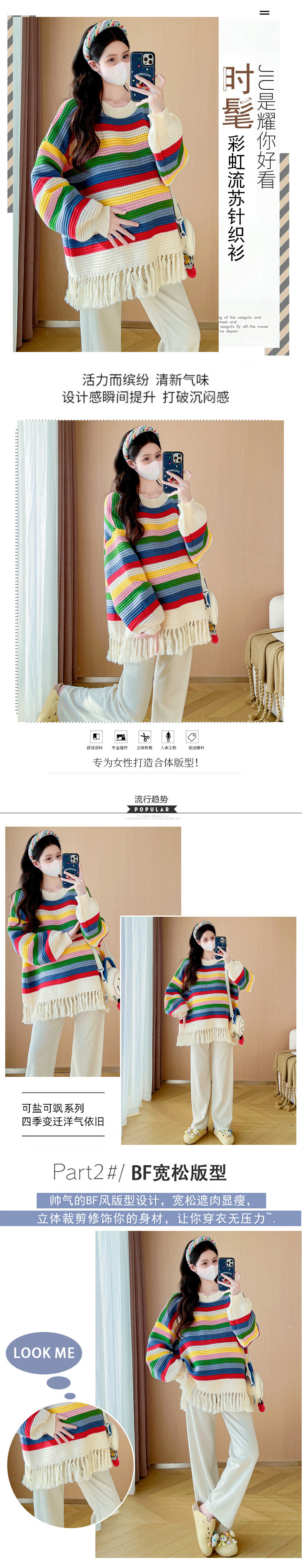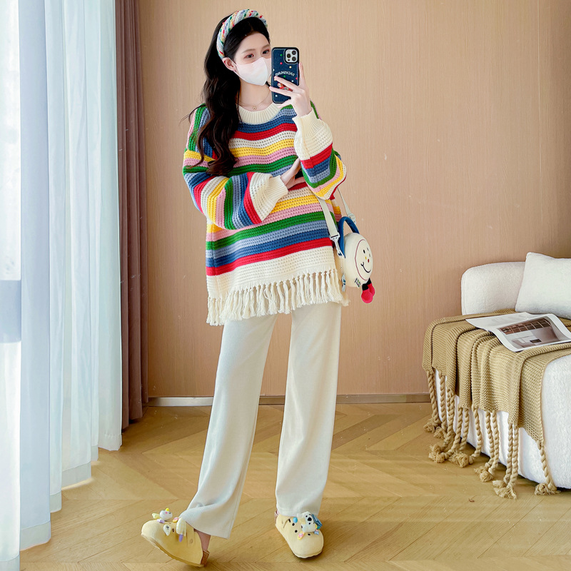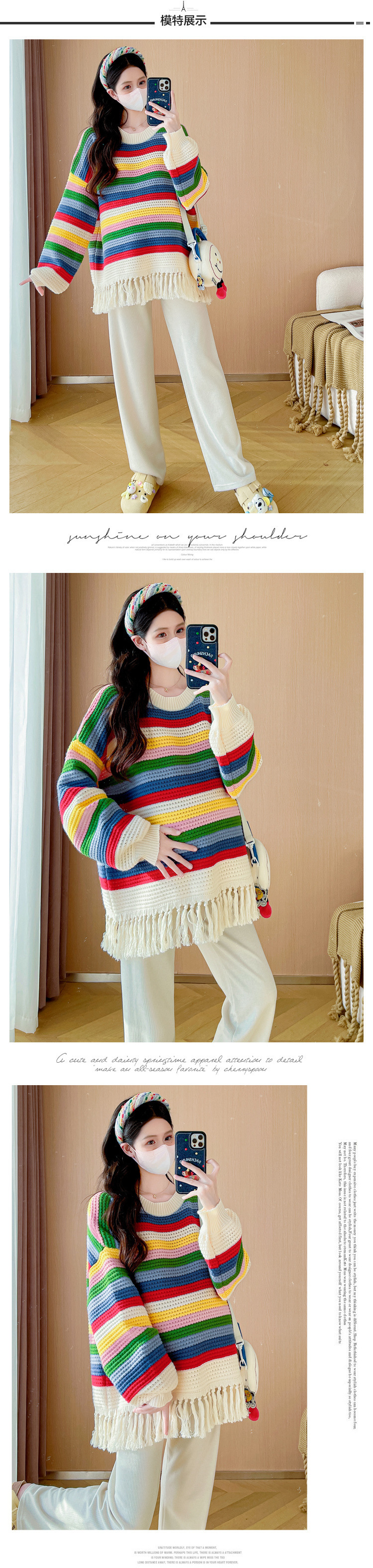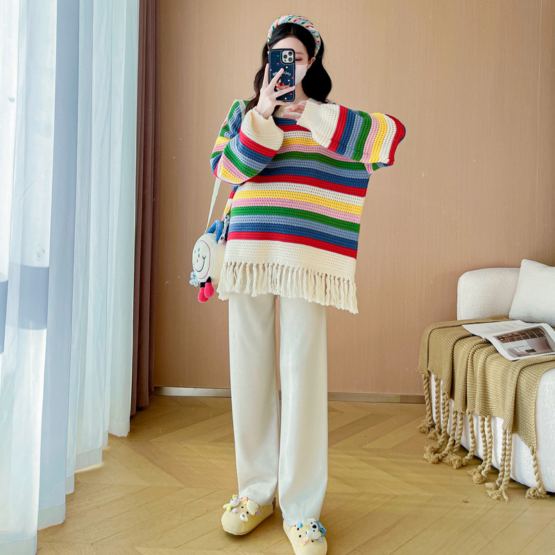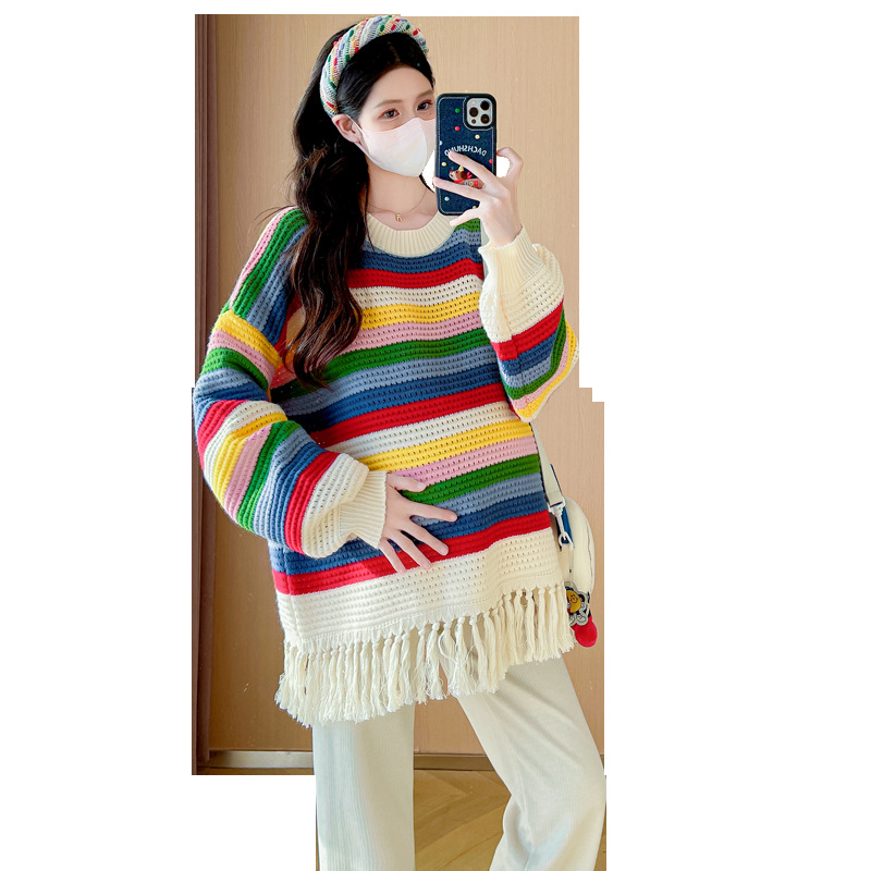 Реальная одежда для беременных Радуга в полоску свитер с бахромой осенью и зимой новый ленивый ветер повседневный свободный тонкий дикий топ