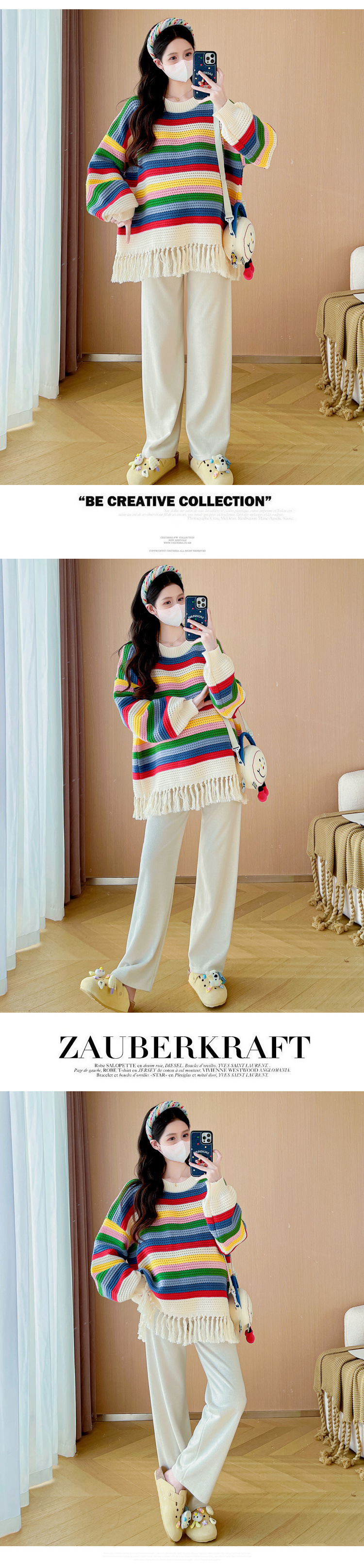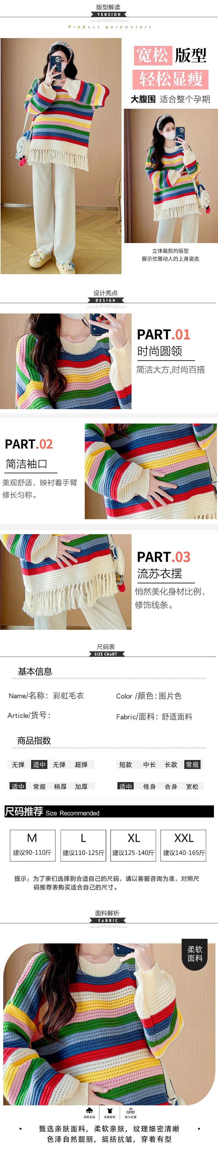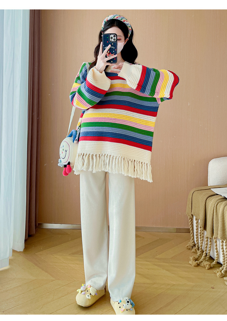 Реальная одежда для беременных Радуга в полоску свитер с бахромой осенью и зимой новый ленивый ветер повседневный свободный тонкий дикий топ