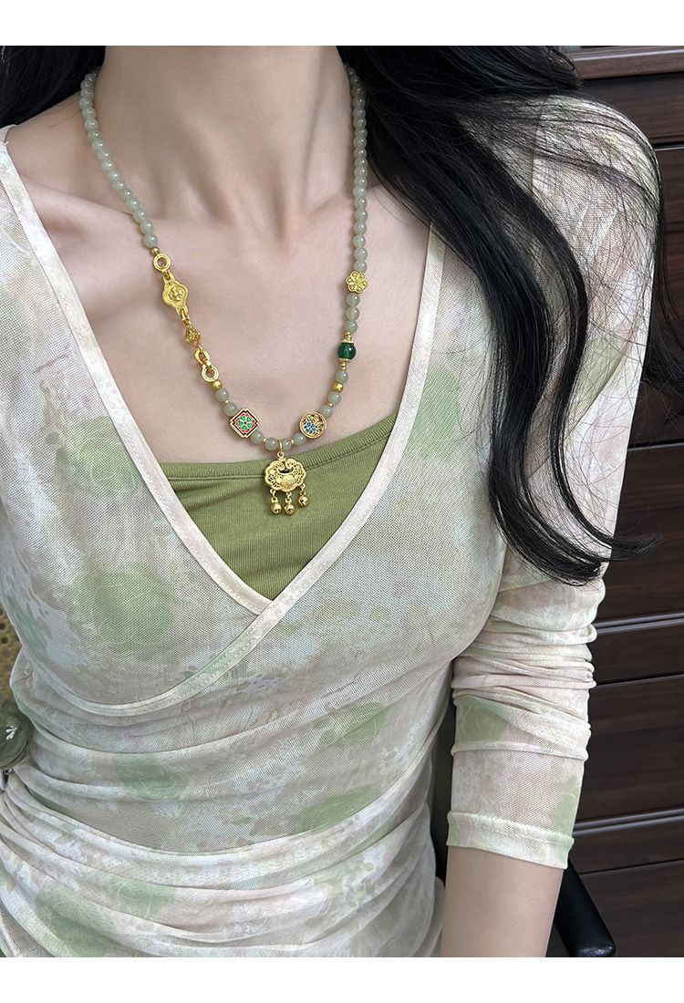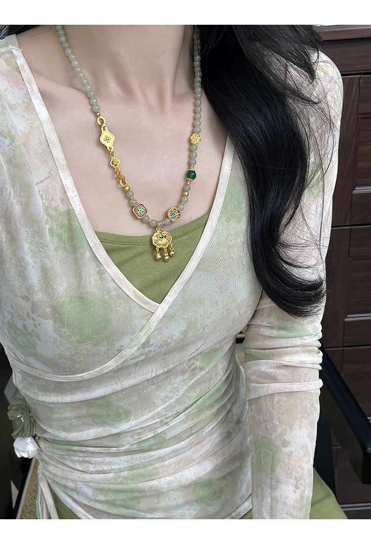 Природный год Руйи Песок Джин Хетиан замок Новый китайский стиль Оригинальный дизайн Qingshui замок женский ожерелье Руйи