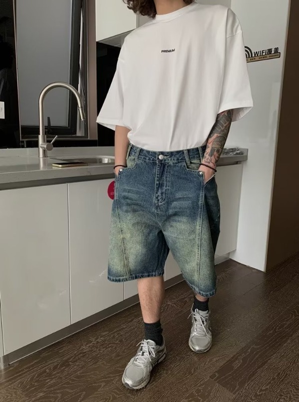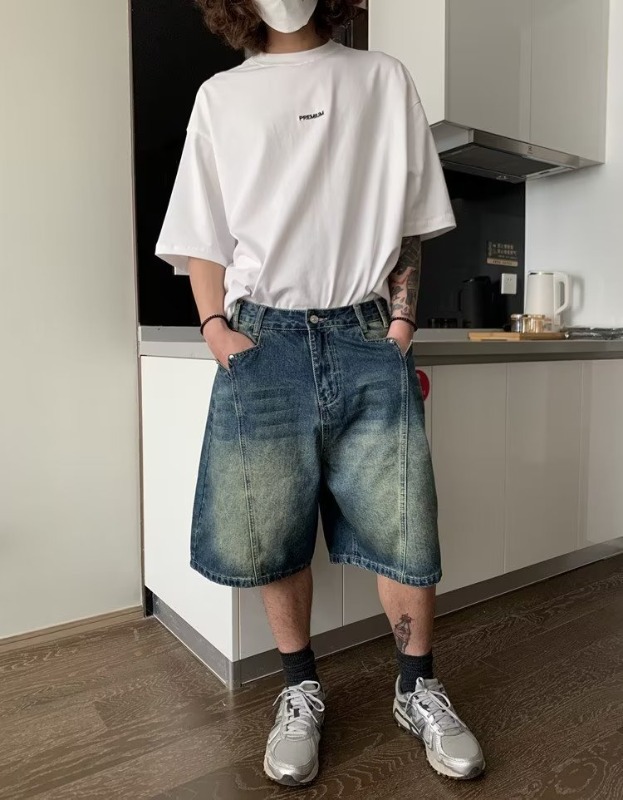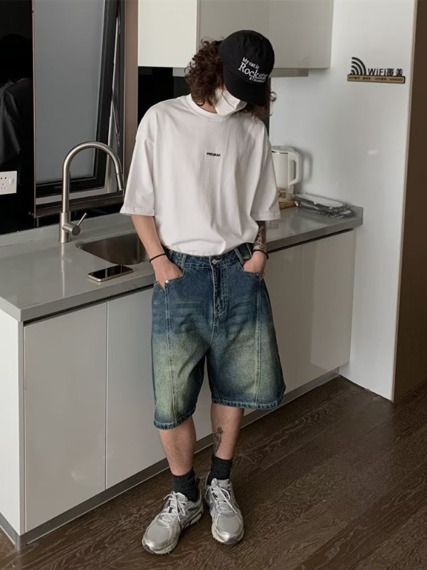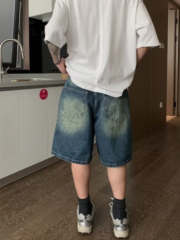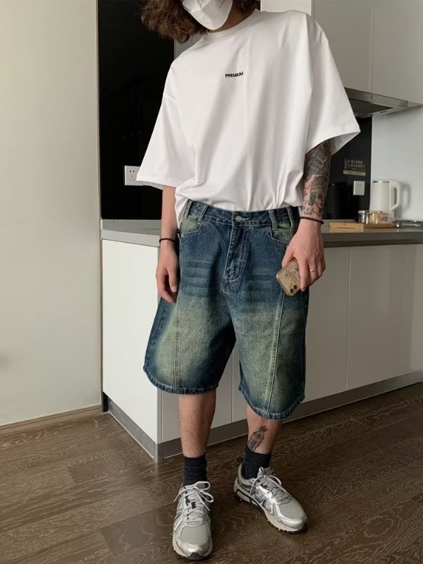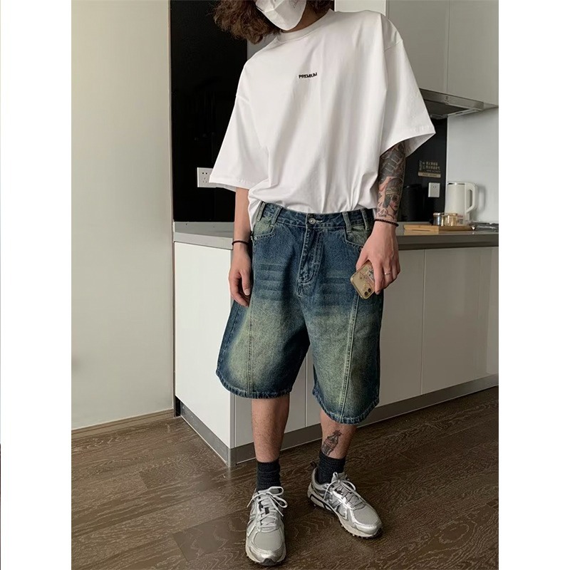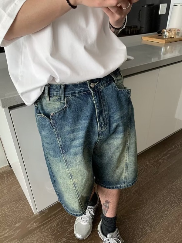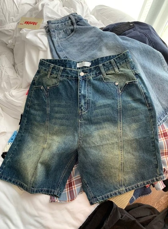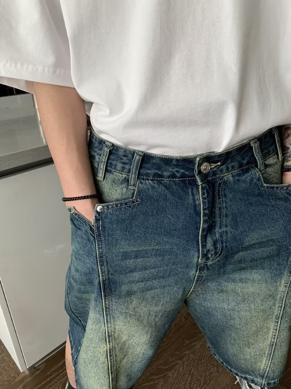 Американские ретро вымытые старые высокие улицы джинсовые шорты летние пары сращивания уличных трендов уличные укороченные брюки для мужчин и женщин