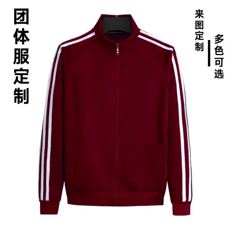 2025 Весенний фестиваль Новый винно-красный праздничный мальчик и девушка в одной и той же командной форме с тремя полосками с длинными рукавами костюм внешней торговли