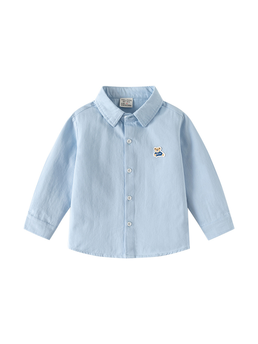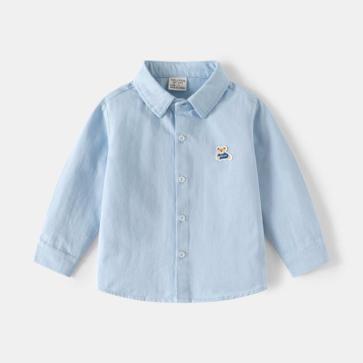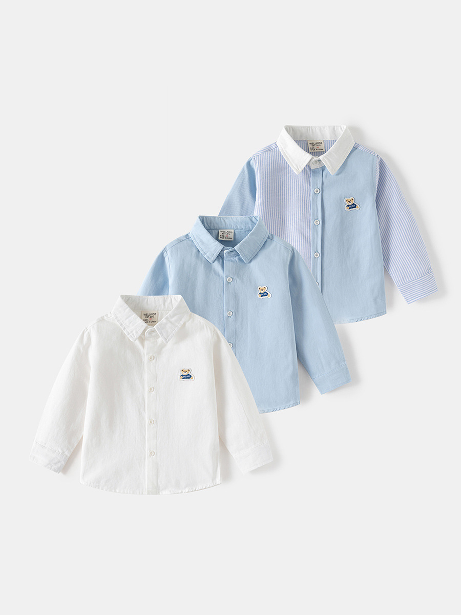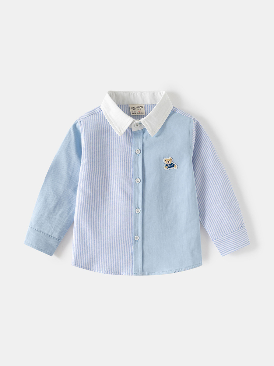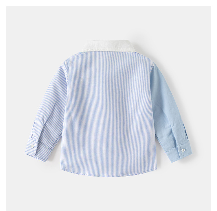 Рубашка с длинными рукавами для мальчиков оптом 2025 новая детская полосатая вышивка рубашка корейская версия свободной рубашки для волос