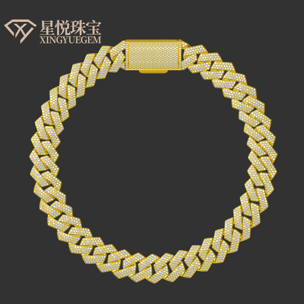 Европейская и американская трансграничная мода простой полный бриллиант женский тонкий браслет 8 mm-20 mm мужские толстые хип-хоп конские кнут полный бриллиант кубинская цепь