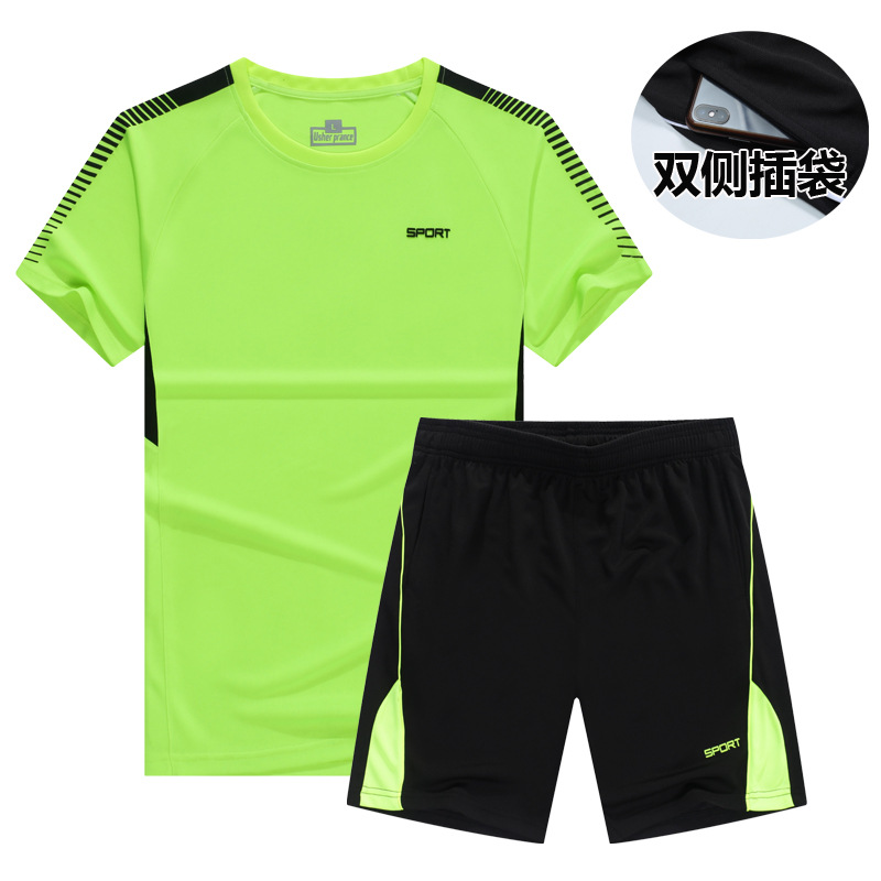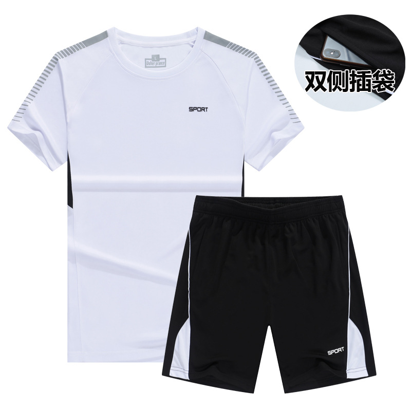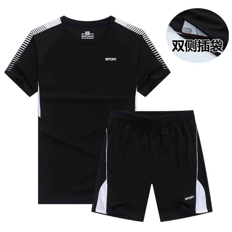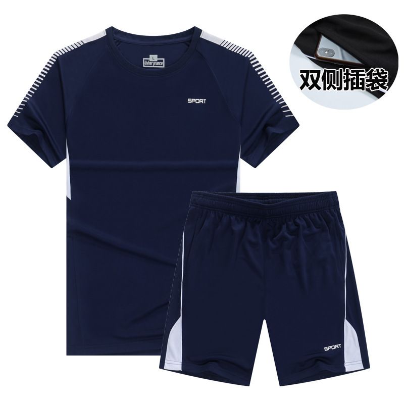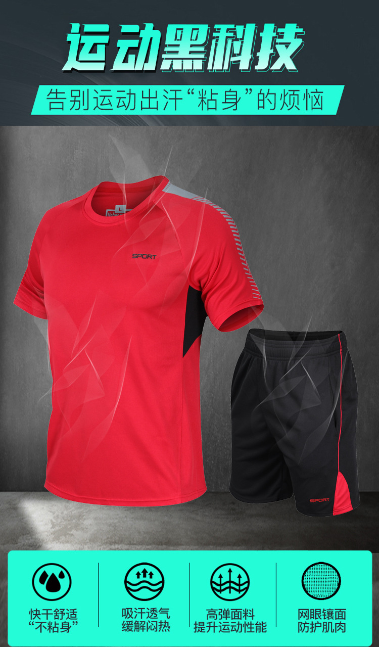 Спортивный костюм Мужские шорты с короткими рукавами Мужские шорты прилив, повседневный спортивный набор Ice шелк, быстрохненные шорты с короткими рукавами