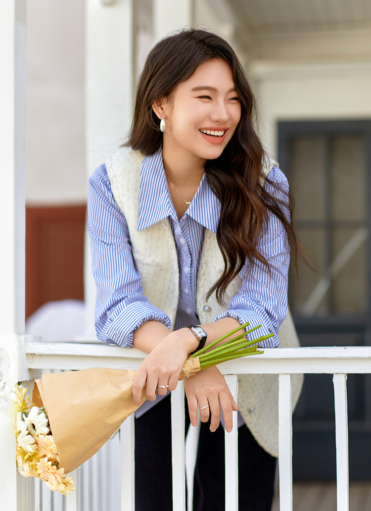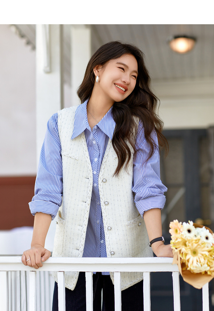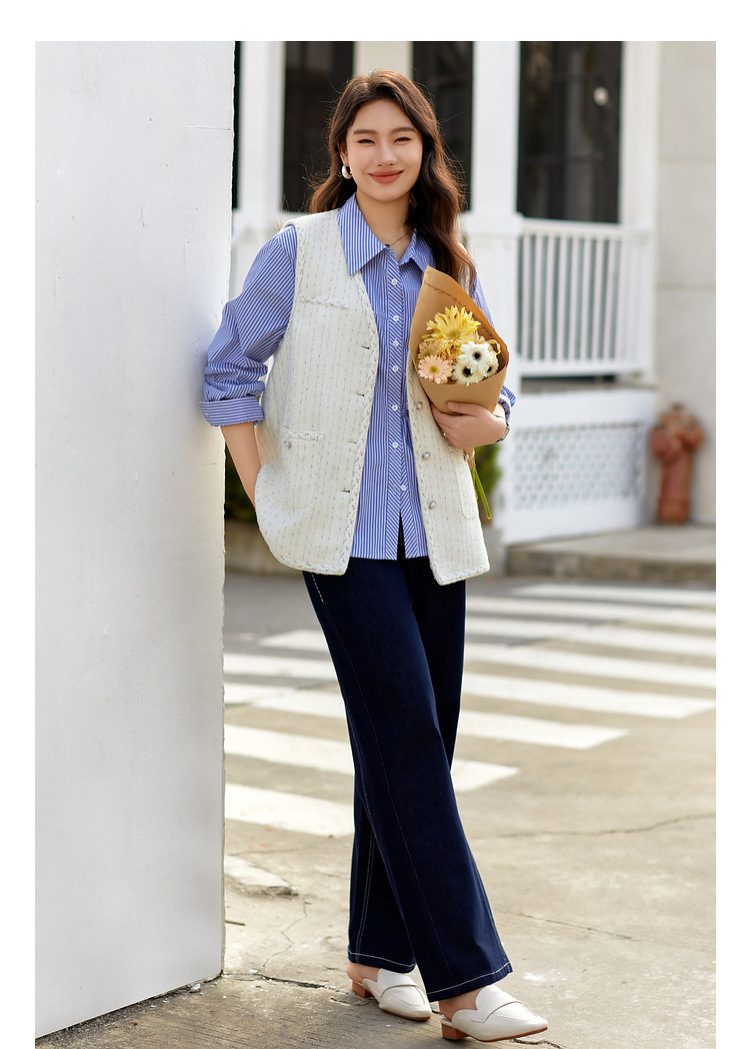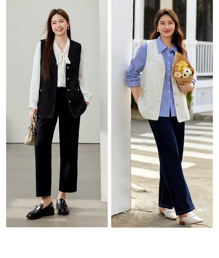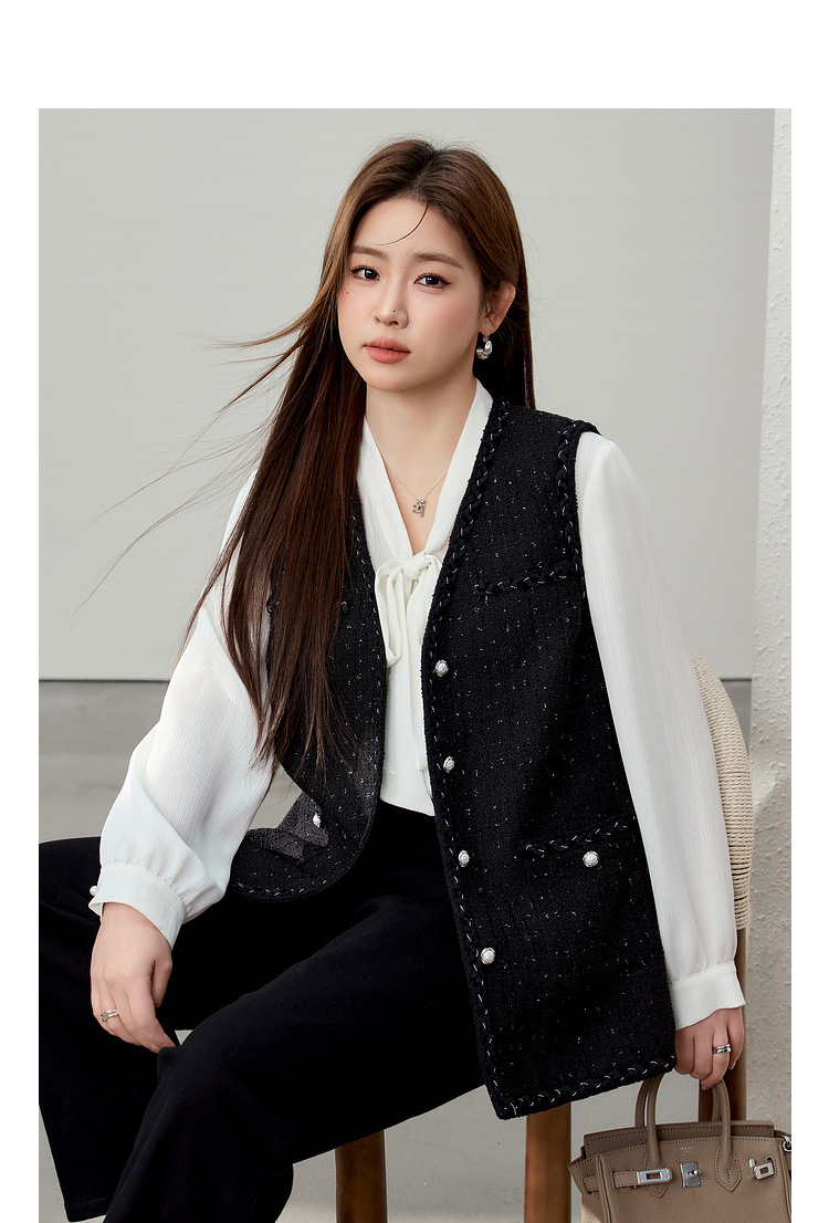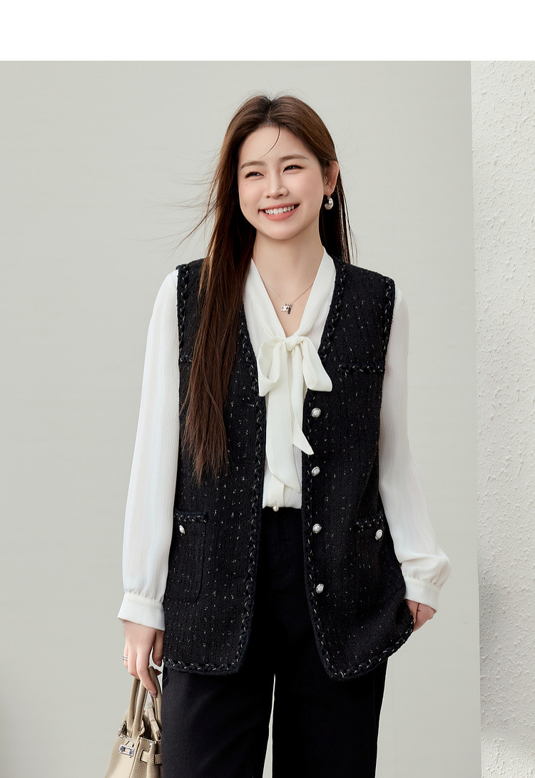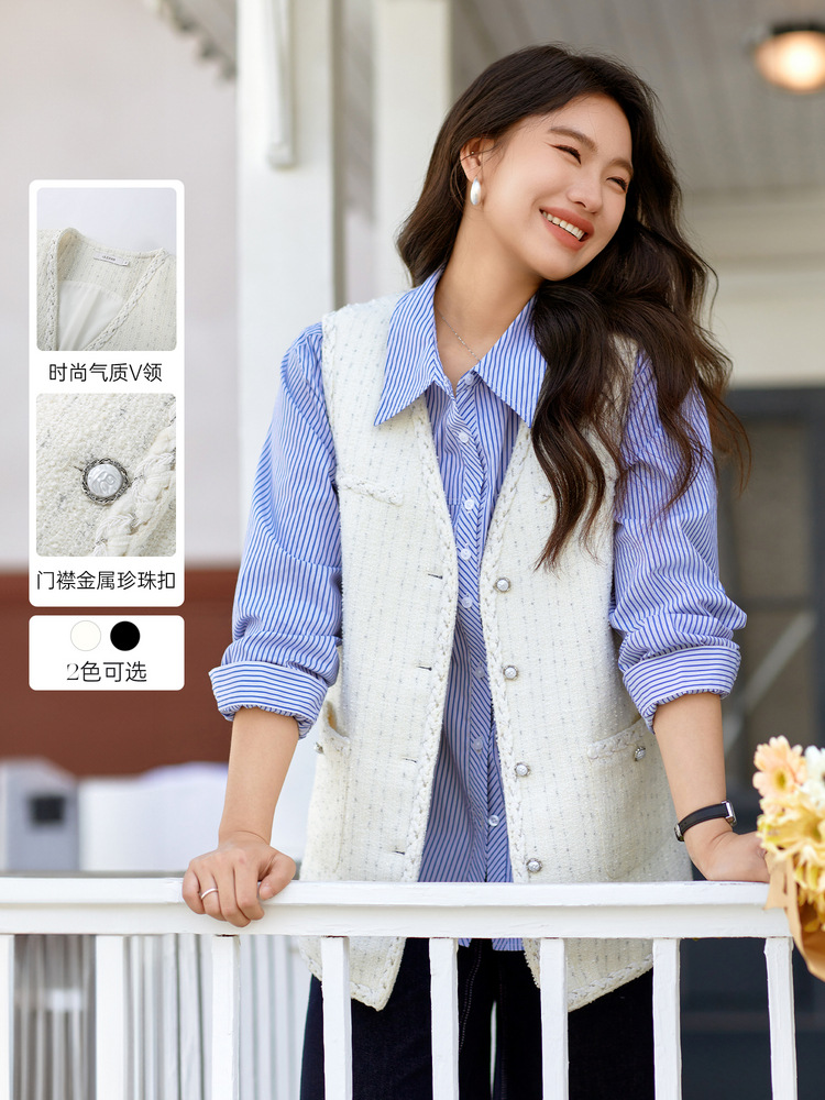 [Модный иностранный темперамент V-образный дикий тонкий жилет] Funny Show большой размер женский толстый mm2025 весенний новый