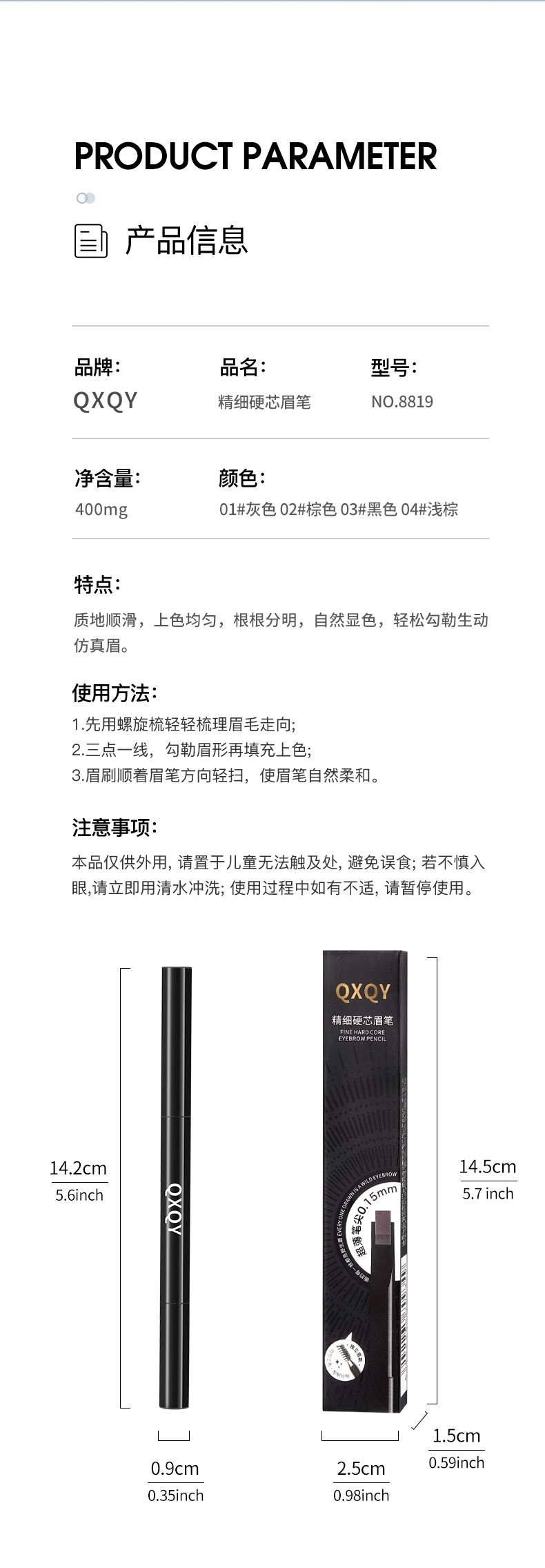 QXQY Тонкий карандаш для бровей с твердым стержнем