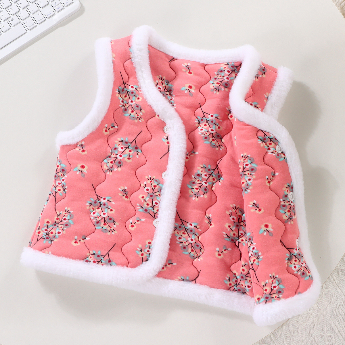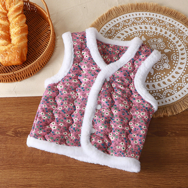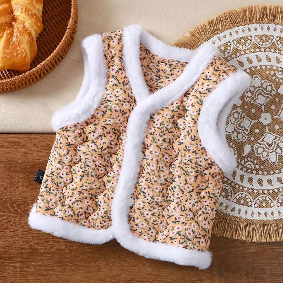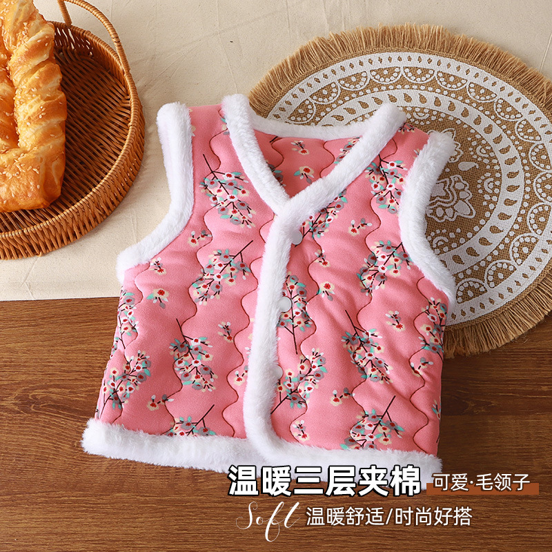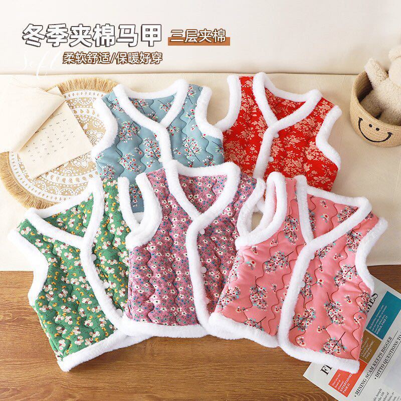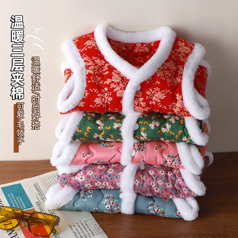 Новый детский жилет для девочек, модный трехслойный утолщенный теплый жилет в северо-восточном стиле, стильный жилет.