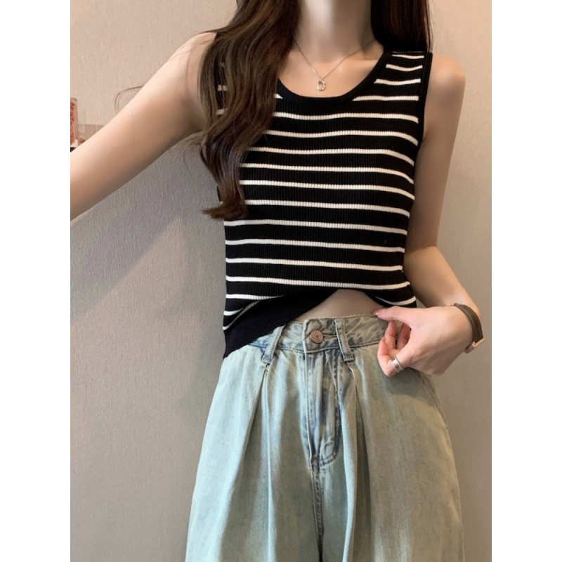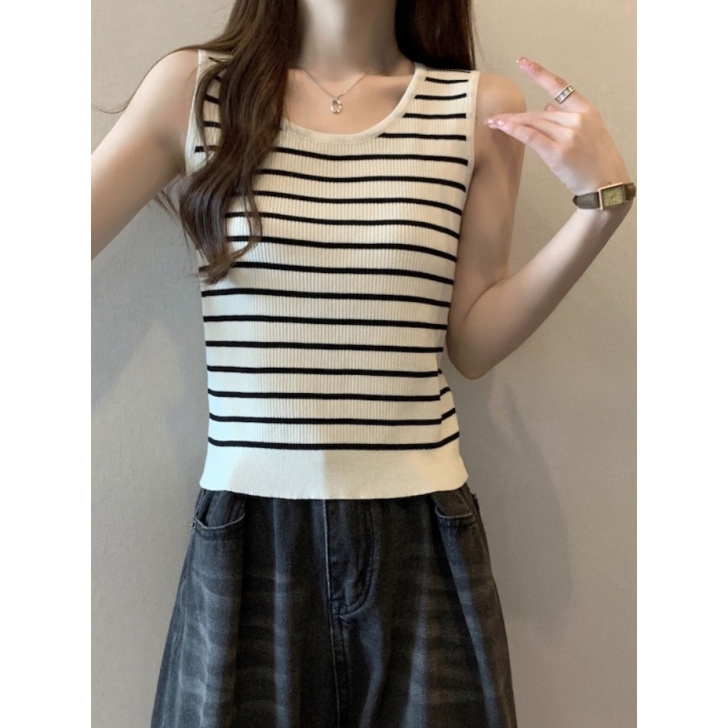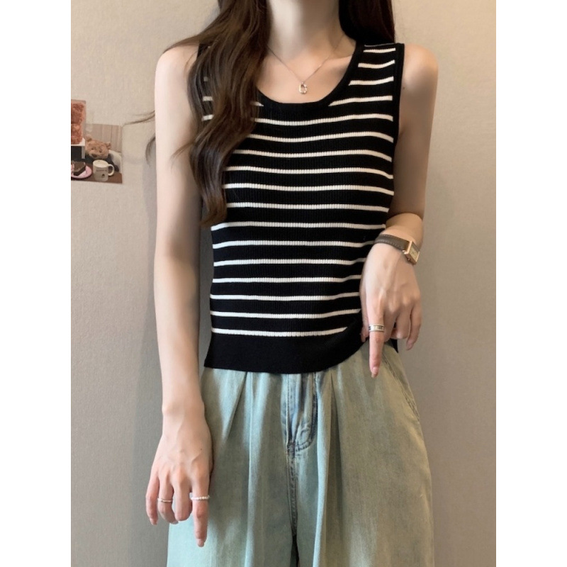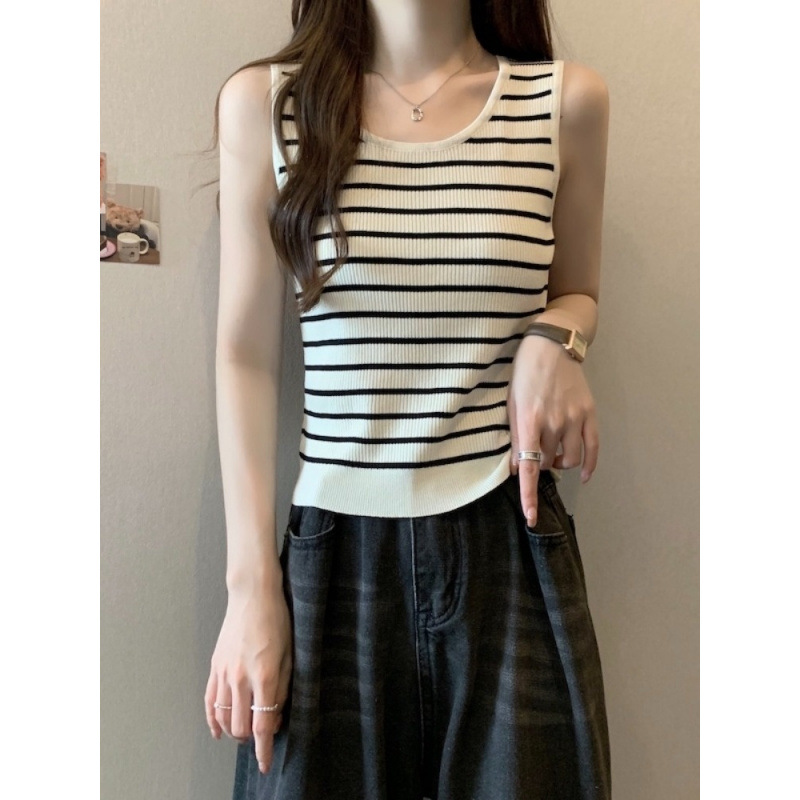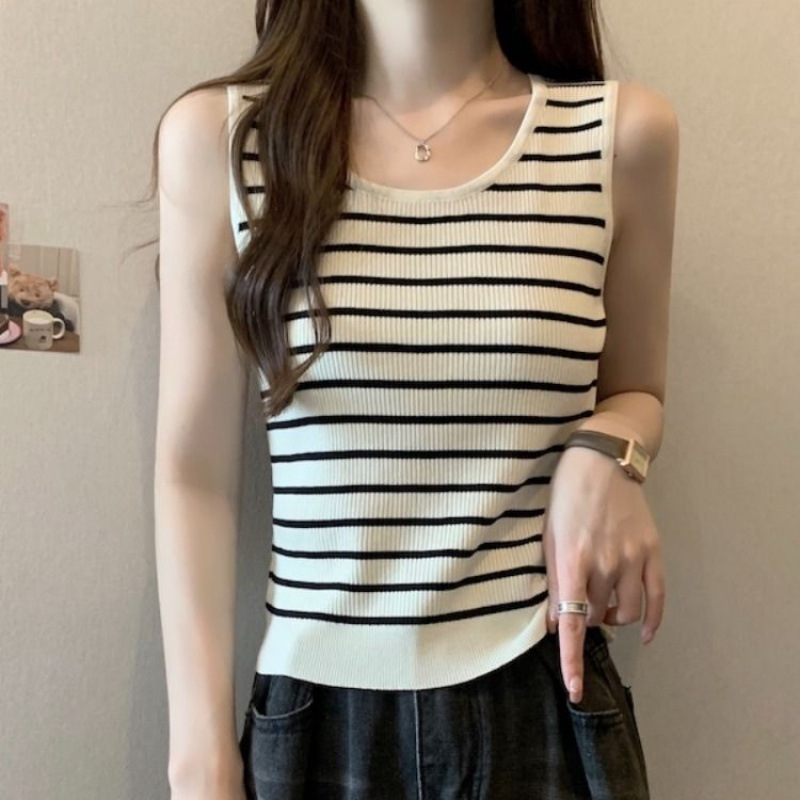 Полосатый вязаный топ для женщин, новинка весны 2025 года, топ больших размеров для прикрытия живота и похудения, лето.