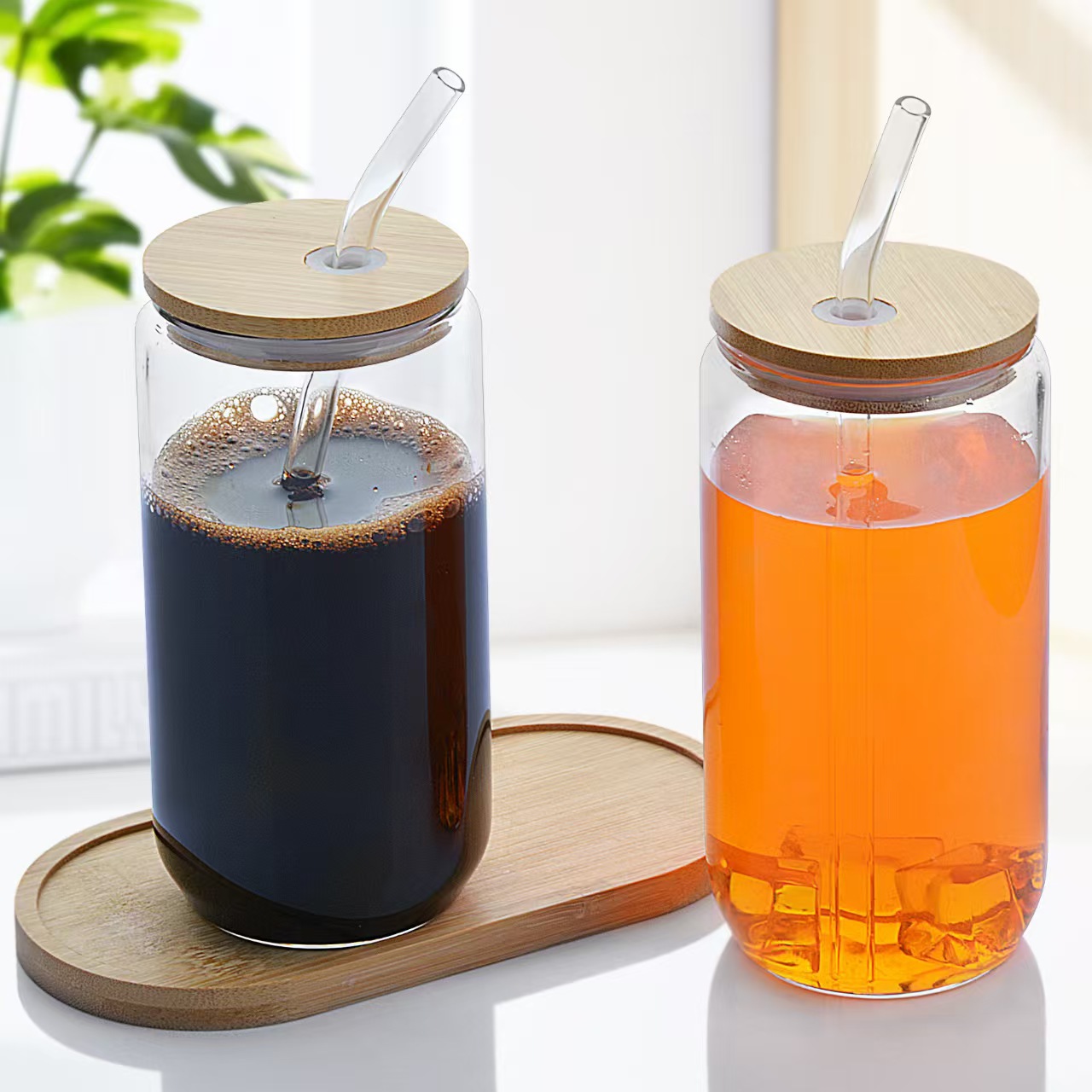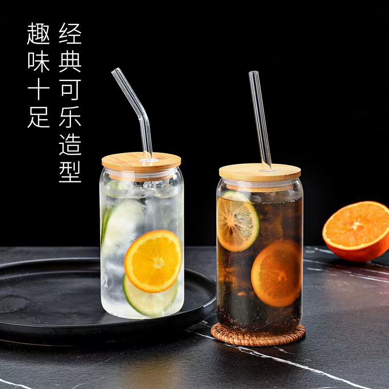 Горячая продажа Amazon с высоким содержанием боросиликатной чашки колы 16OZ термостойкий стеклянный стакан бамбуковая крышка стеклянная соломка для холодного напитка стакан сока