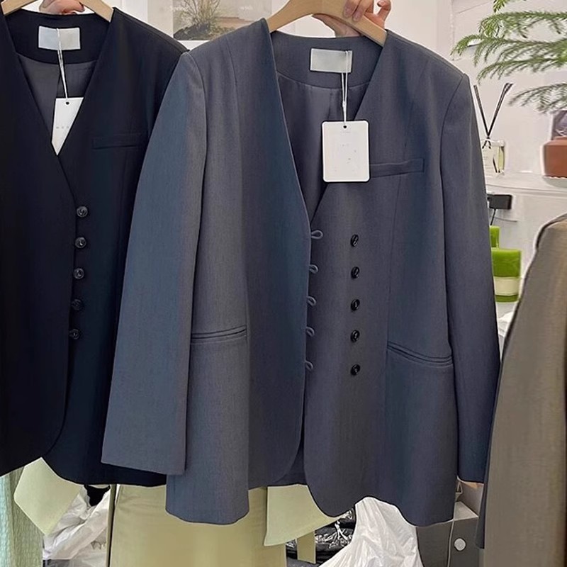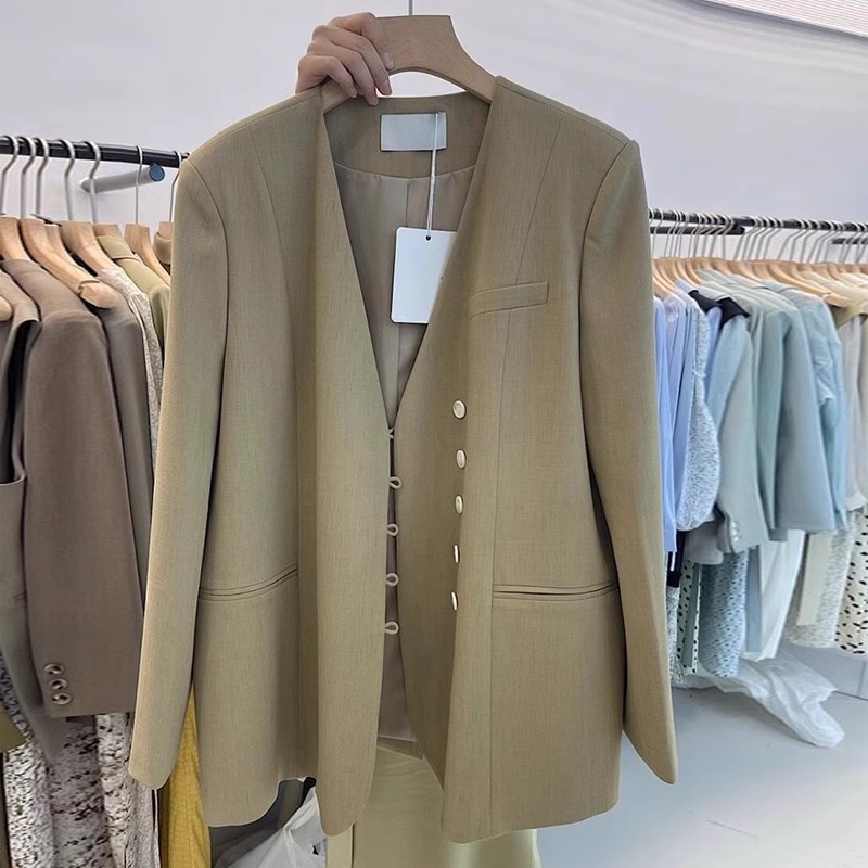 Женский укороченный блейзер 2025: новая осенняя коллекция, дизайн для миниатюрных женщин, нишевый V-образный вырез, повседневный пиджак