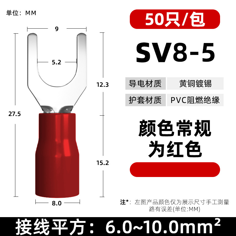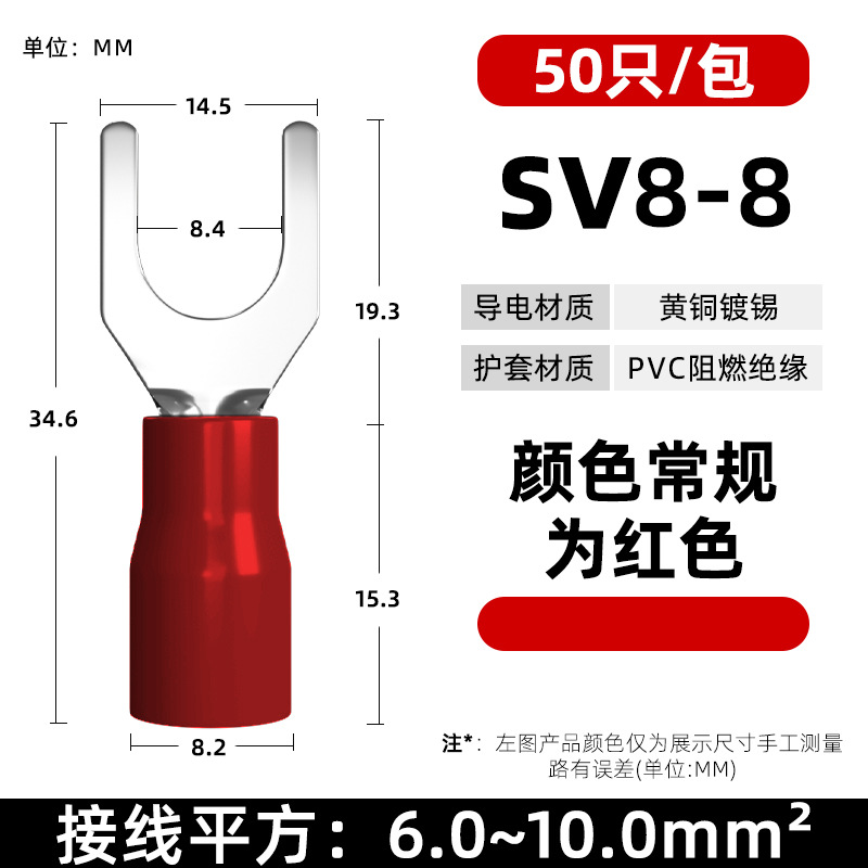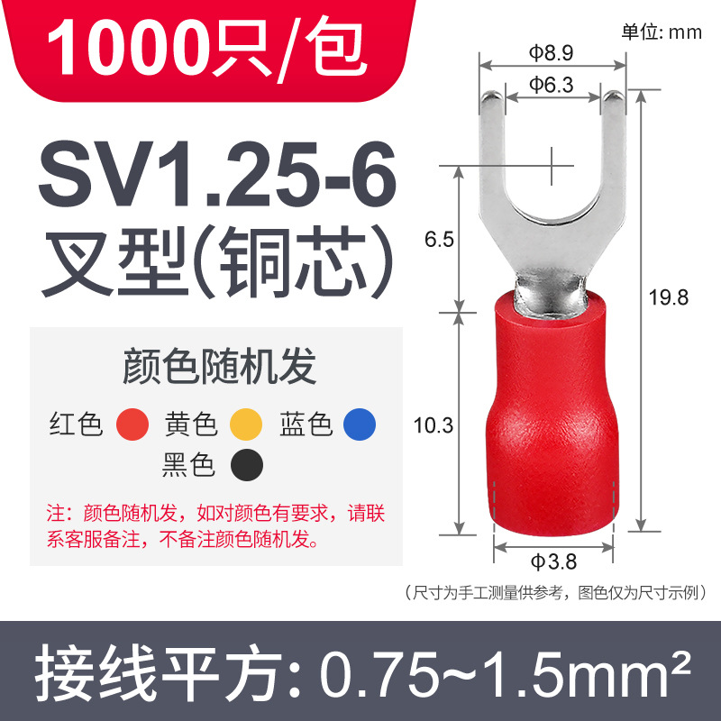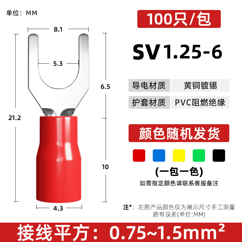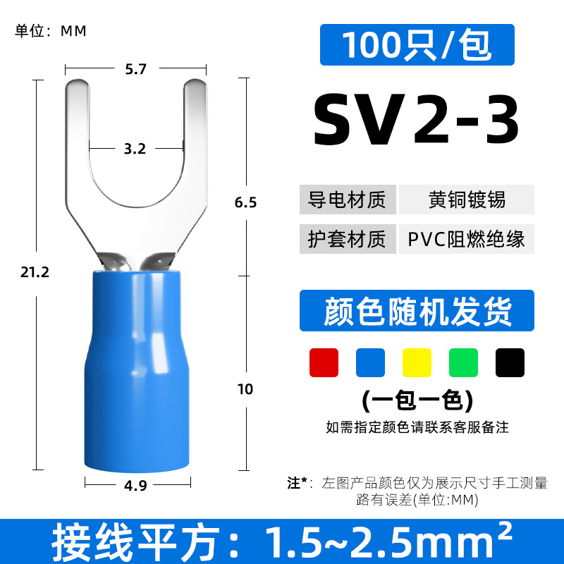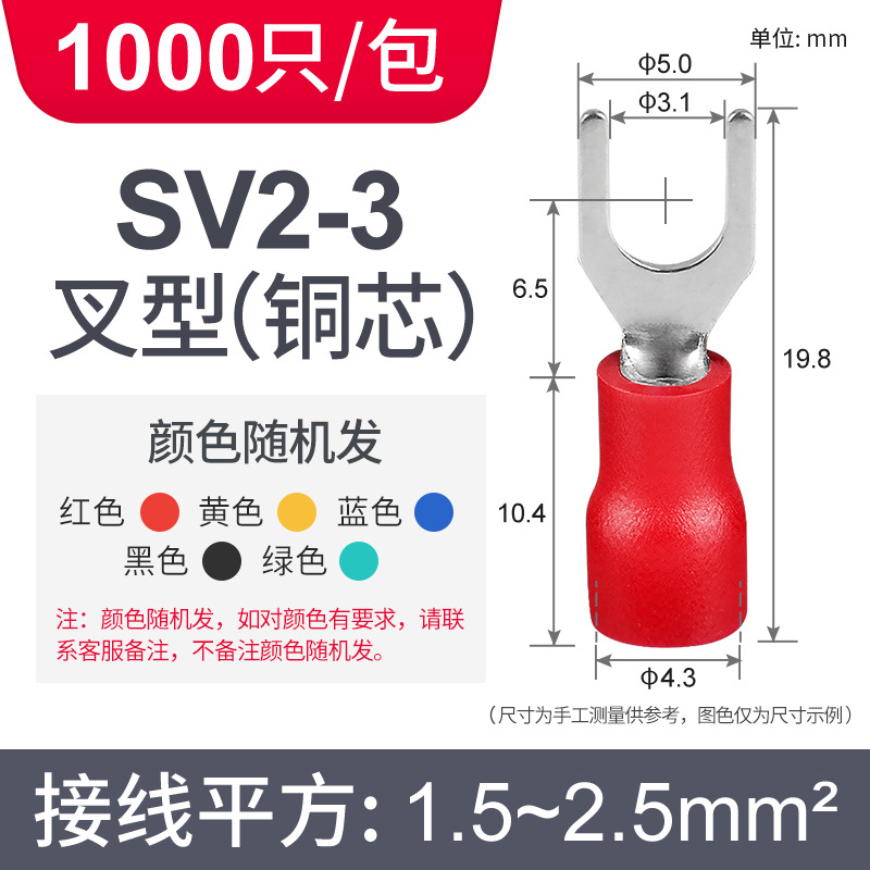 Латунный клеммный клеммный SV1.25-3 вилочный клеммный клеммный клеммный клеммный клеммный изолированный клеммный нос