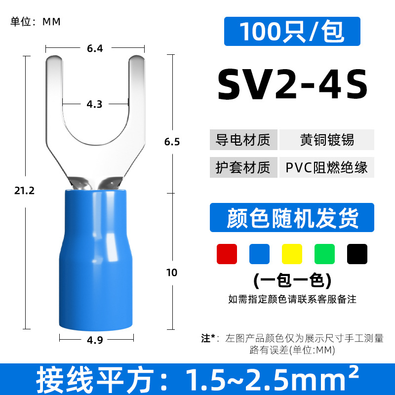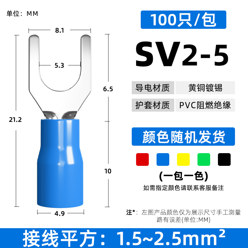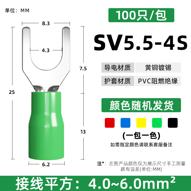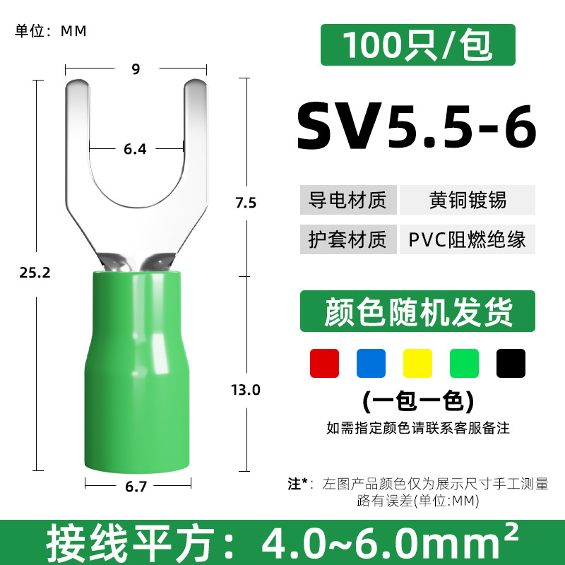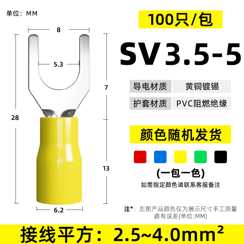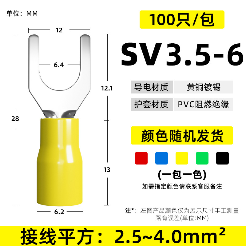 Латунный клеммный клеммный SV1.25-3 вилочный клеммный клеммный клеммный клеммный клеммный изолированный клеммный нос