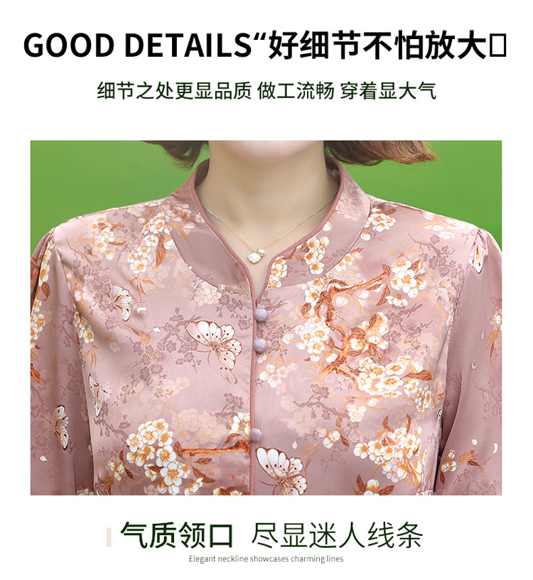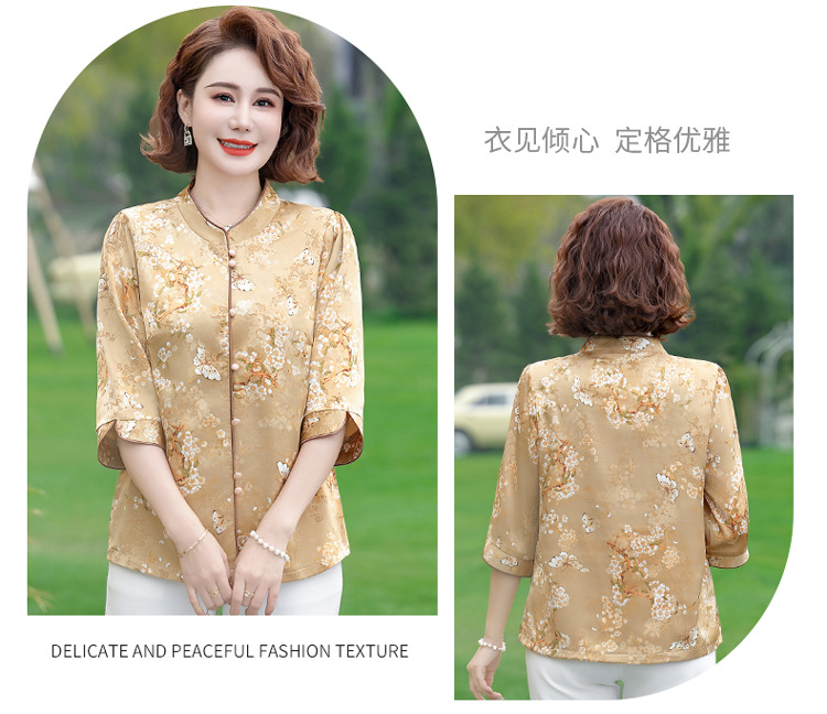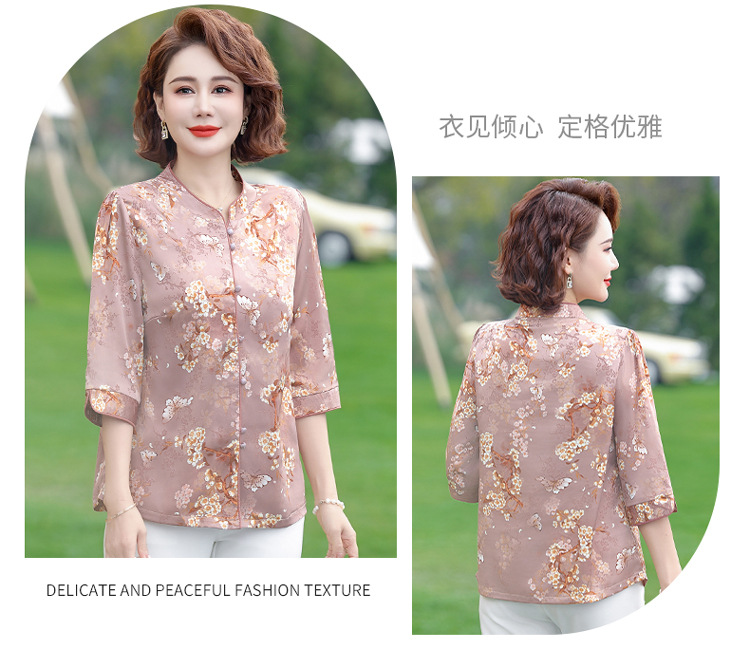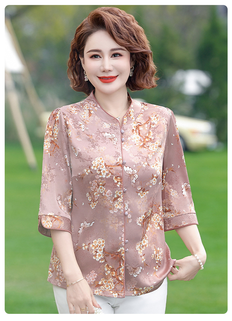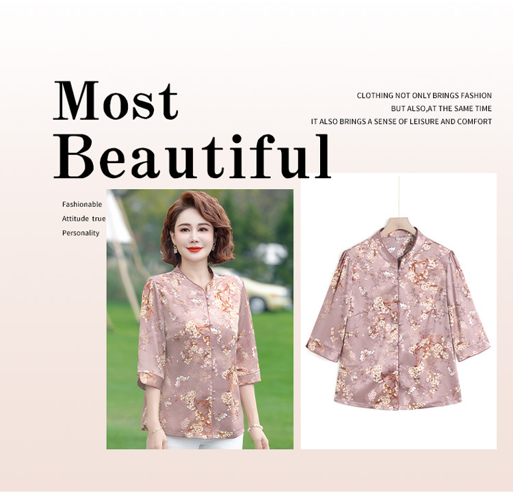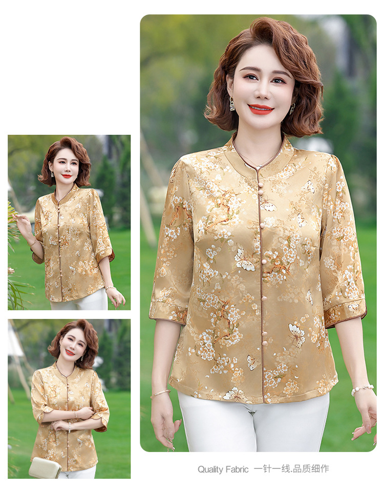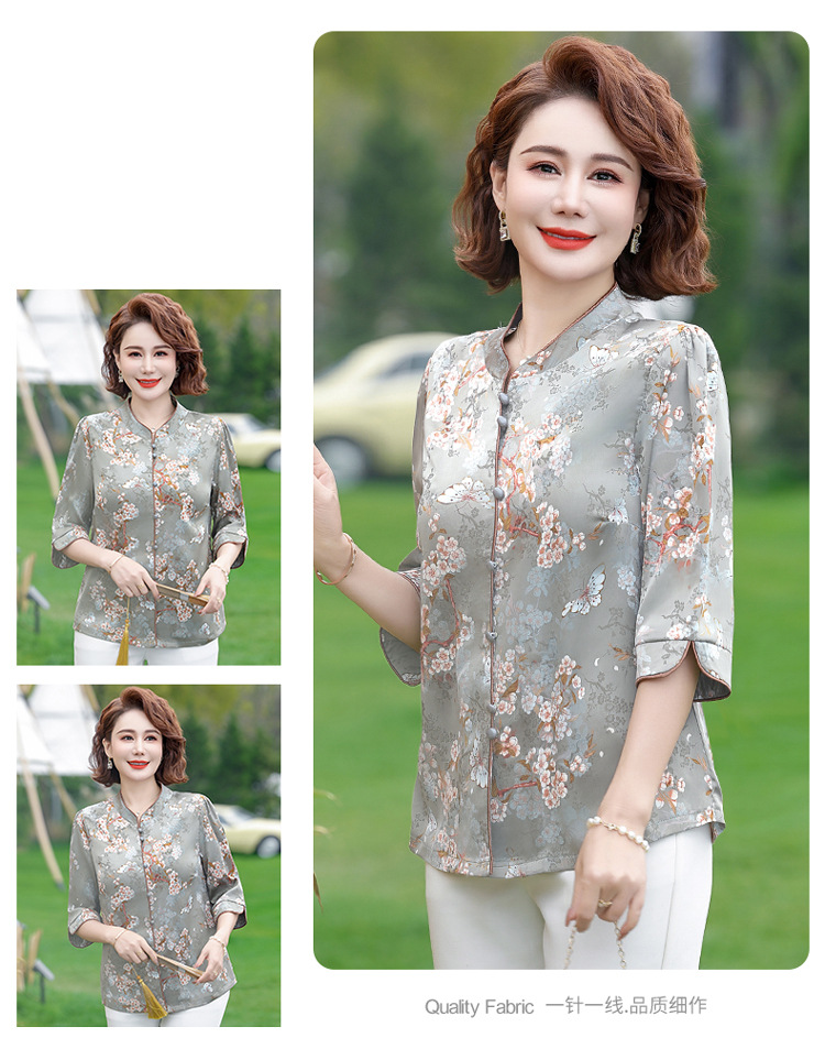 Элегантная женская футболка Qiaoyaying из искусственного шелка для женщин 50-60 лет, новая коллекция Весна/Лето 2025, с рукавом три четверти, с принтом, для мам