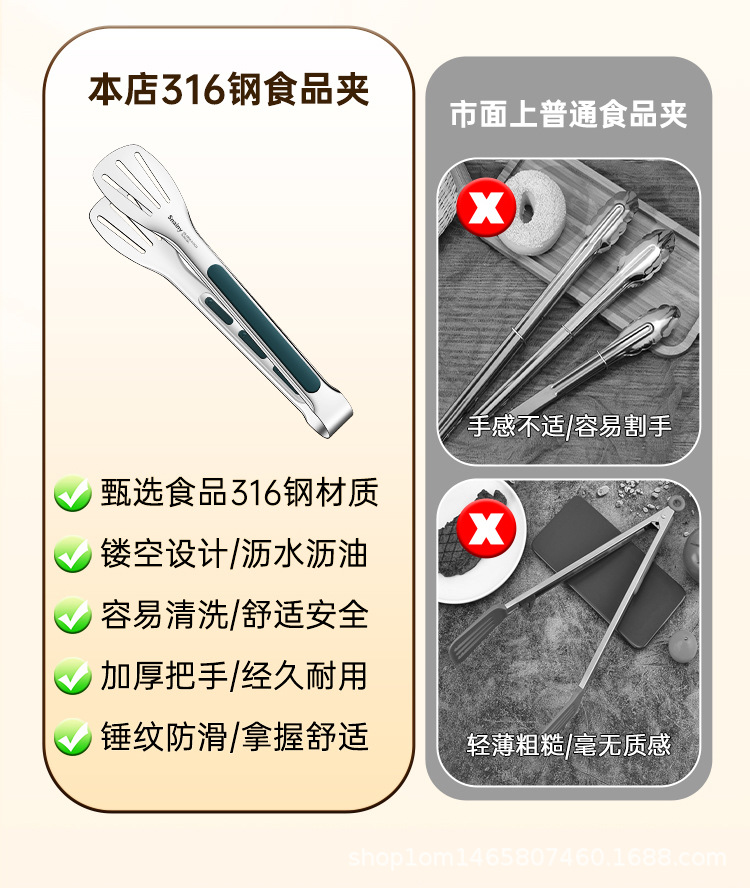 Зажим для еды из нержавеющей стали 316L, защищающий от ожогов и скольжения.