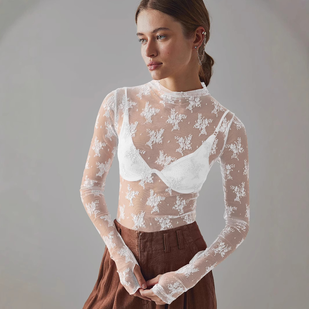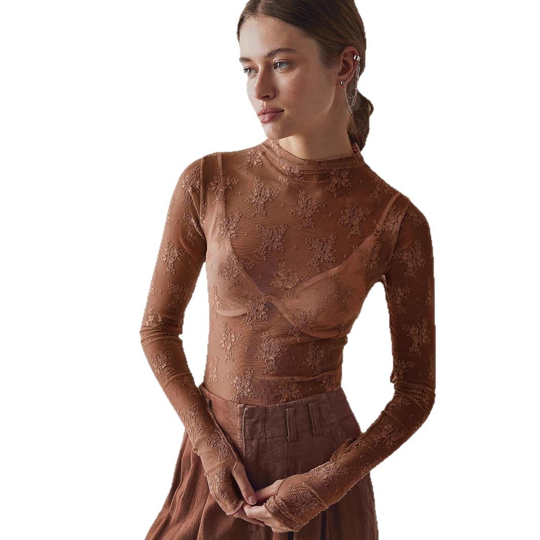 2025 Взрывная Амазонка Трансграничная перспективная кружевная топ сетка разноцветная нижняя рубашка сексуальная горячая девушка трендовая футболка