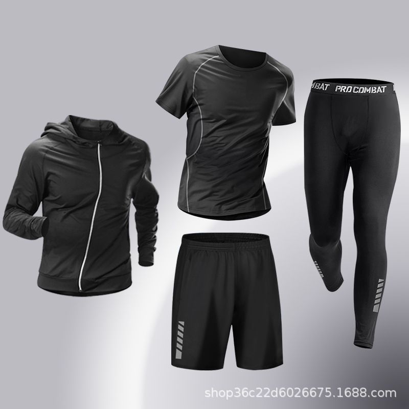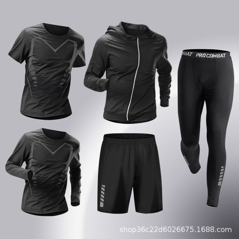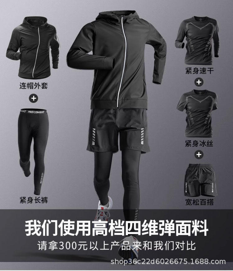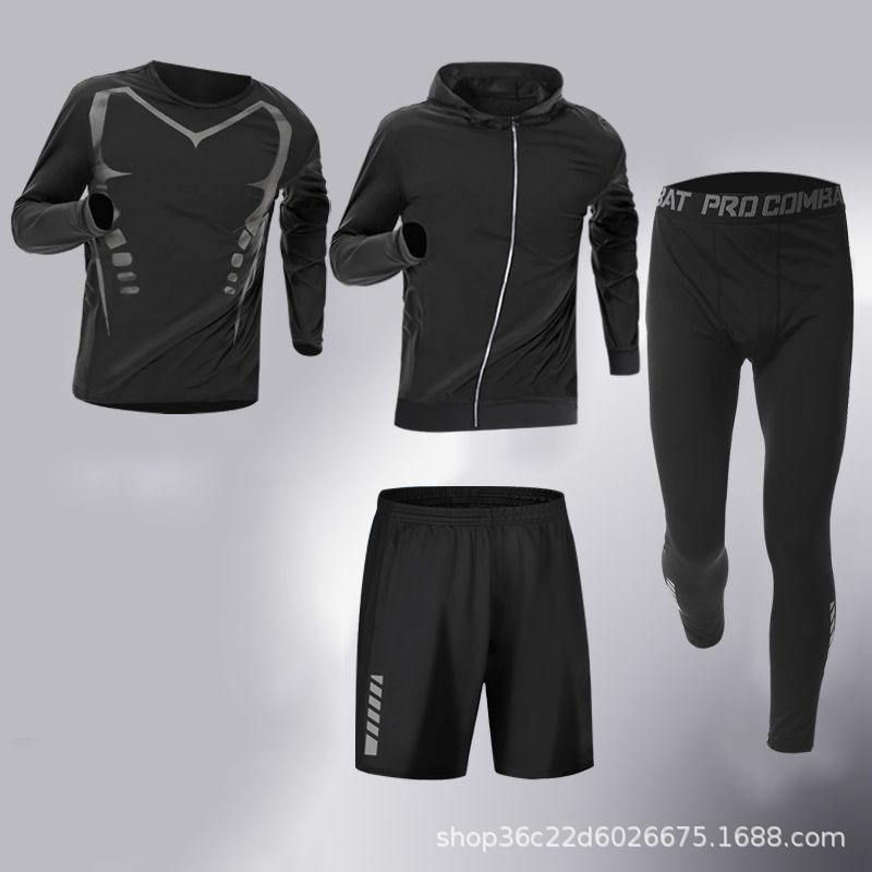 Спортивный костюм Мужской спортивный костюм быстрорежущие колготки с высокой эластической тренировочной баскетбольной одеждой для утреннего бега весной и осенью