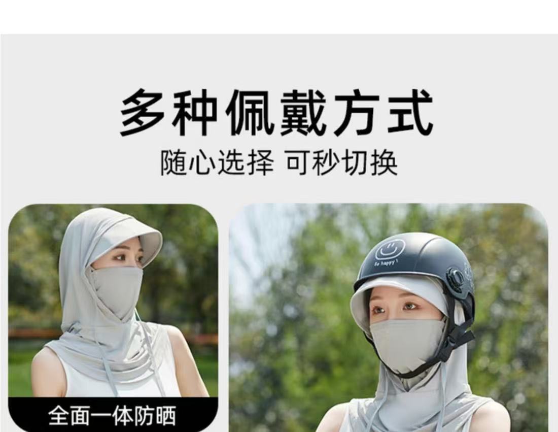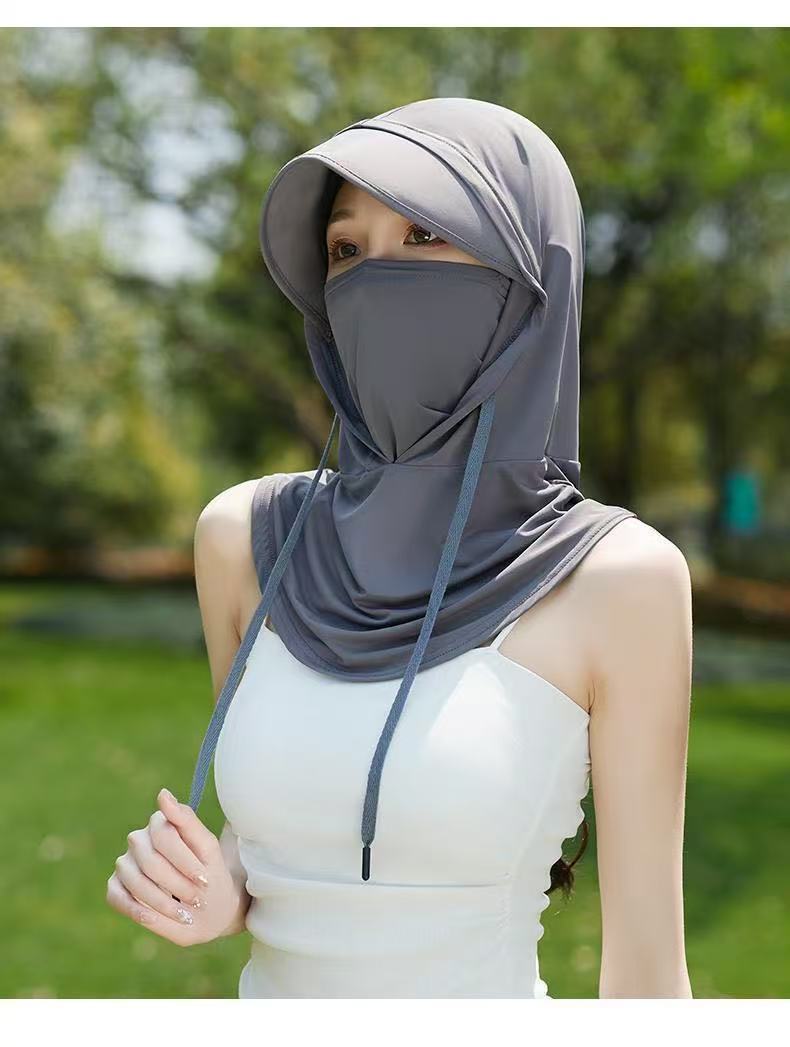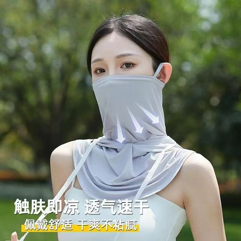 Новая маска для защиты от солнца 2025 года для женщин, дышащая маска из ледяного шелка с защитой от УФ-излучения для шеи, полное покрытие лица, спортивный стиль