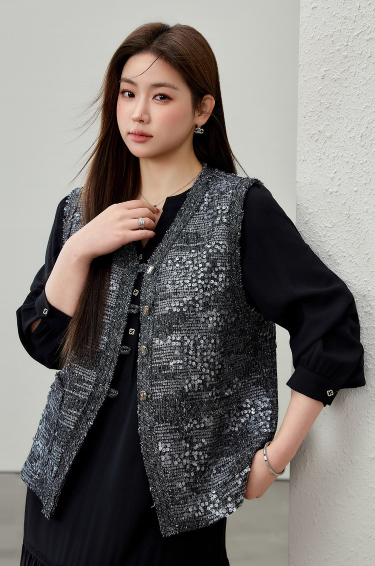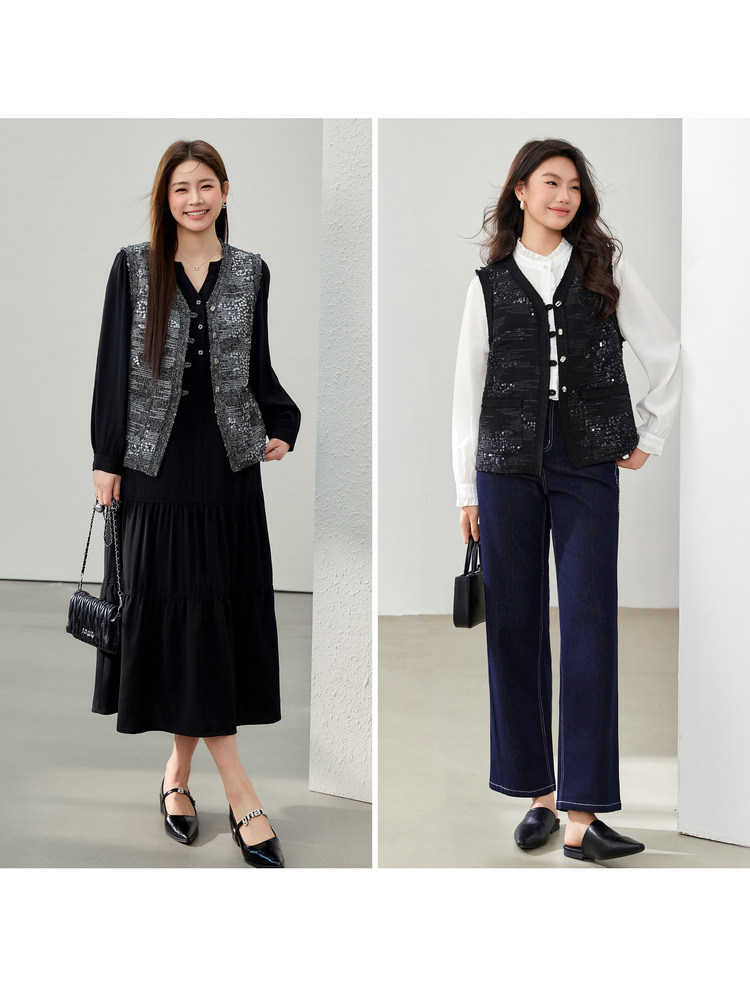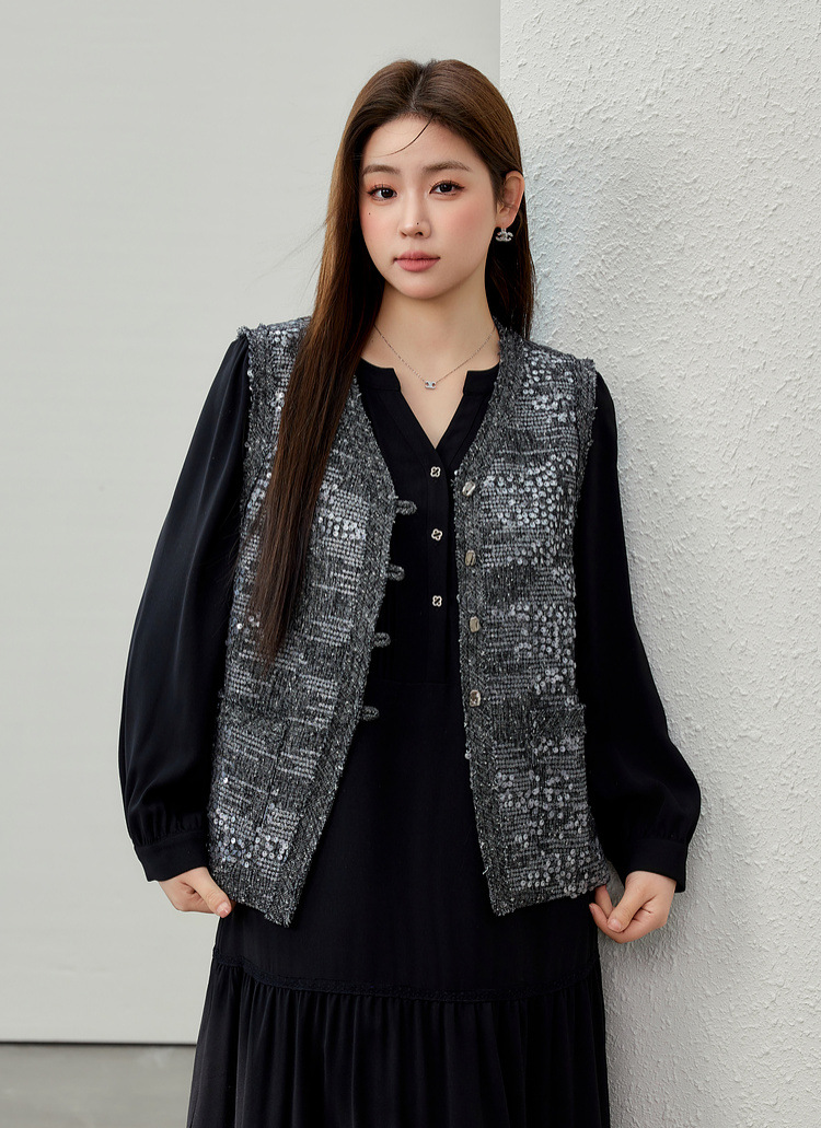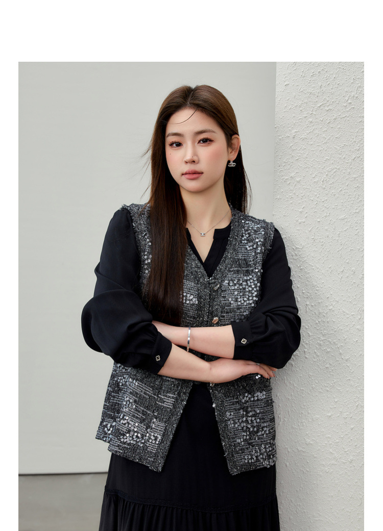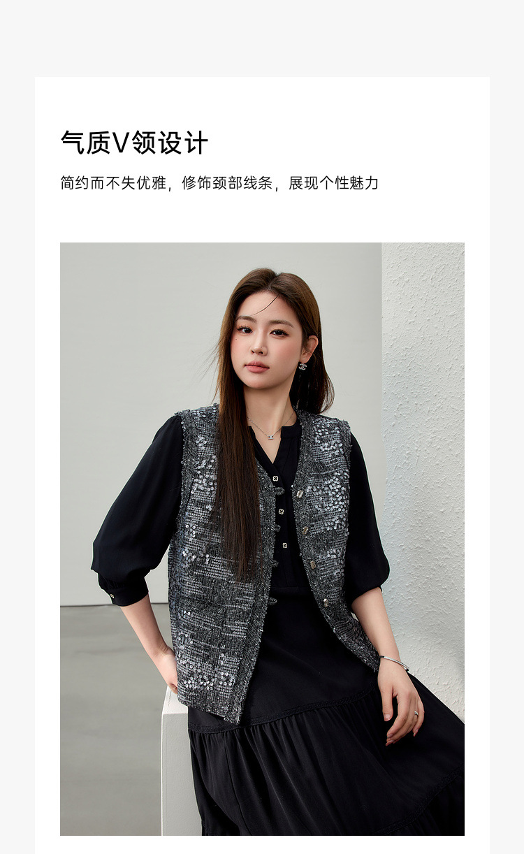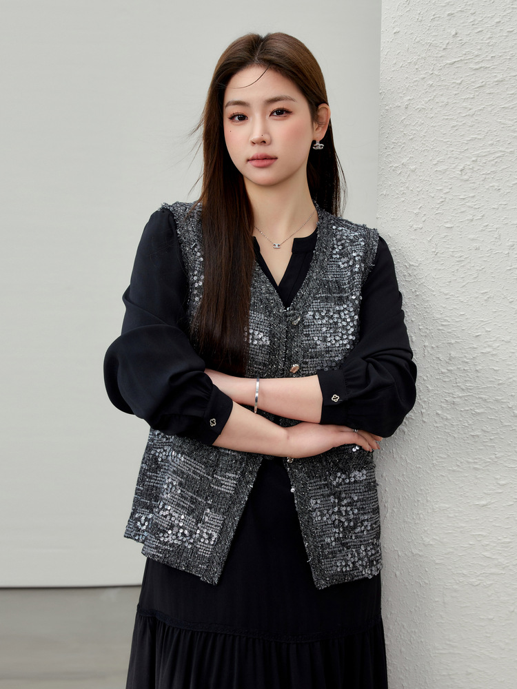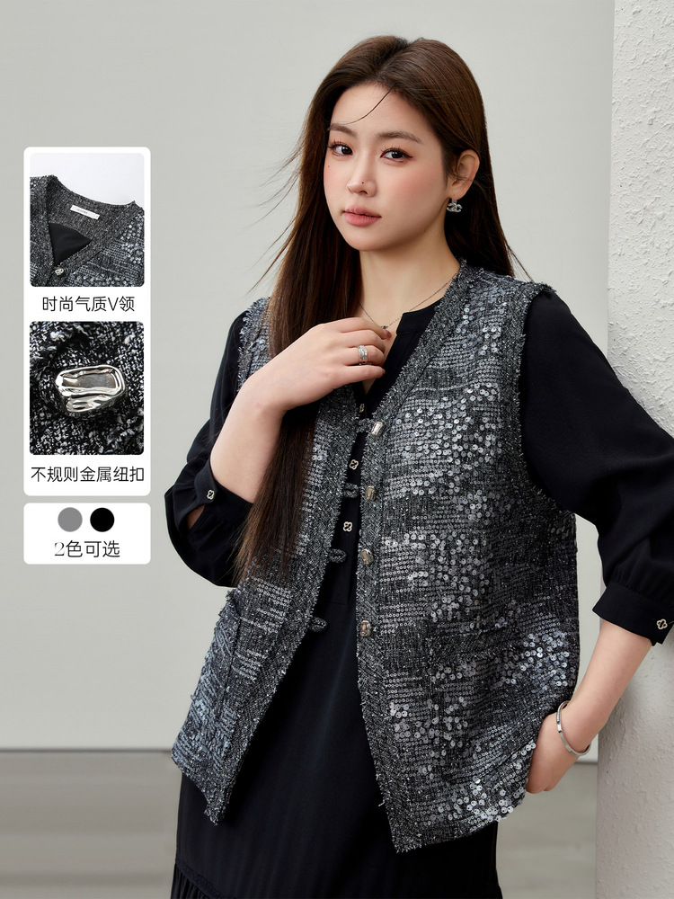 [Французские ретро легкие роскошные блестки модные дикие жилет] Funny Show большой размер женский толстый mm2025 весенний новый