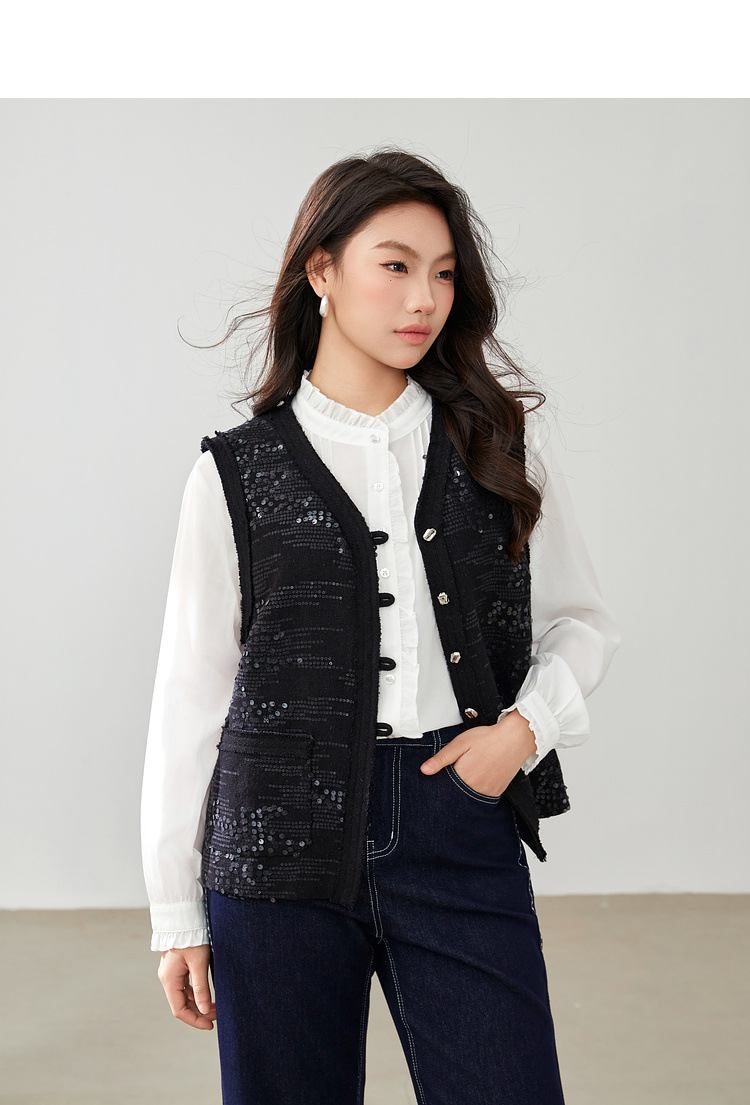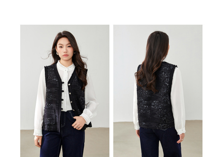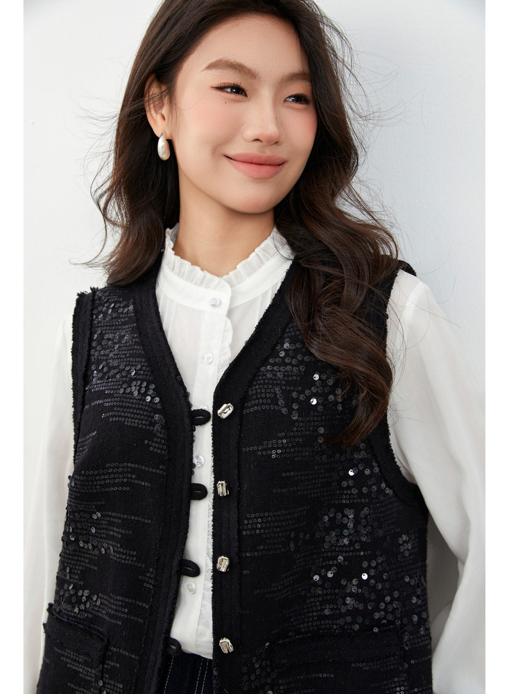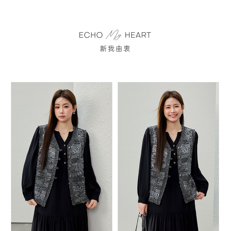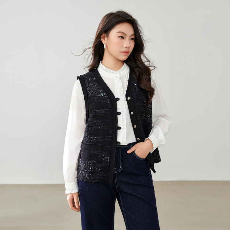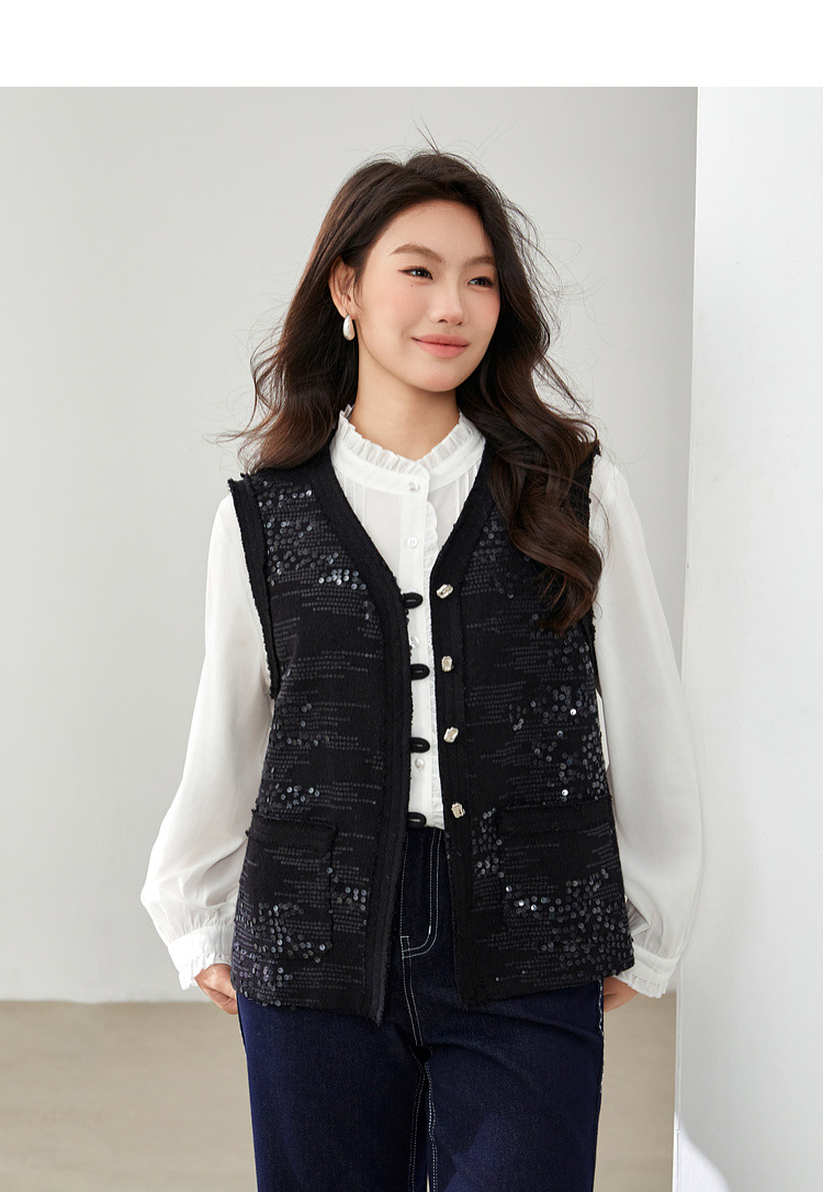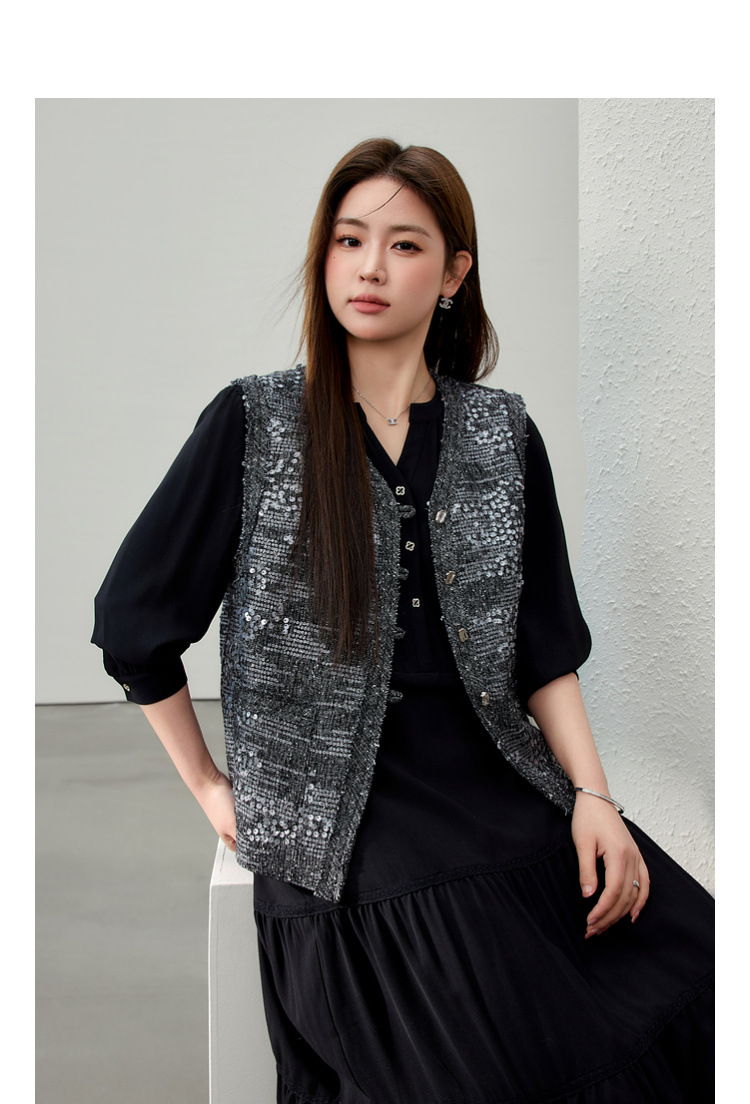 [Французские ретро легкие роскошные блестки модные дикие жилет] Funny Show большой размер женский толстый mm2025 весенний новый
