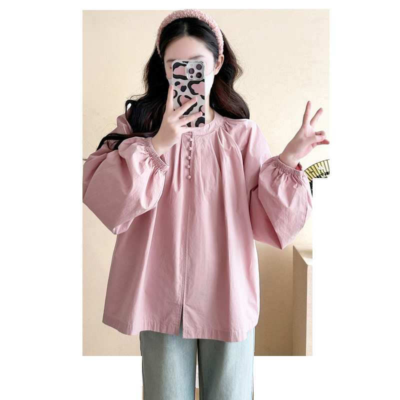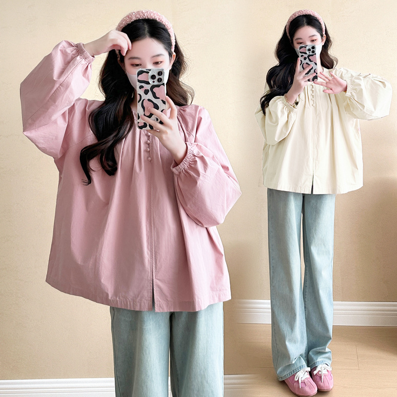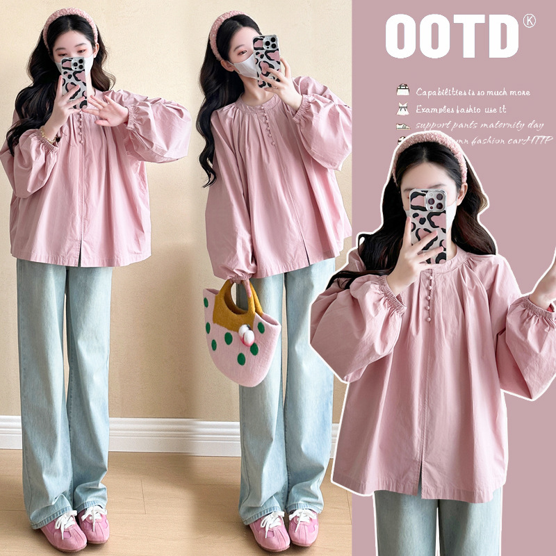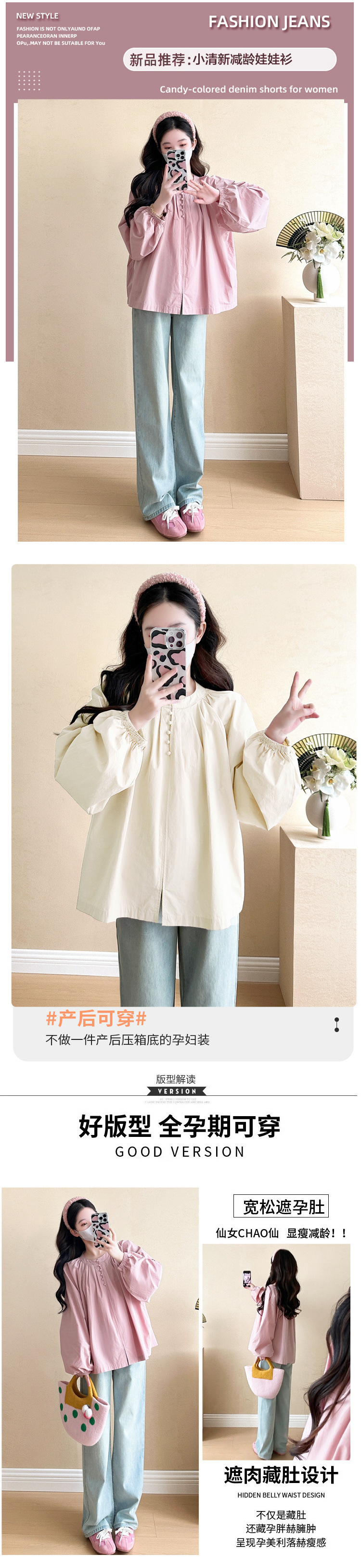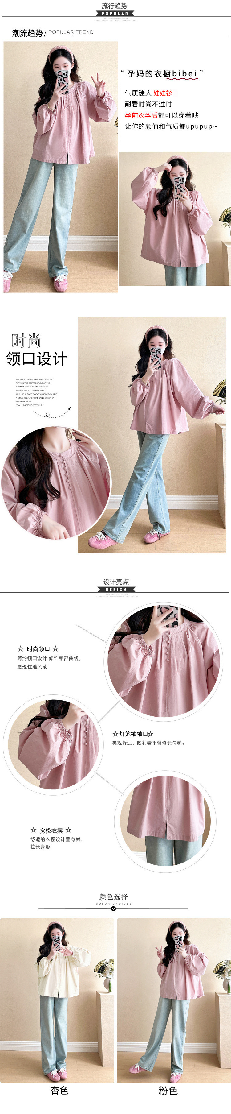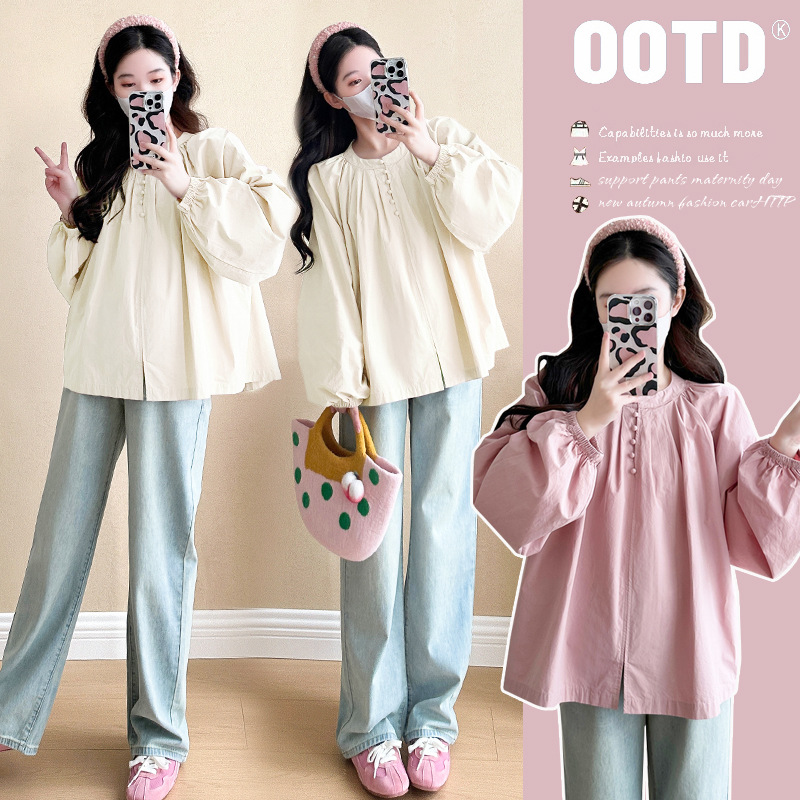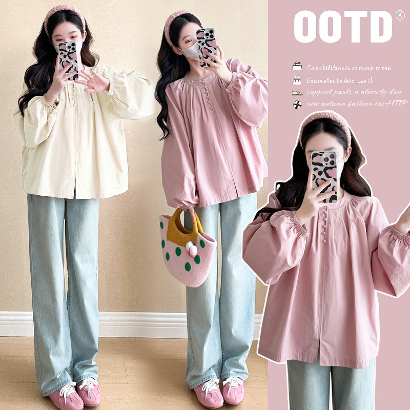 2024 Реальный снимок Новая беременная весна и осень сладкие рукава фонаря свободные рубашки