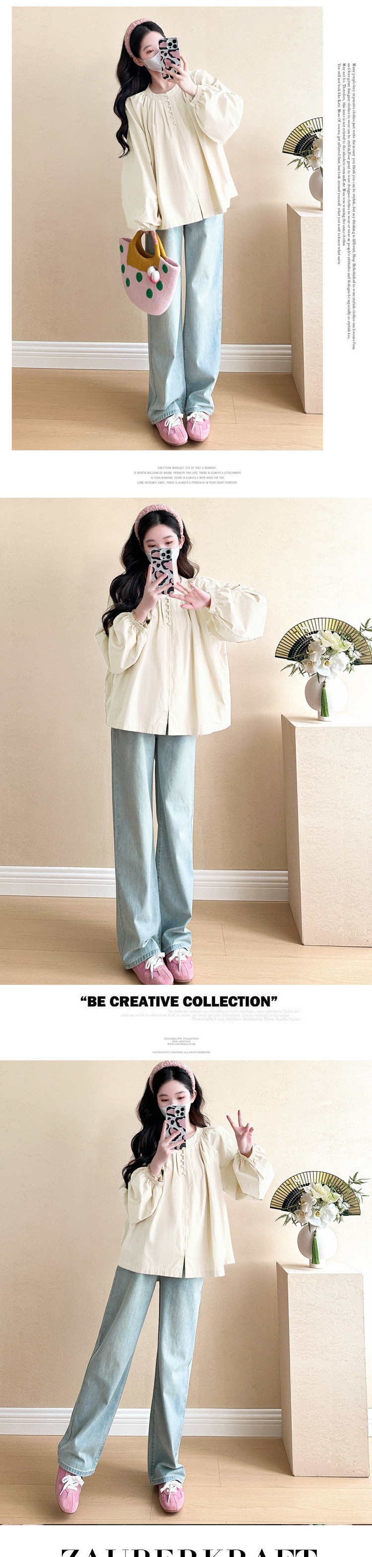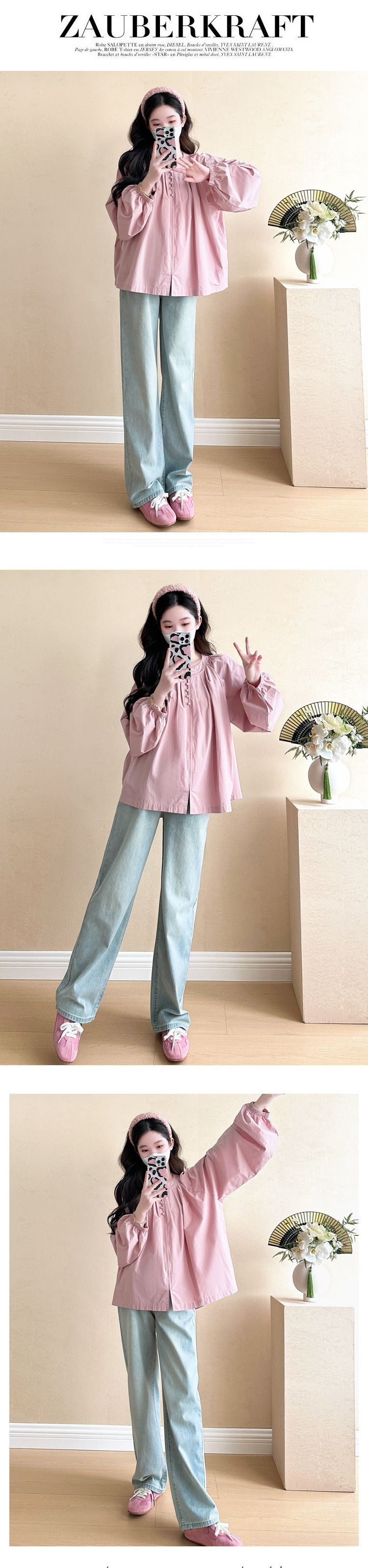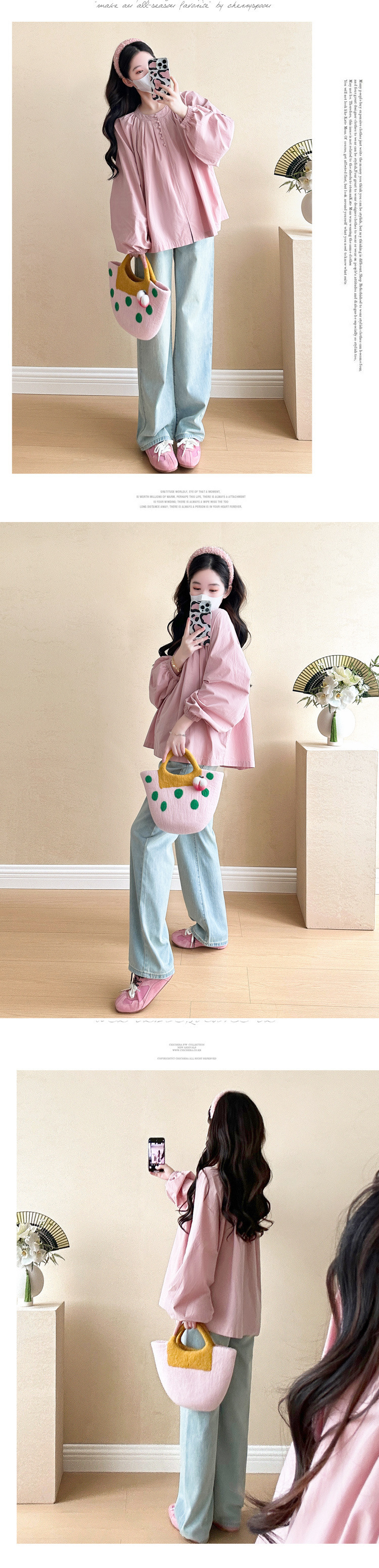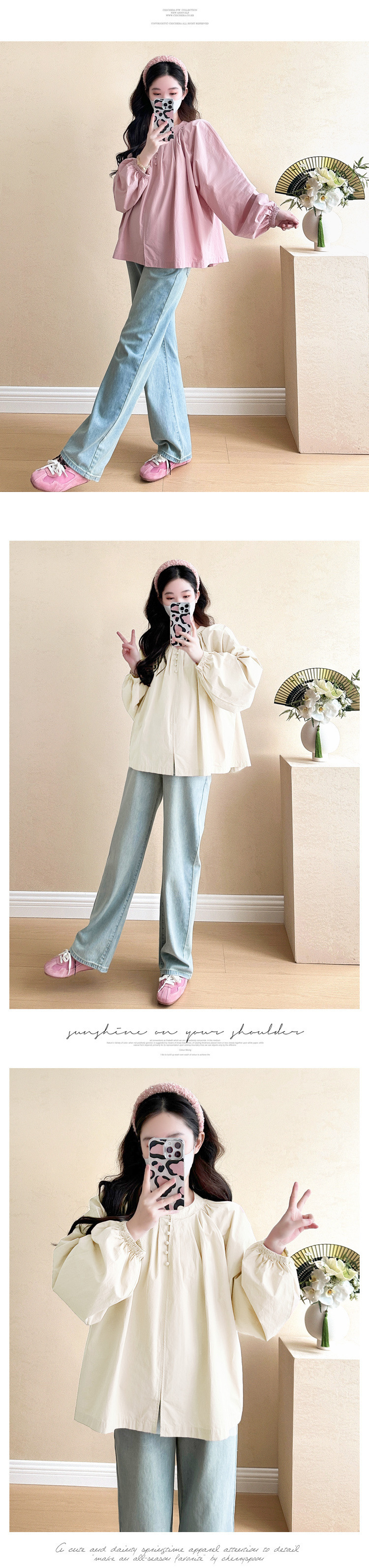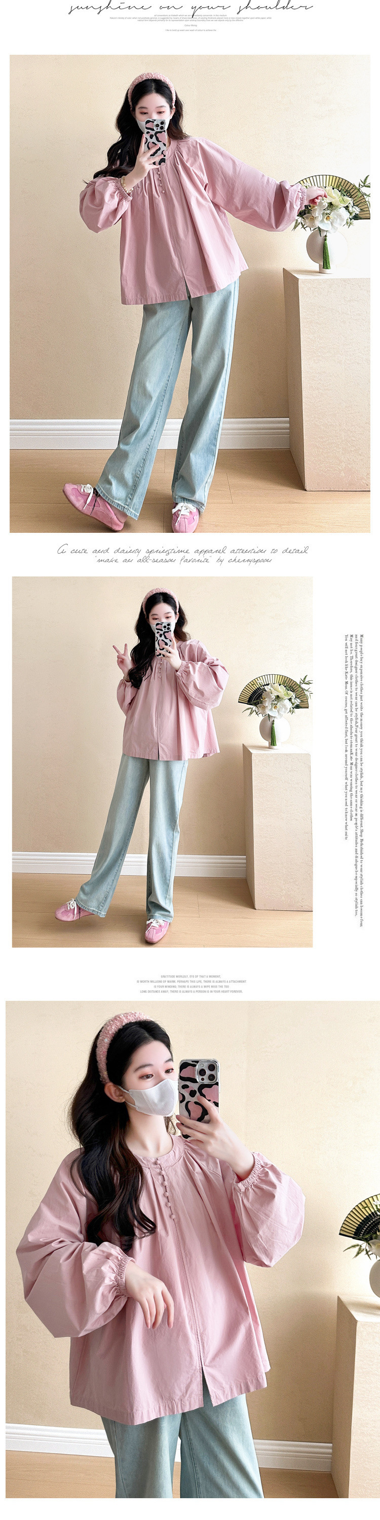 2024 Реальный снимок Новая беременная весна и осень сладкие рукава фонаря свободные рубашки