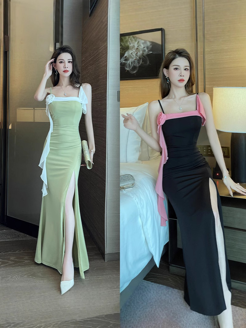 Qisheng сексуальный слинг вечернее платье ночной клуб Ke Ge Muy ноги техник рабочая одежда новое легкое роскошное темпераментное платье