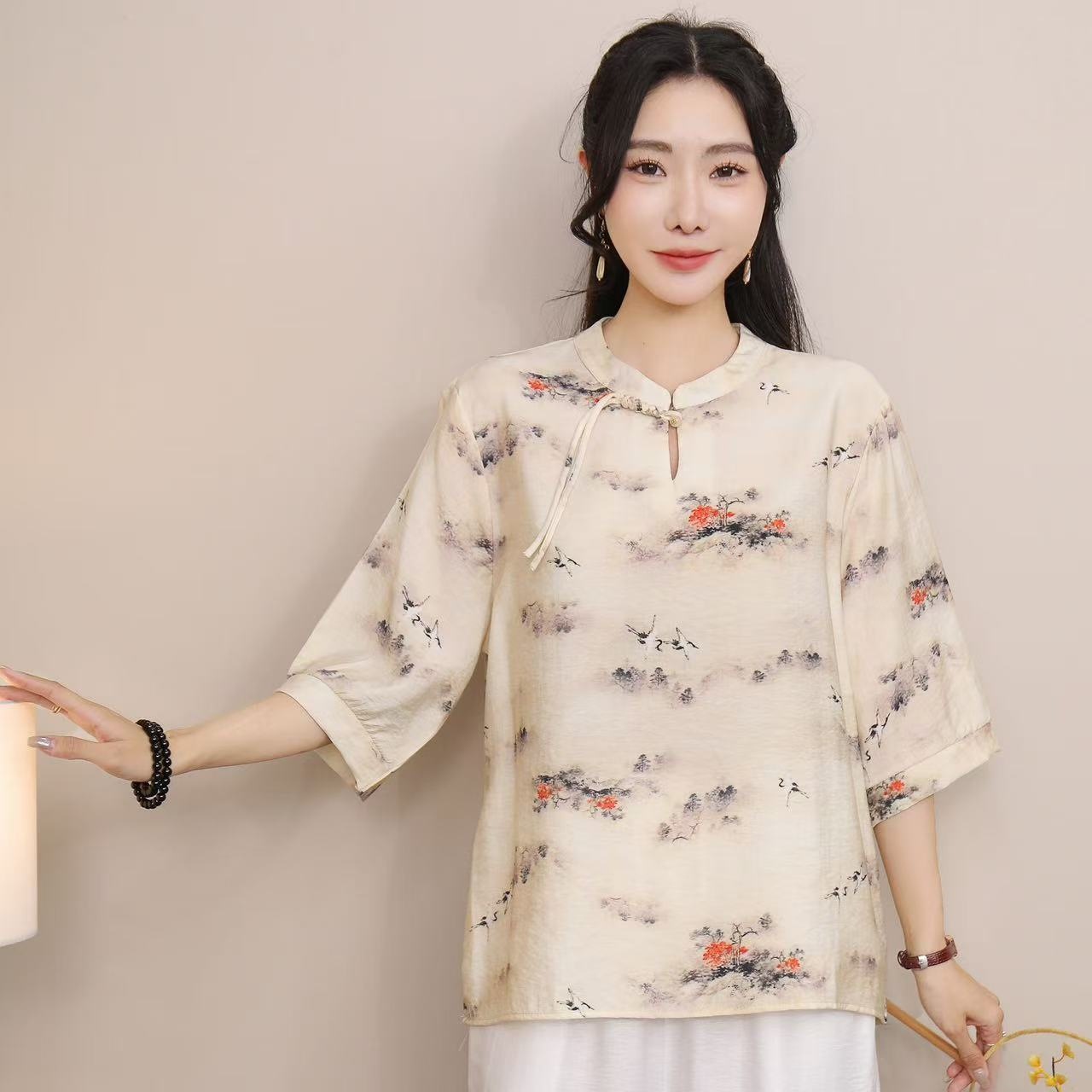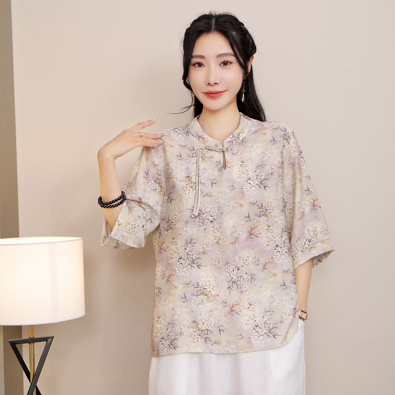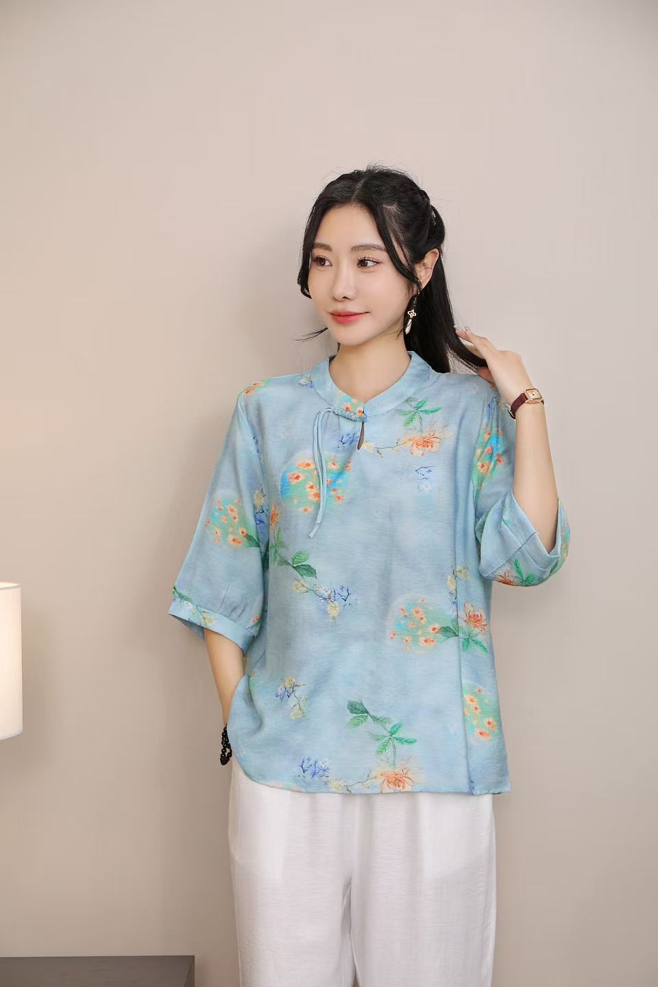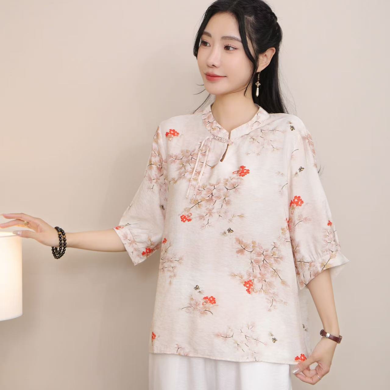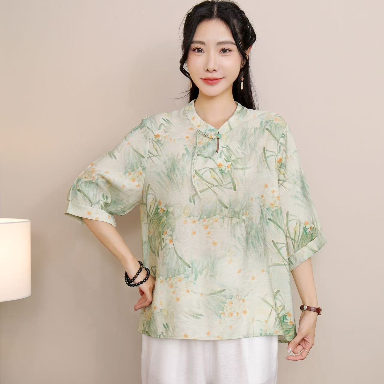 2025 Летняя женская одежда в китайском стиле улучшенная одежда Tang женский топ с короткими рукавами ретро литературный стиль этническая одежда рубашка