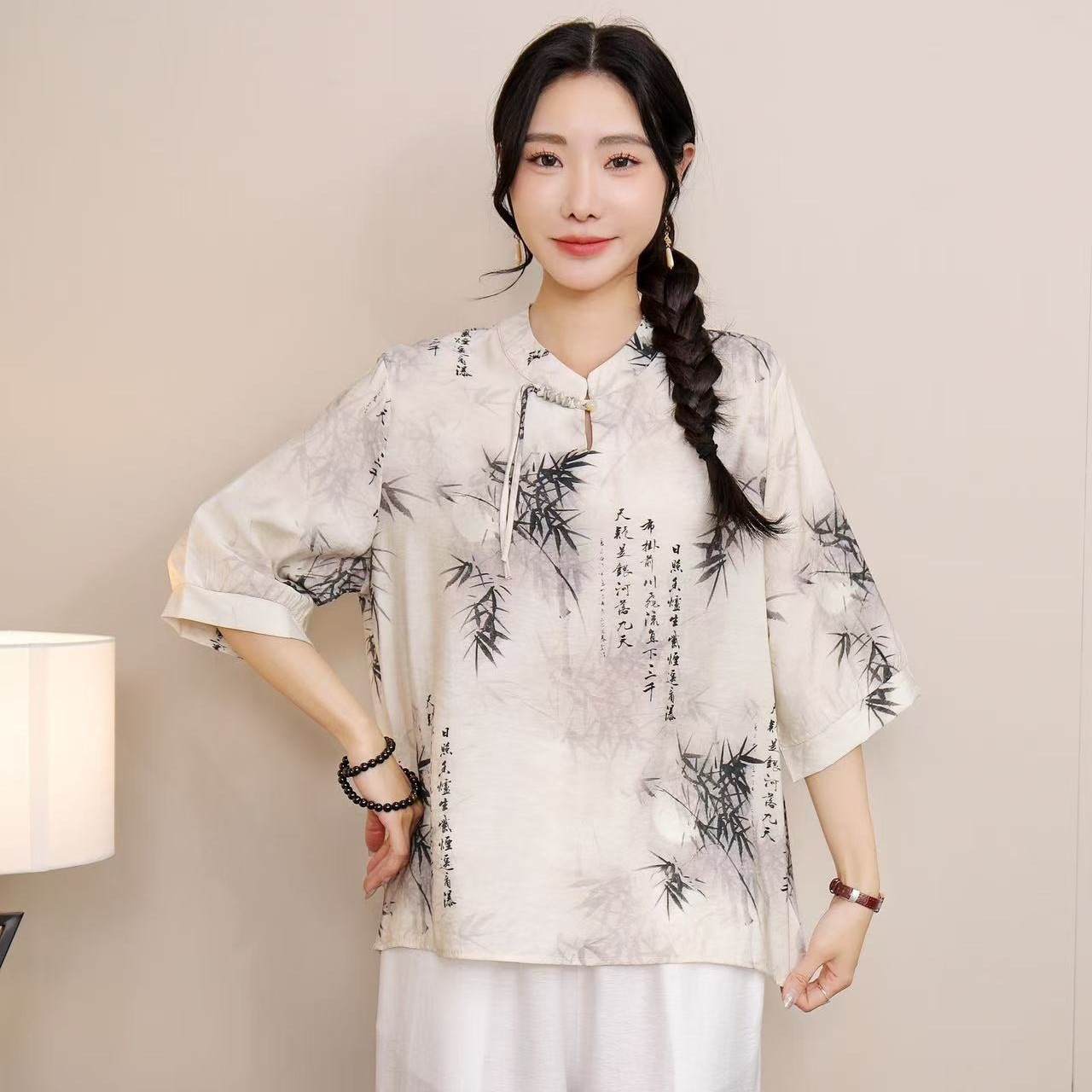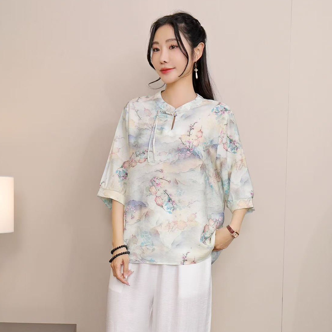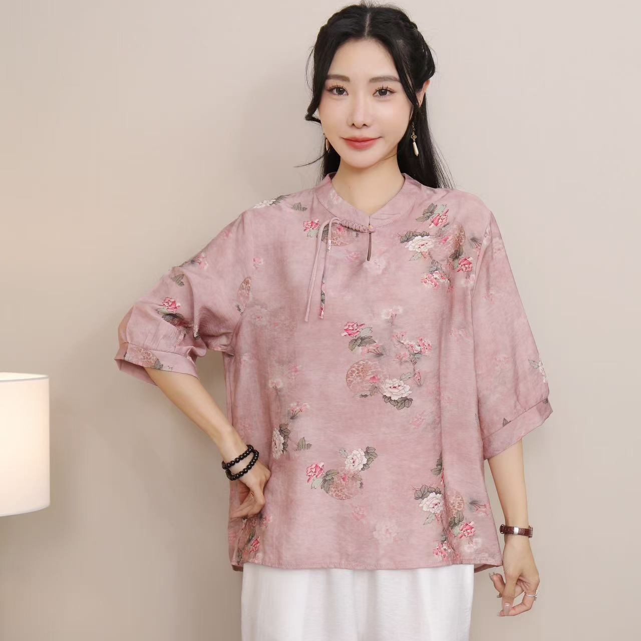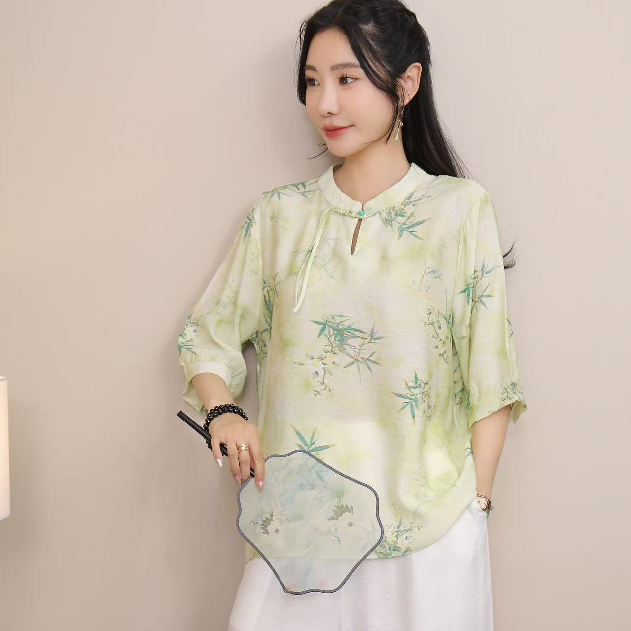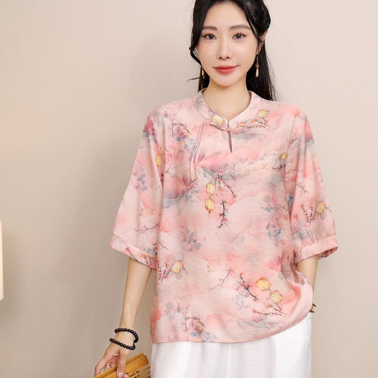 2025 Летняя женская одежда в китайском стиле улучшенная одежда Tang женский топ с короткими рукавами ретро литературный стиль этническая одежда рубашка