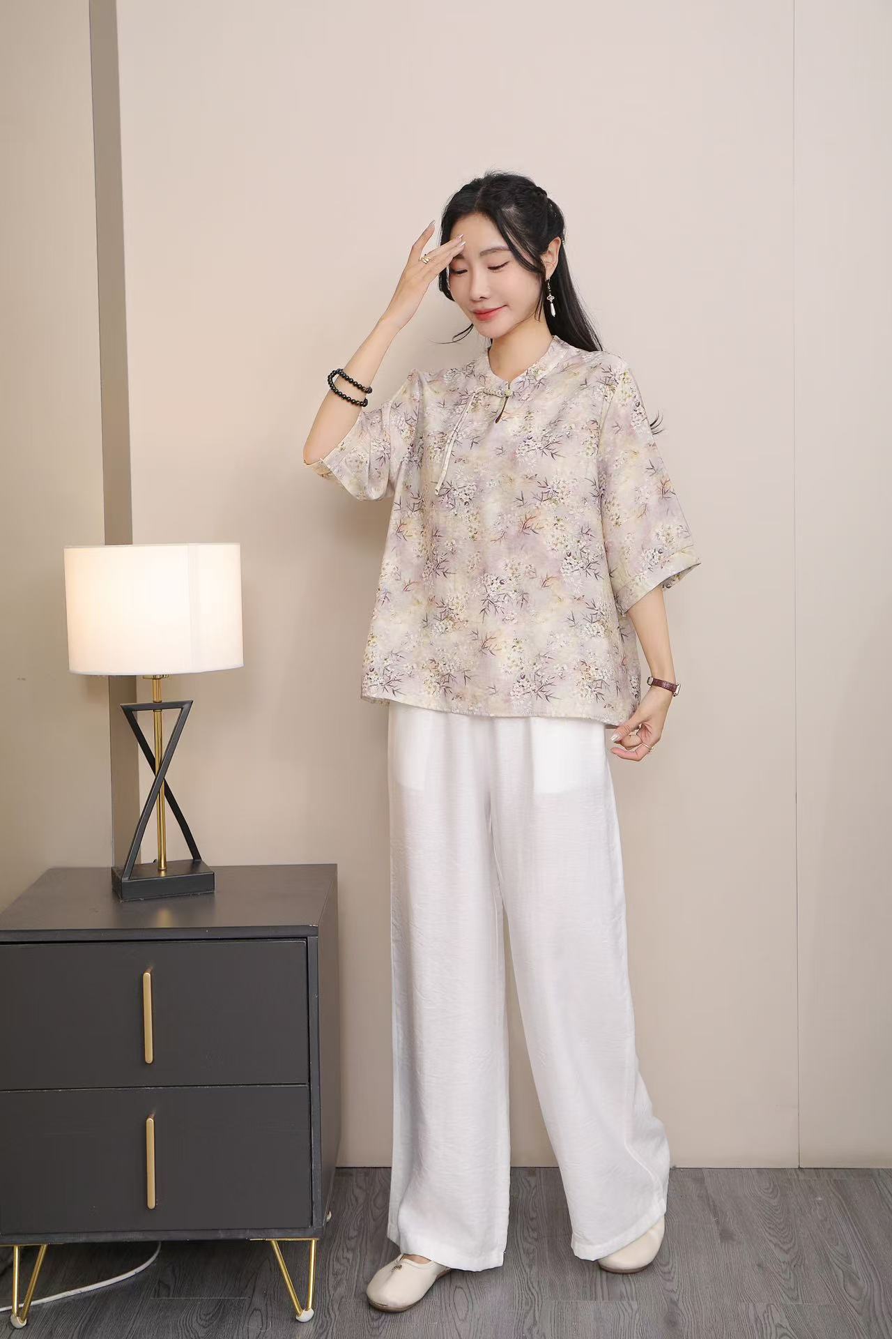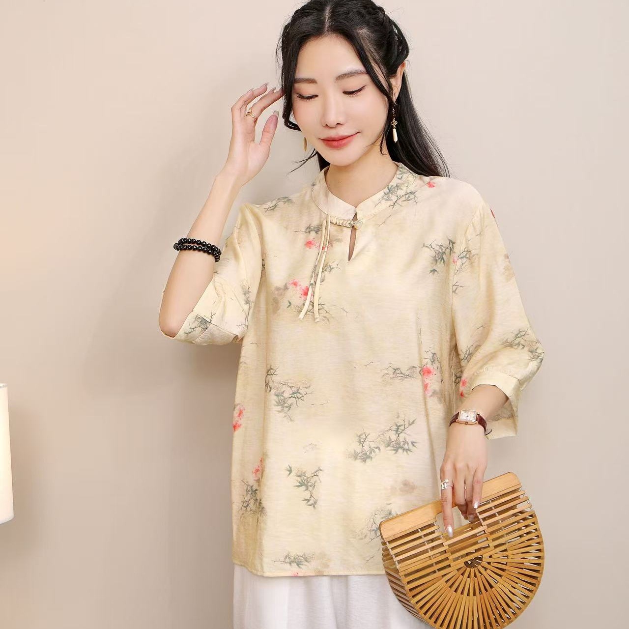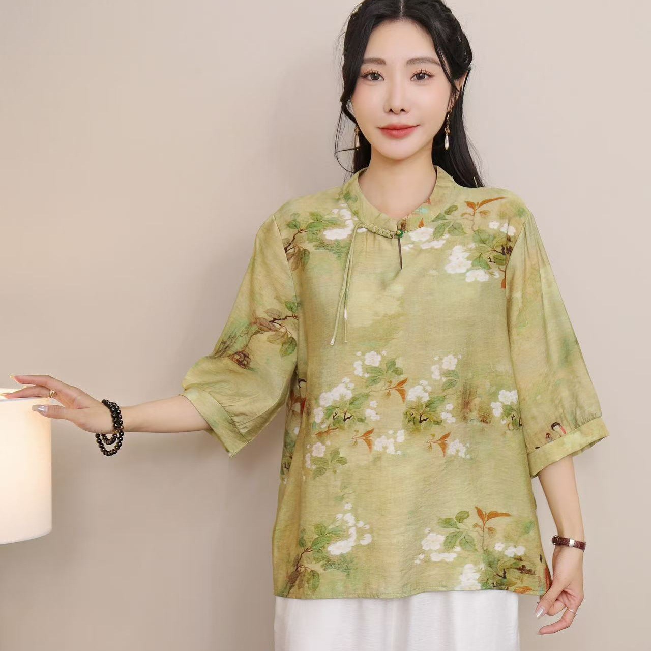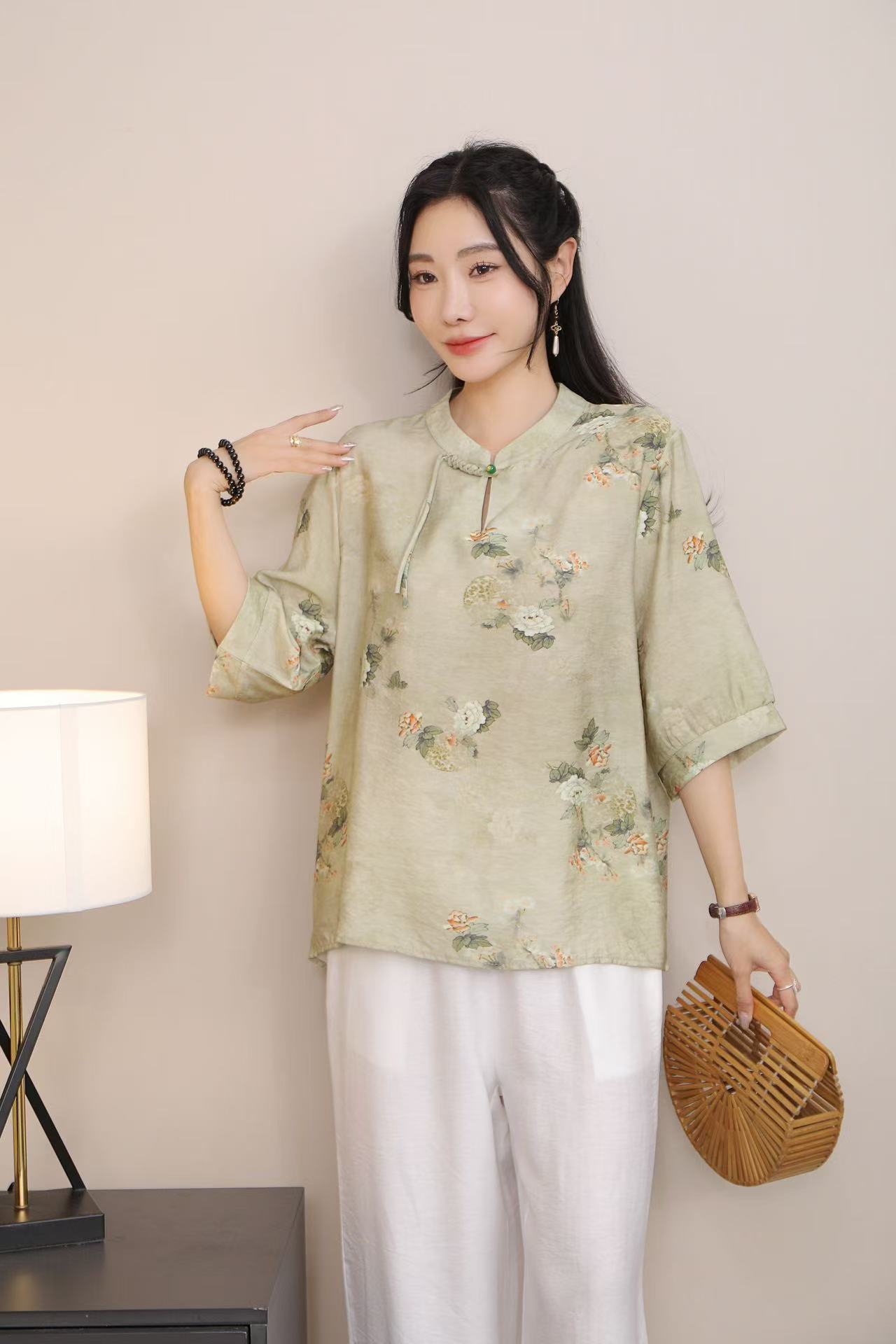 2025 Летняя женская одежда в китайском стиле улучшенная одежда Tang женский топ с короткими рукавами ретро литературный стиль этническая одежда рубашка