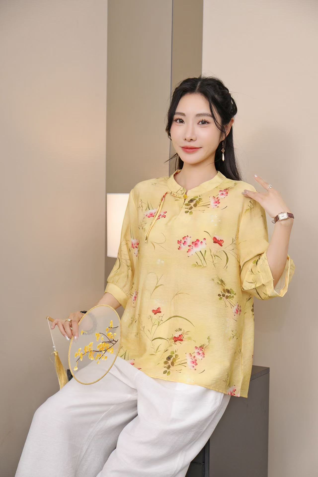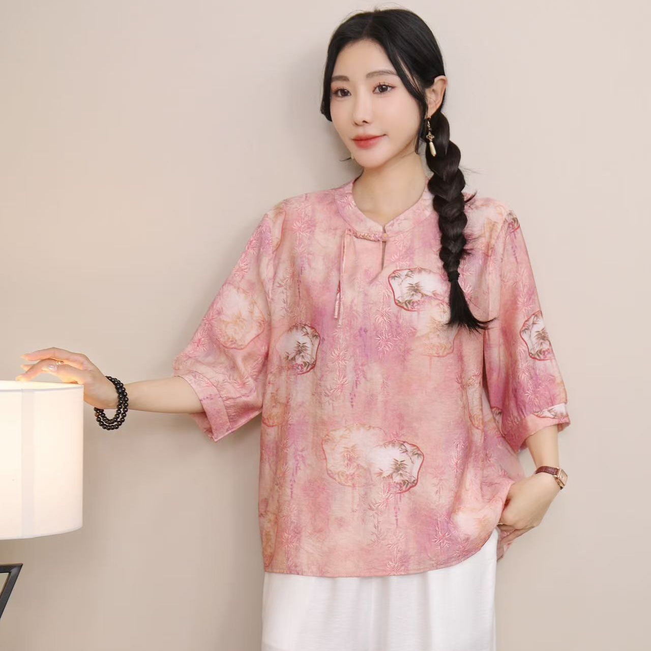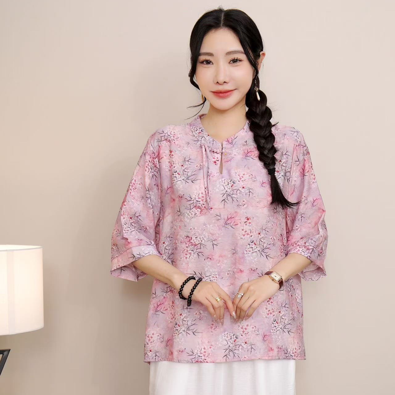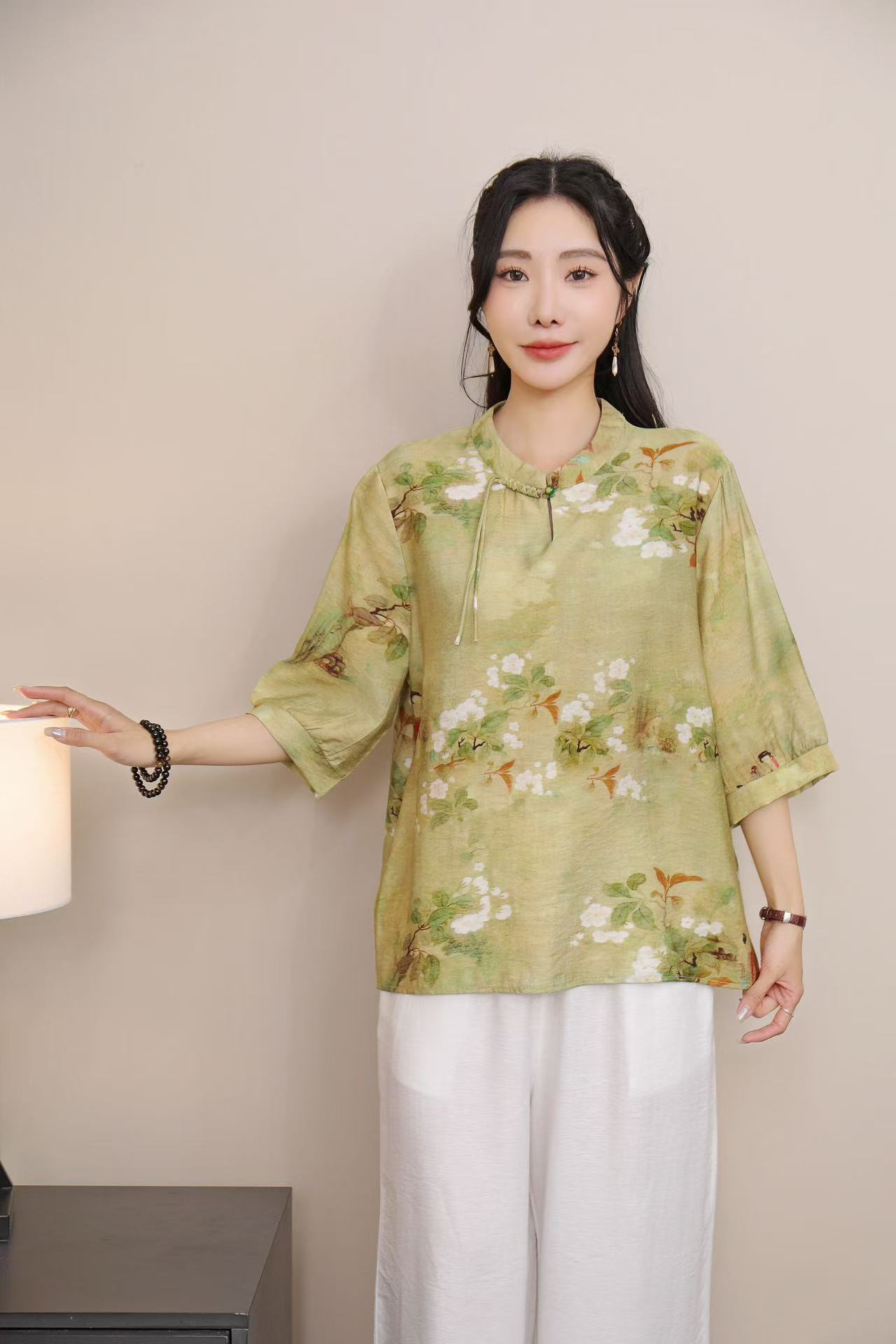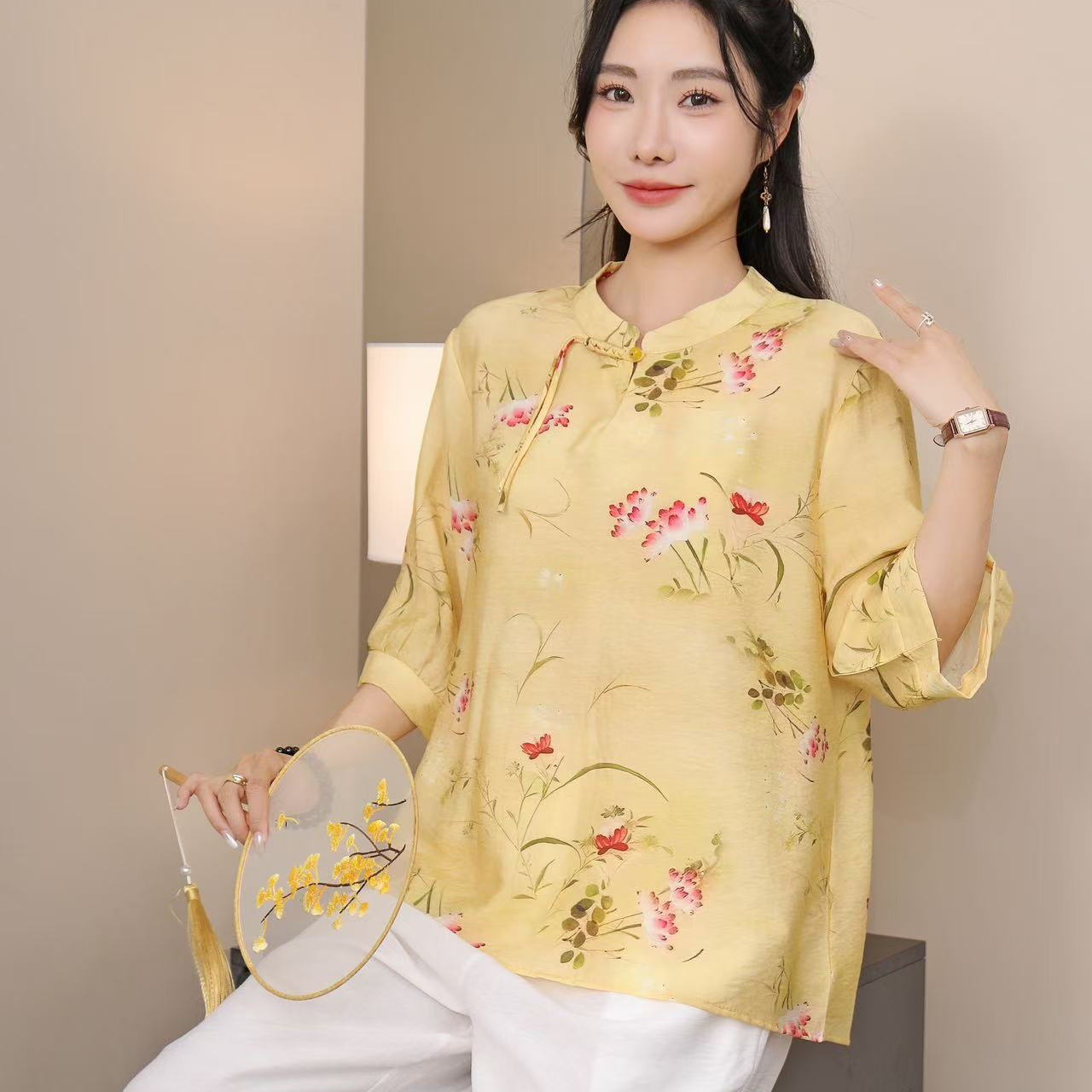 2025 Летняя женская одежда в китайском стиле улучшенная одежда Tang женский топ с короткими рукавами ретро литературный стиль этническая одежда рубашка
