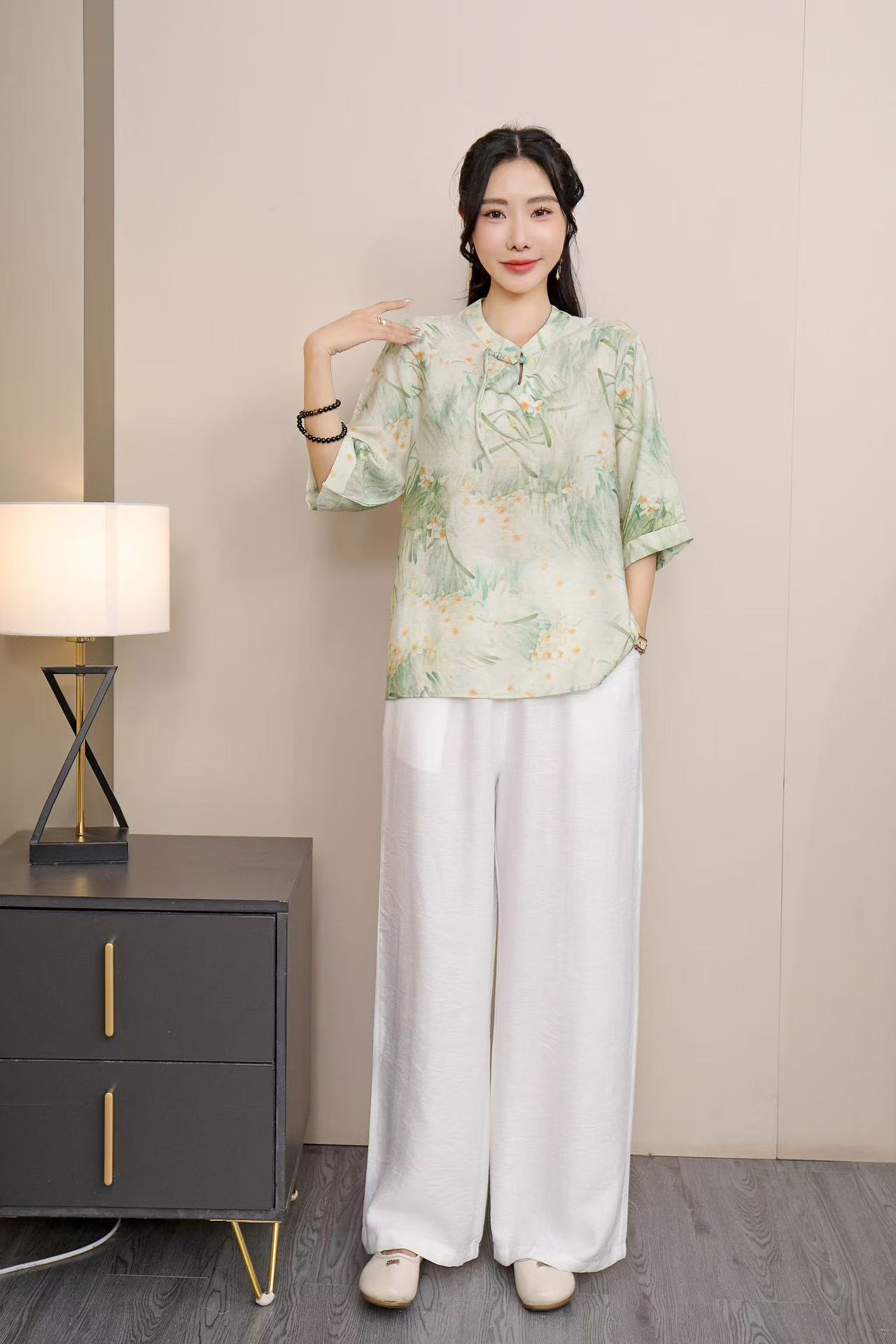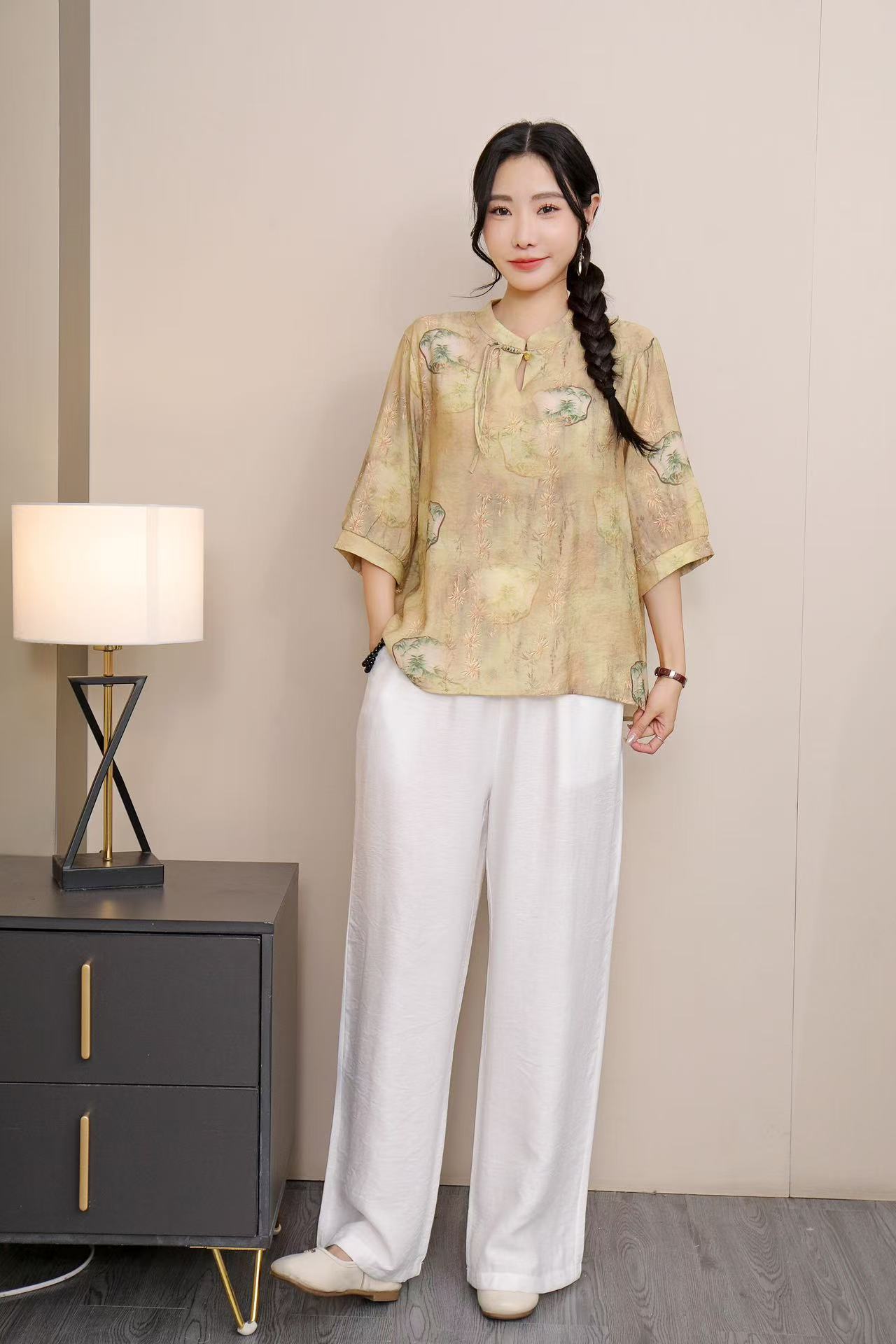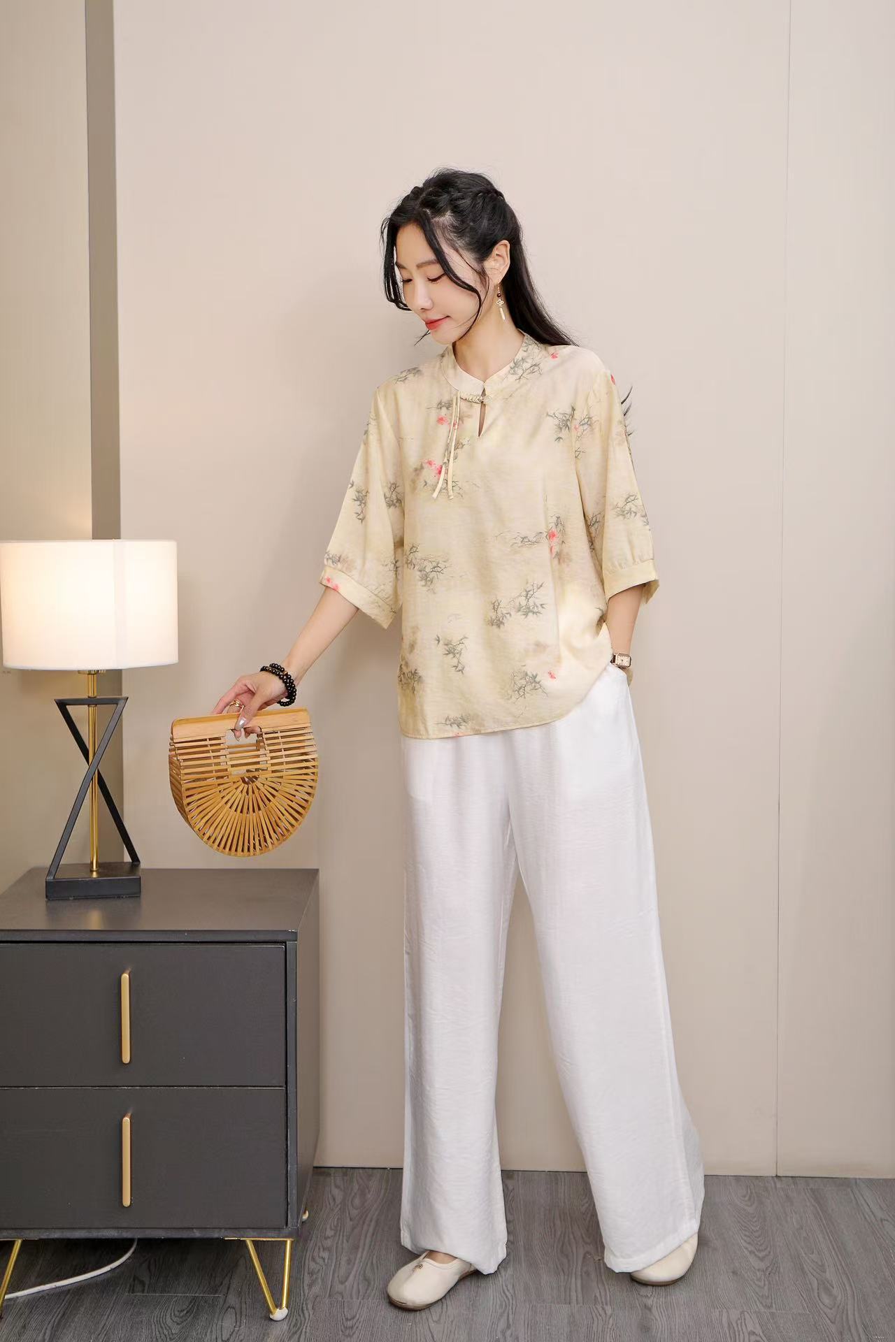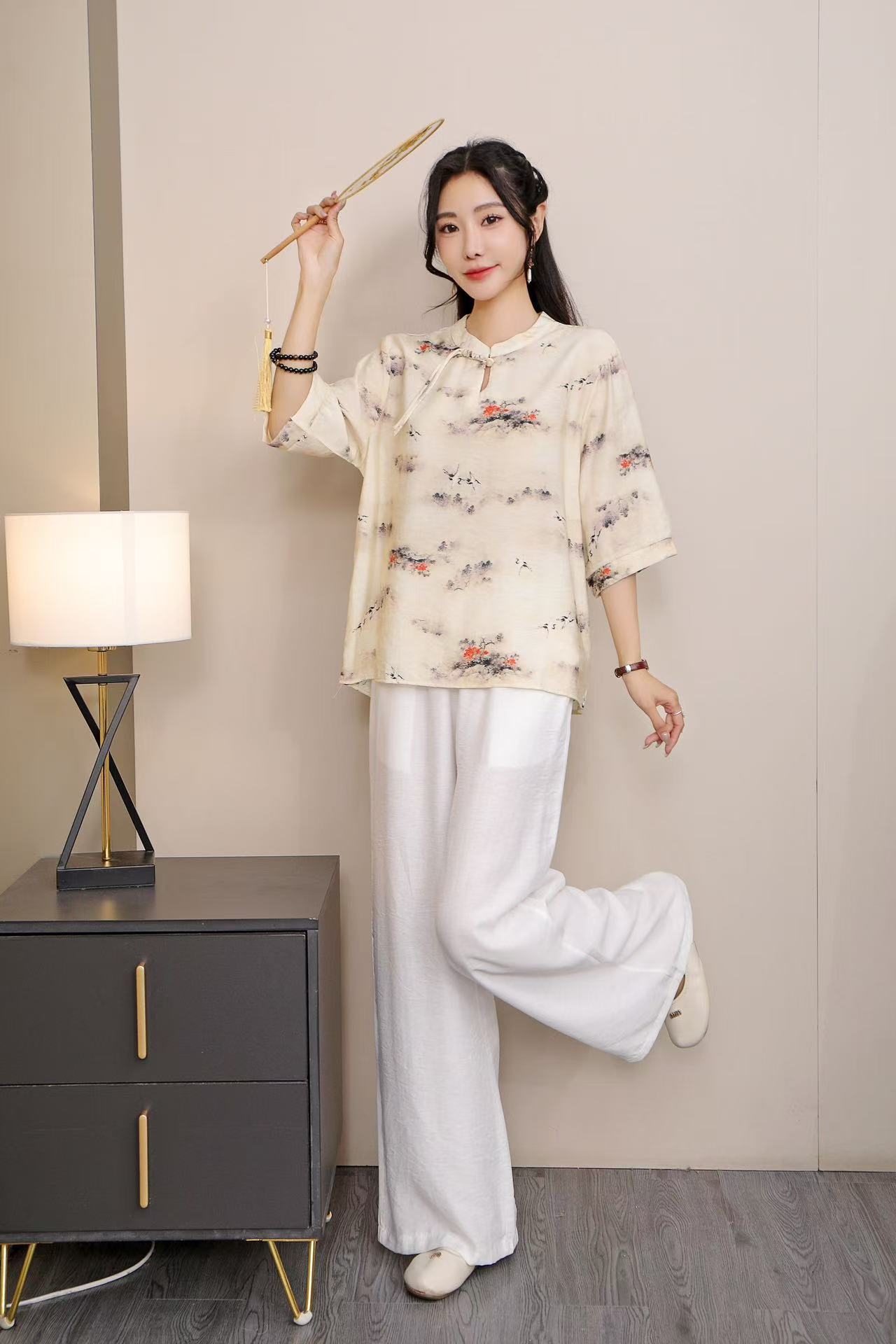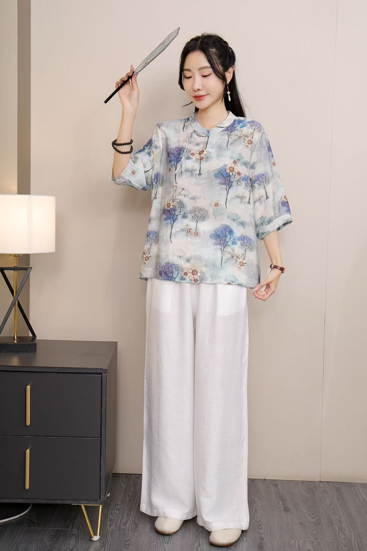 2025 Летняя женская одежда в китайском стиле улучшенная одежда Tang женский топ с короткими рукавами ретро литературный стиль этническая одежда рубашка