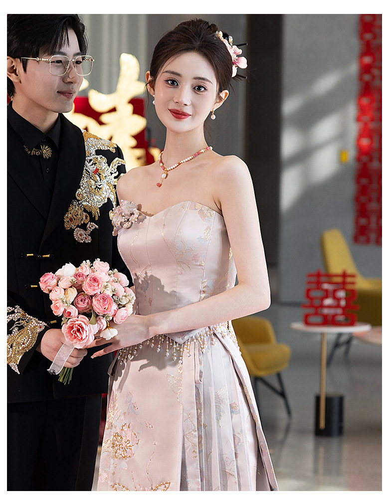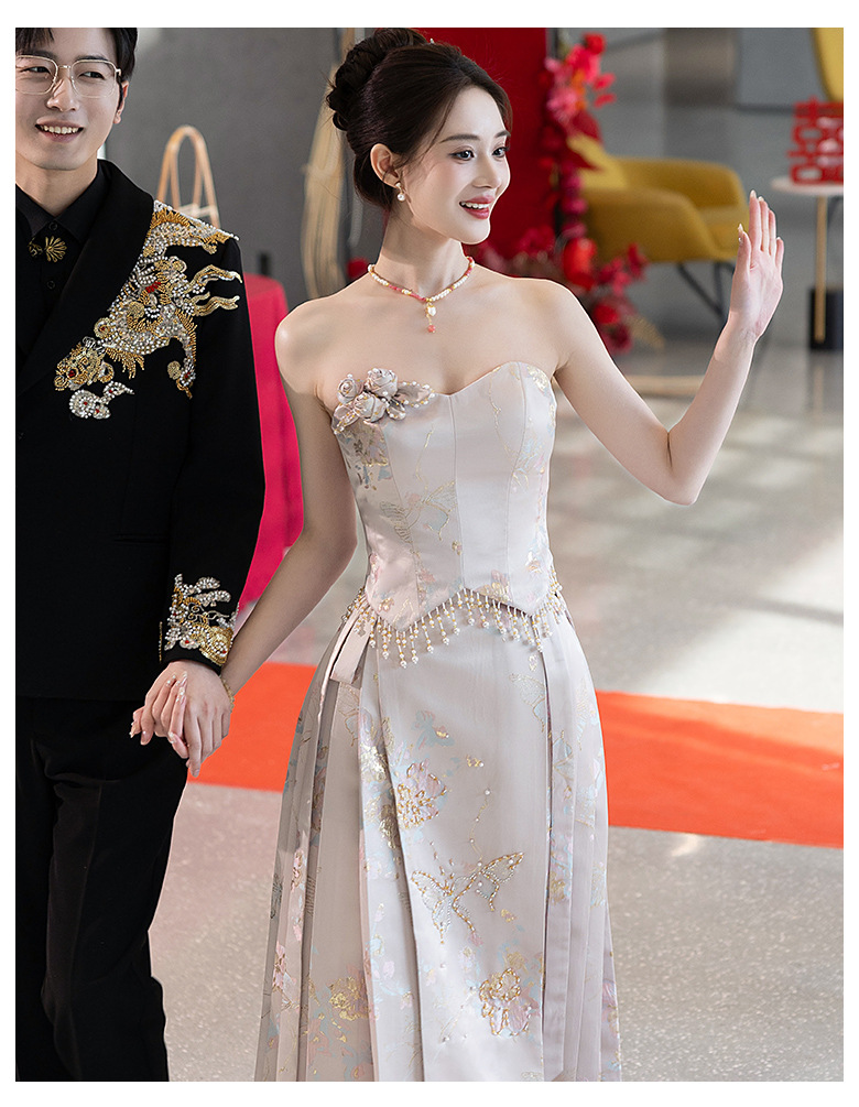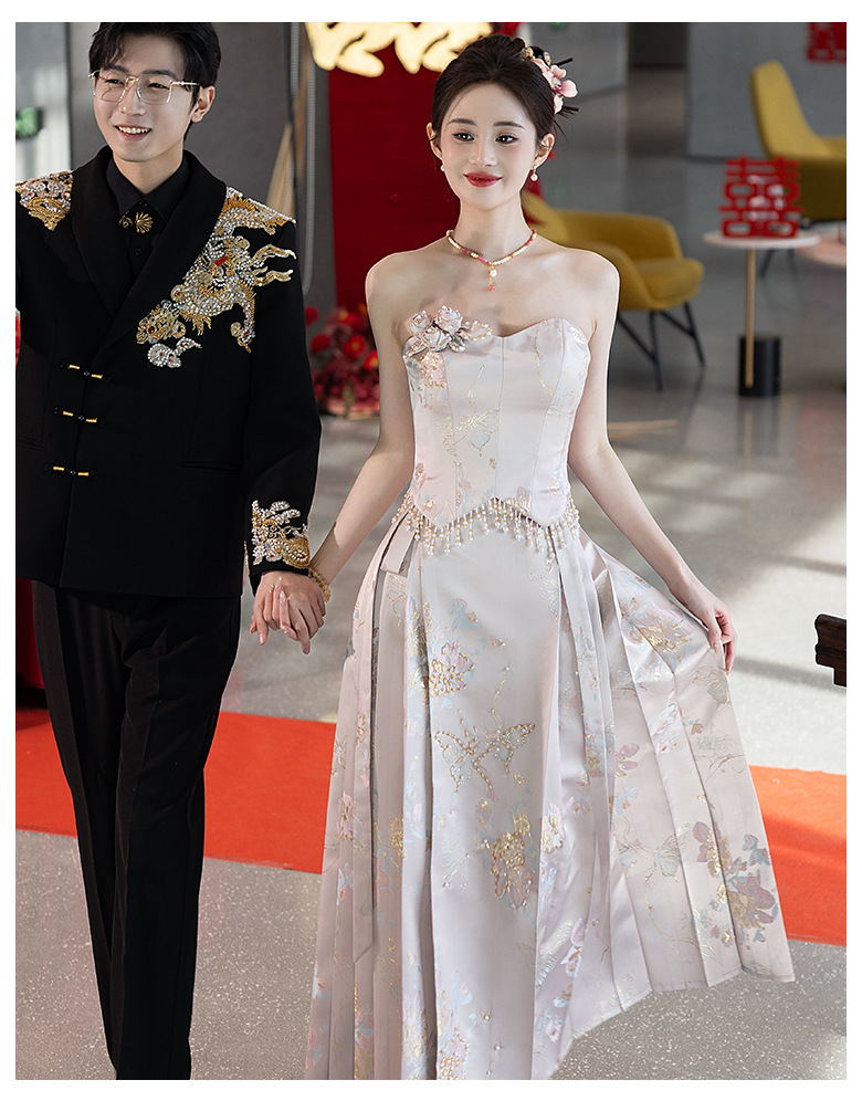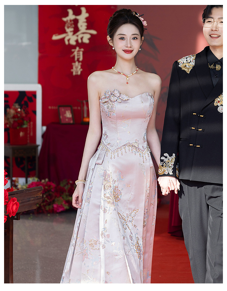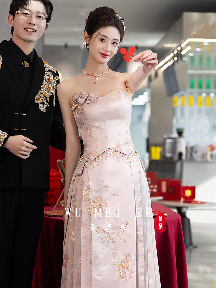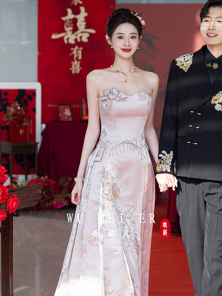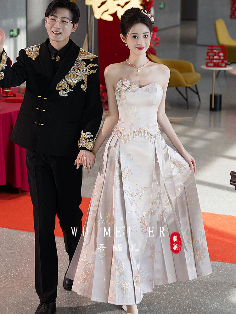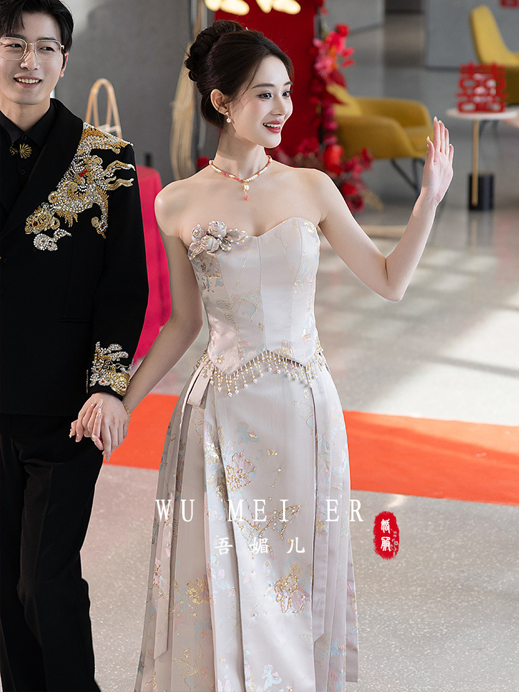Комплект для помолвки Ma'amian: новое китайское платье без бретелек 2026 года, свадебное платье-халат класса люкс, легкое и роскошное, для женщин.