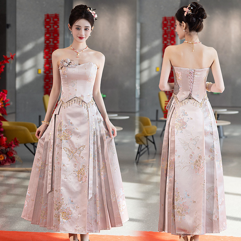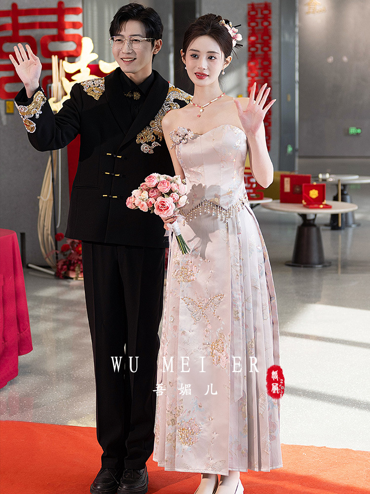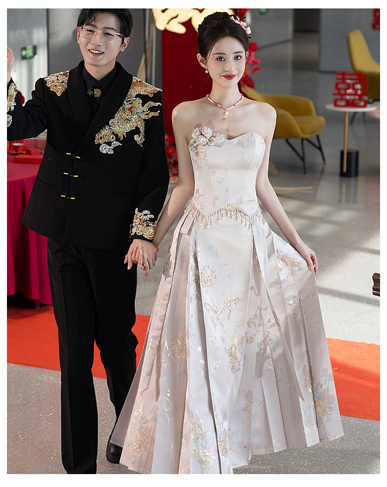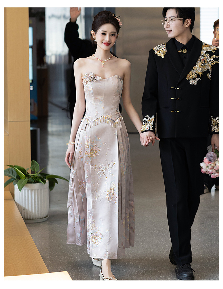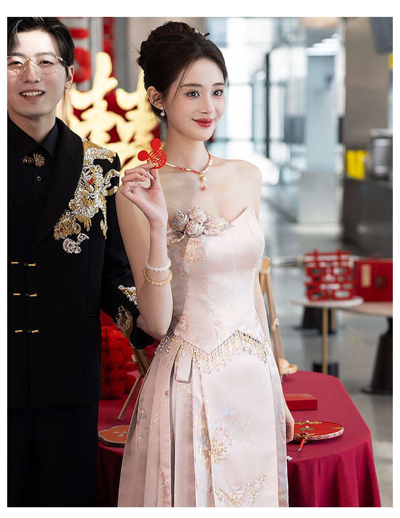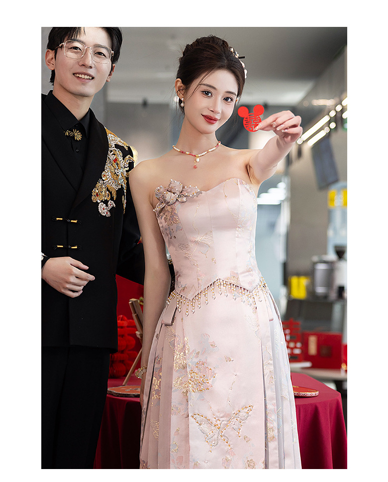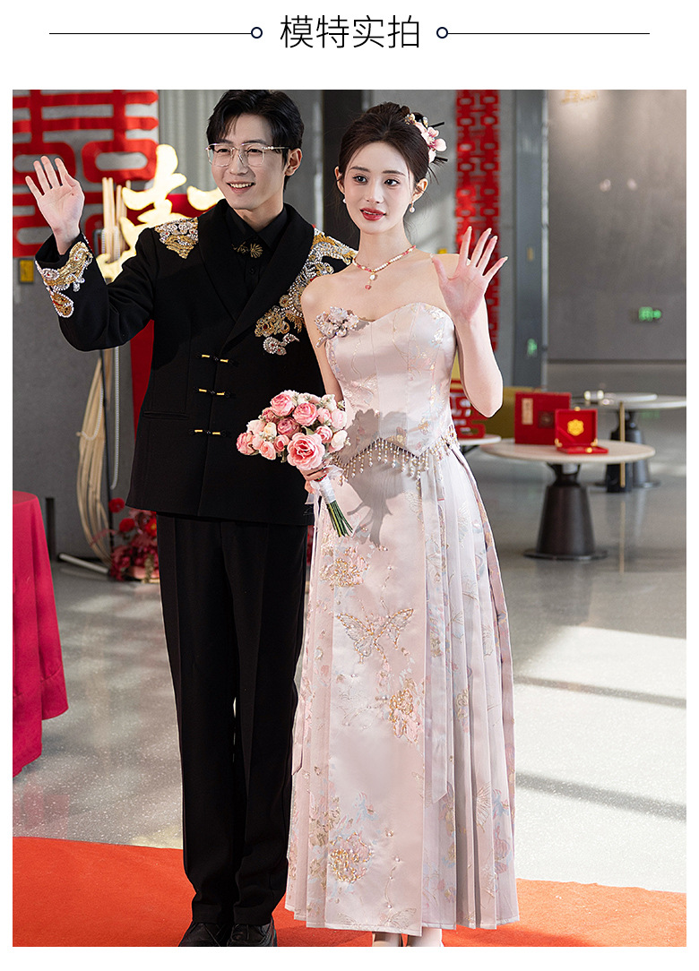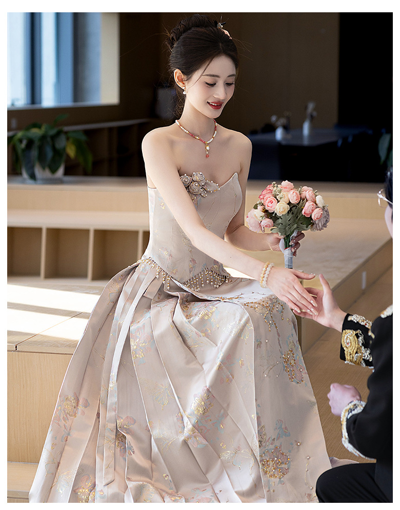 Комплект для помолвки Ma'amian: новое китайское платье без бретелек 2026 года, свадебное платье-халат класса люкс, легкое и роскошное, для женщин.