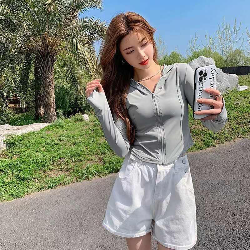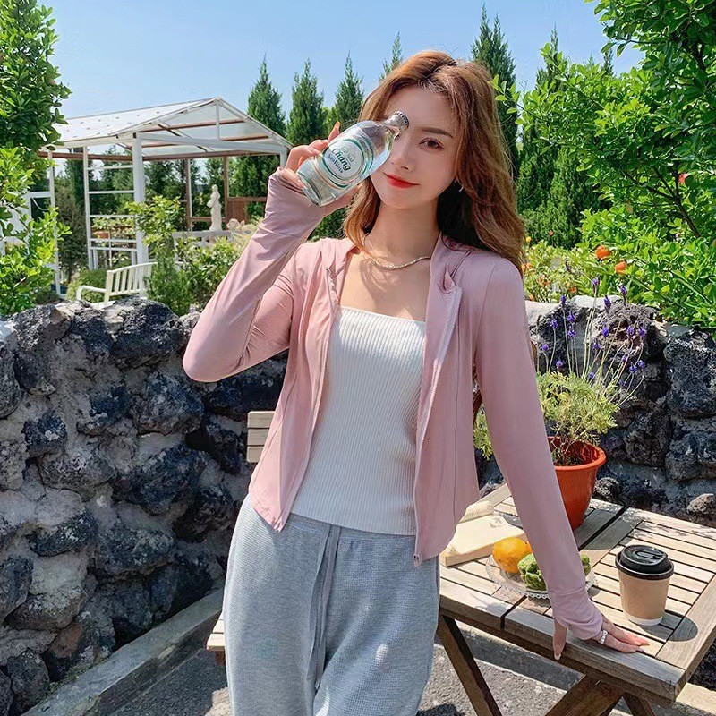 Весенний и летний новый солнцезащитный крем женский тонкий дышащий ледяной шелк анти-ультрафиолетовый солнцезащитный крем быстрая сухая куртка с длинными рукавами топ женский