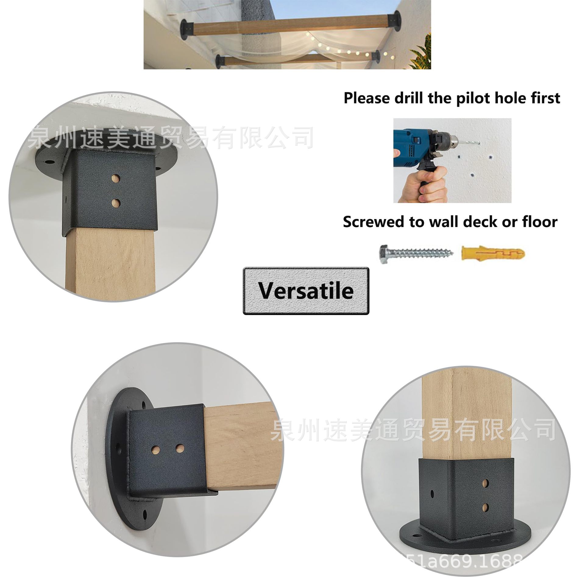 Сверхмощный сплошной квадрат перила основания черный настенный монтаж кронштейн комплект для палубы перила почтовый ящик
