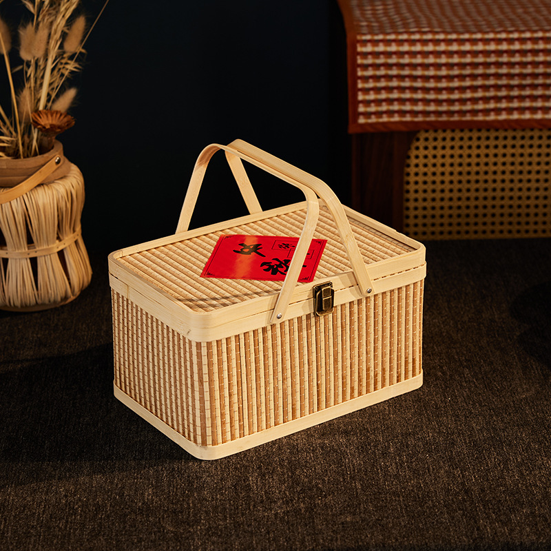 Бамбуковая корзина ручной работы, коробка для упаковки рисовых пельменей, высококачественная бамбуковая подарочная коробка, пустая внешняя упаковка с волосатыми крабовыми фруктами