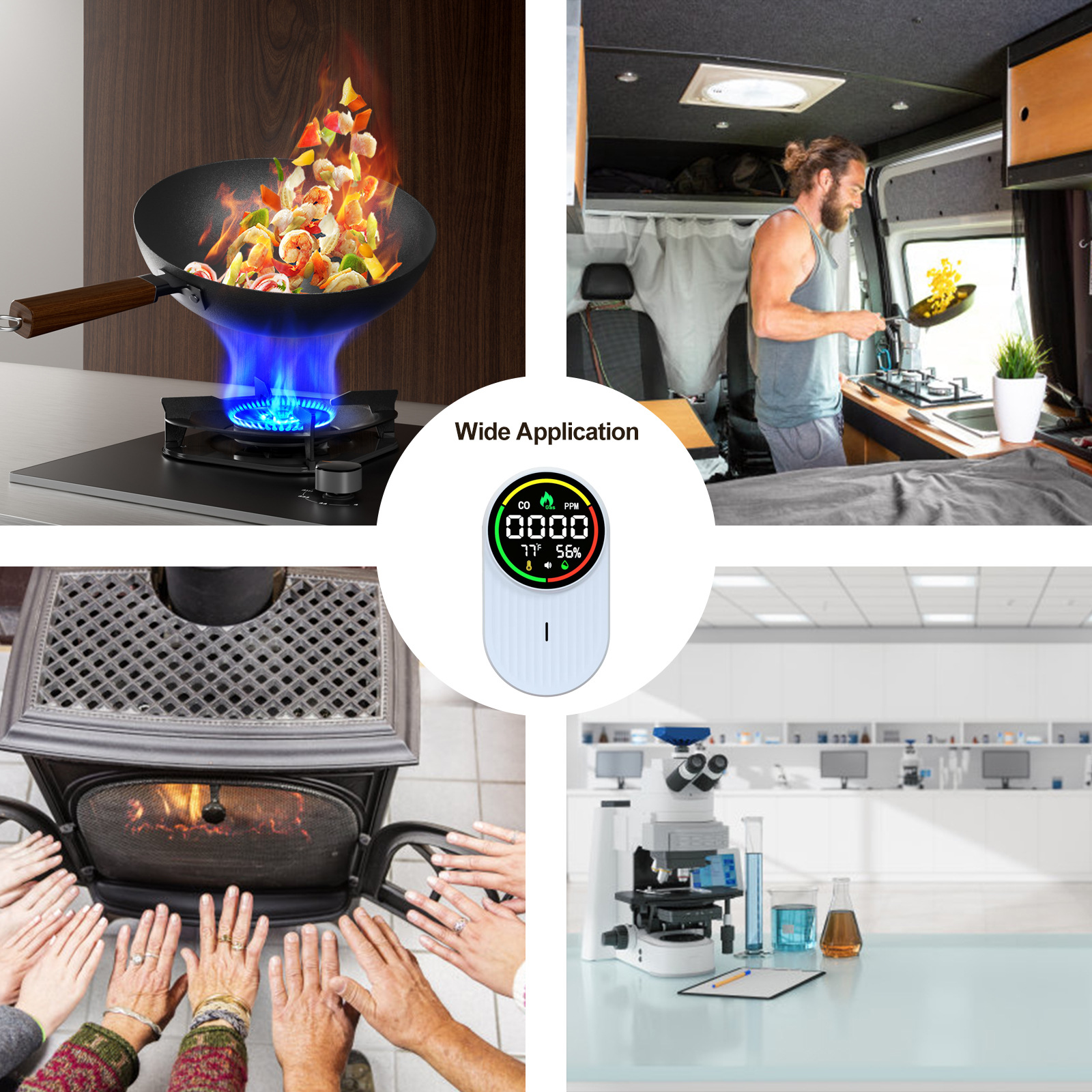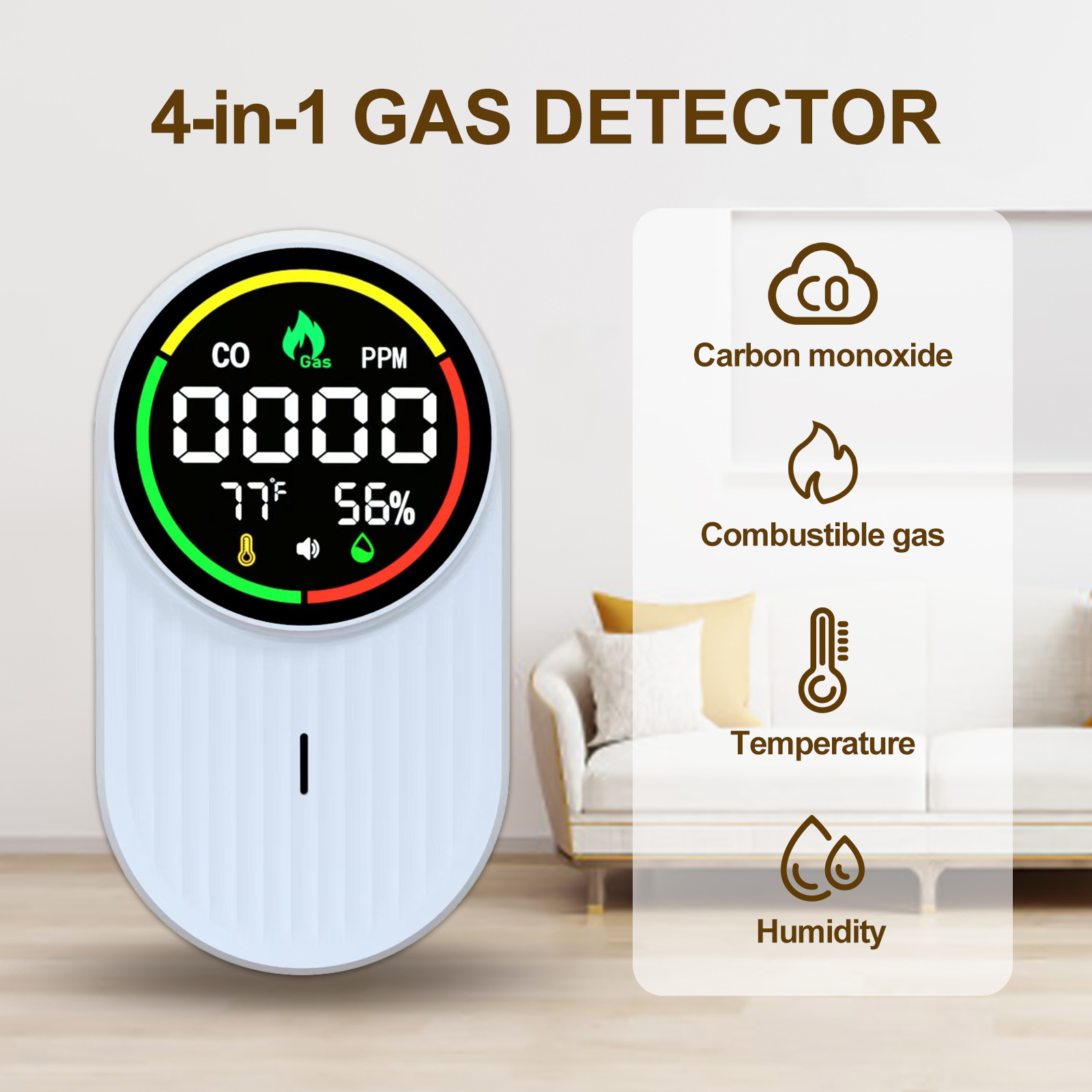 Детектор угарного газа (CO) для автодомов, бытовой настенный детектор горючих газов, температуры и влажности 4-в-1