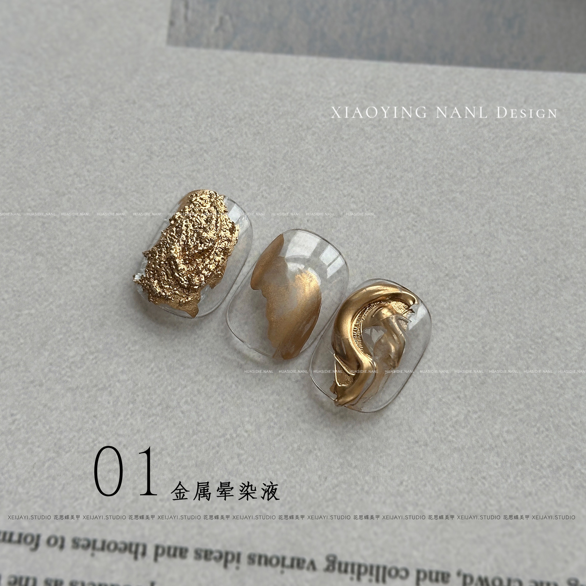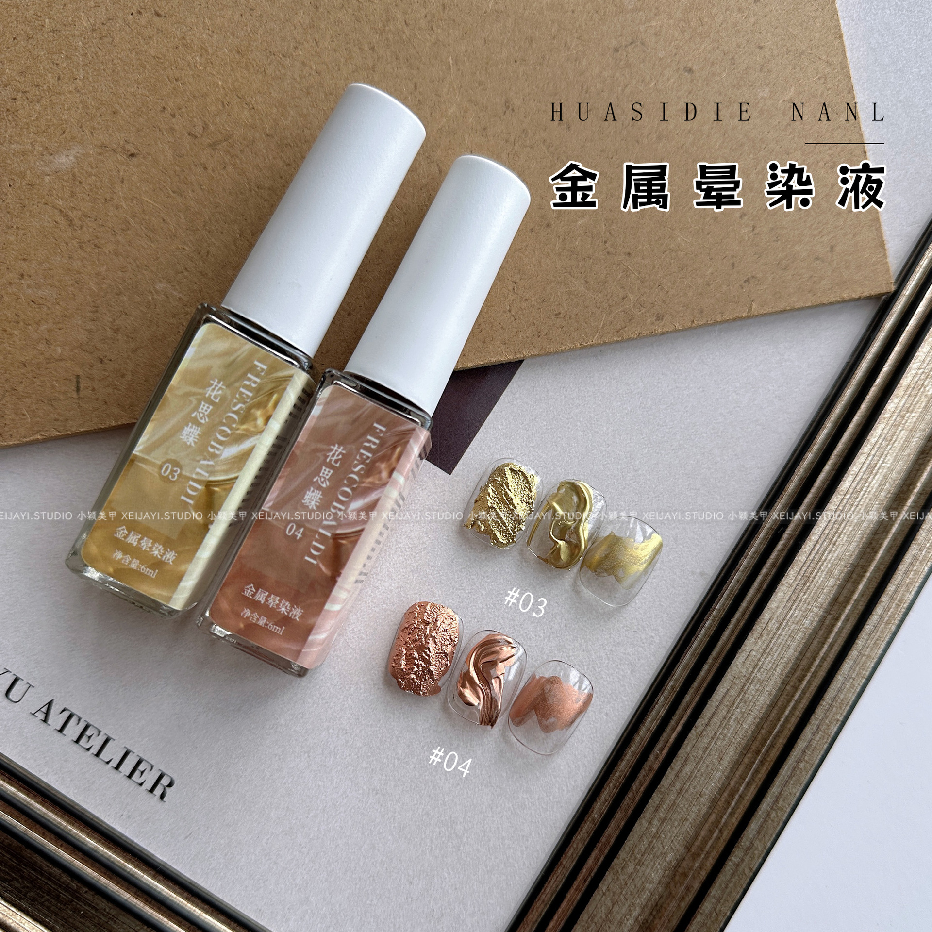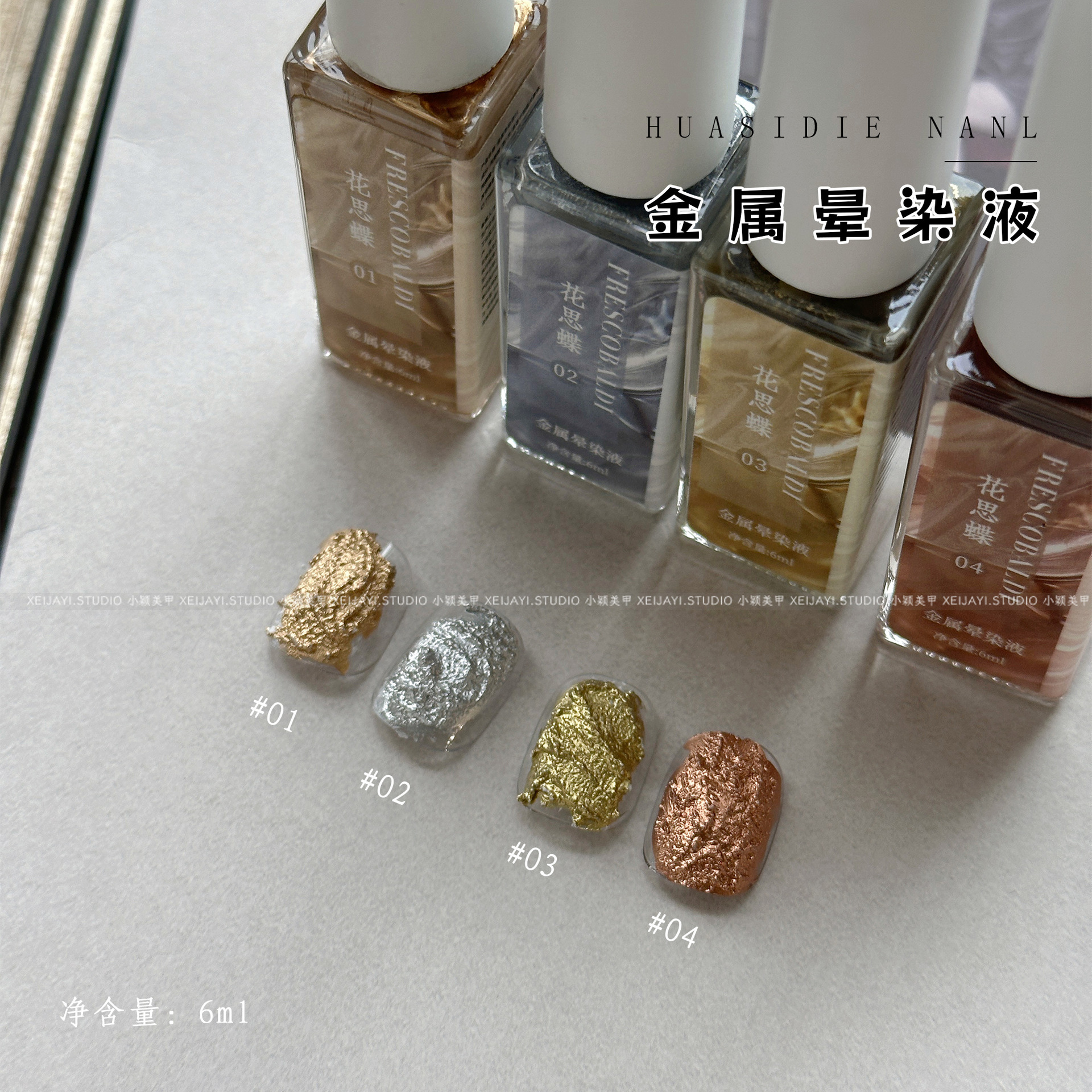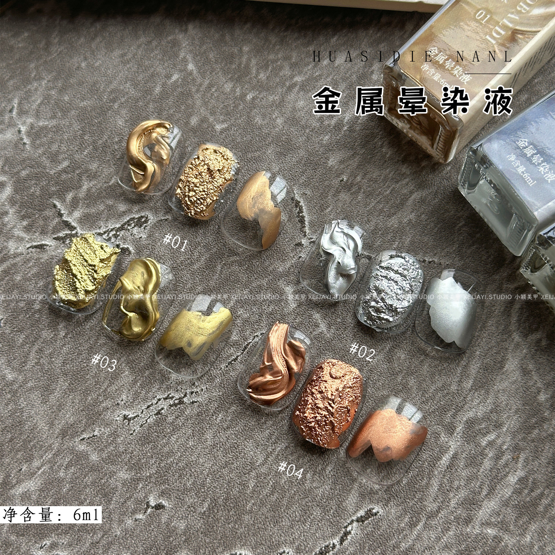 Жидкость для растушевки металла (полный набор из 4 цветов); Металлический размазывающий сок 01+02; Жидкость для растушевки металла 03+04; Жидкость для размазывания металла-01 (золото); Металлический smugi-02 (серебро); Металлический размазок-03 (золотой); Жидкость для растушевки металла-04 (розовое золото)