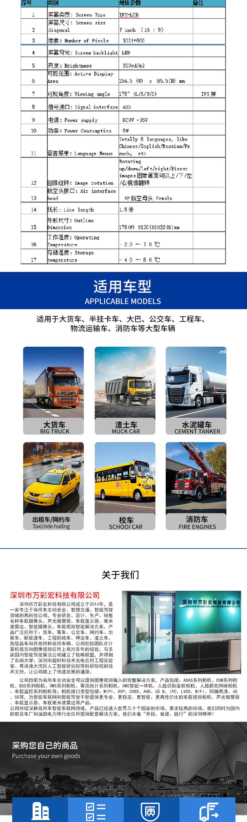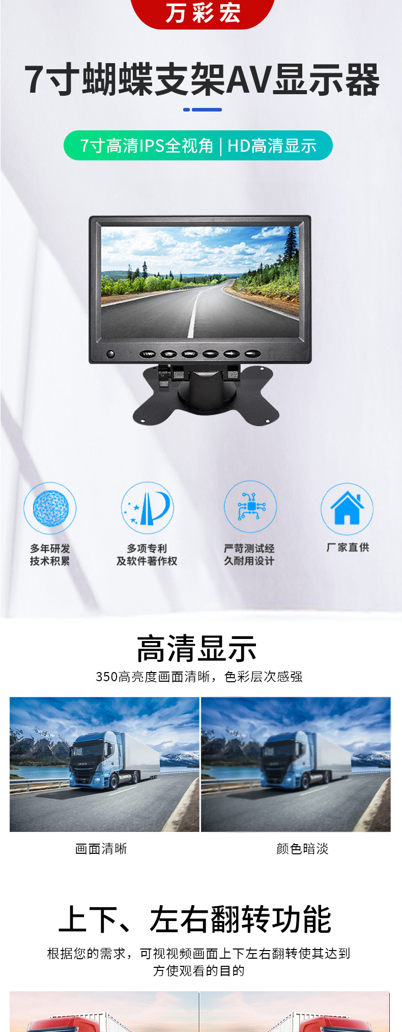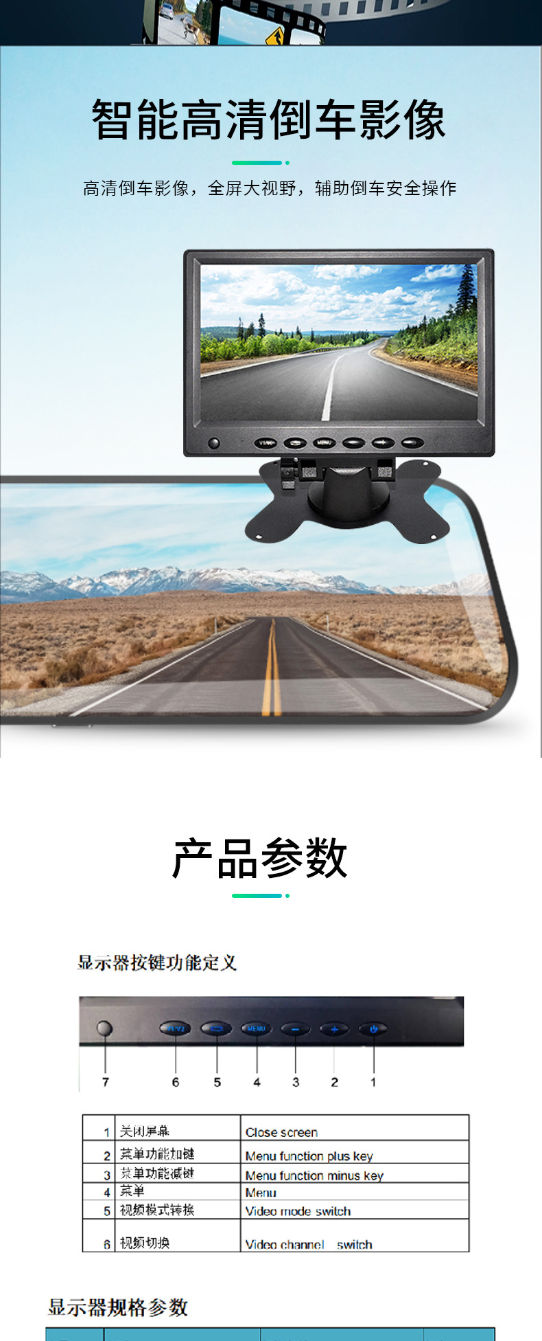 7-дюймовый автомобильный дисплей настольный HD слепой зоны