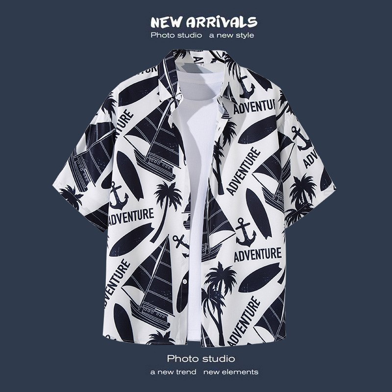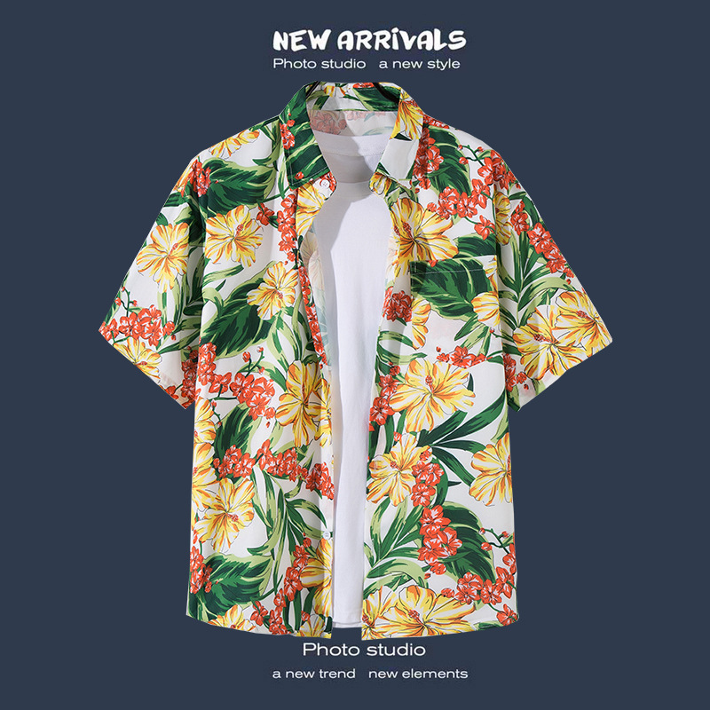Пляжная рубашка для отдыха на море, мужская рубашка с короткими рукавами, красивый гавайский ретро, свободная пляжная рубашка