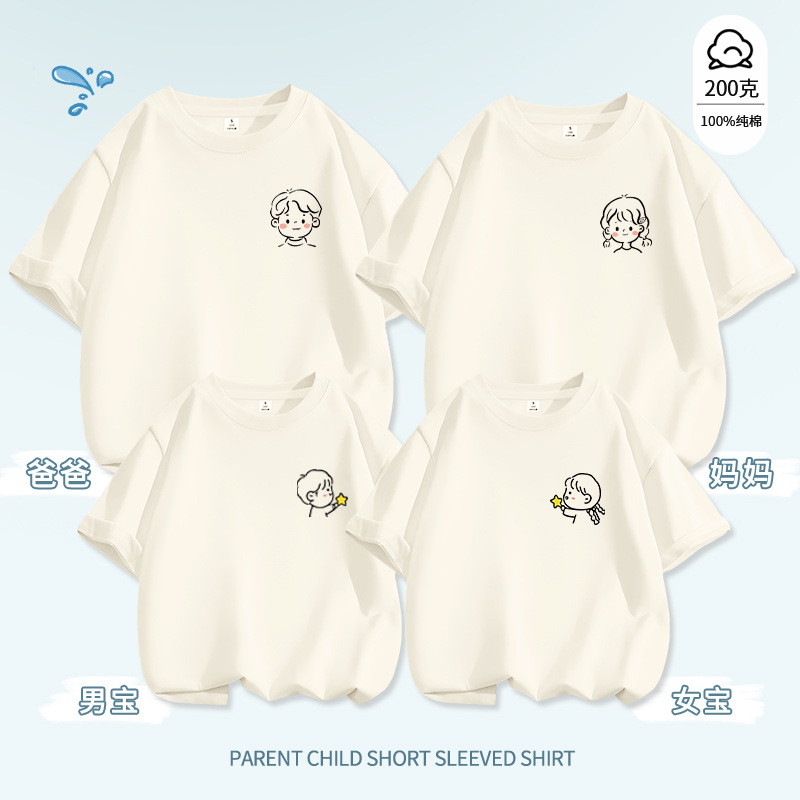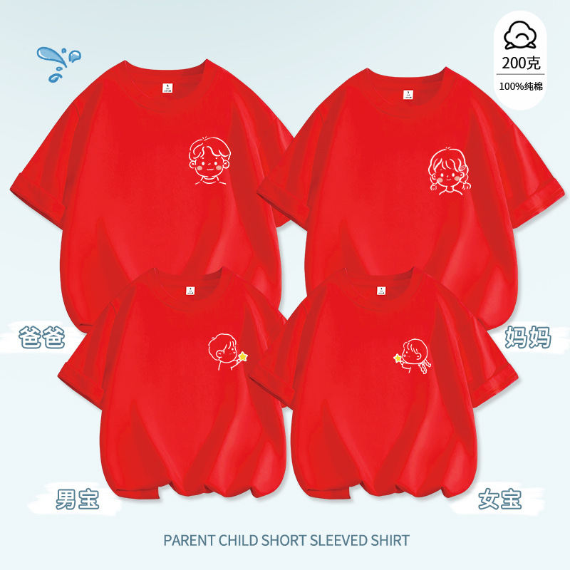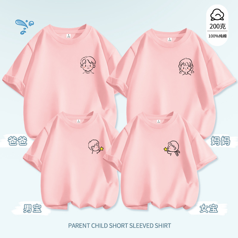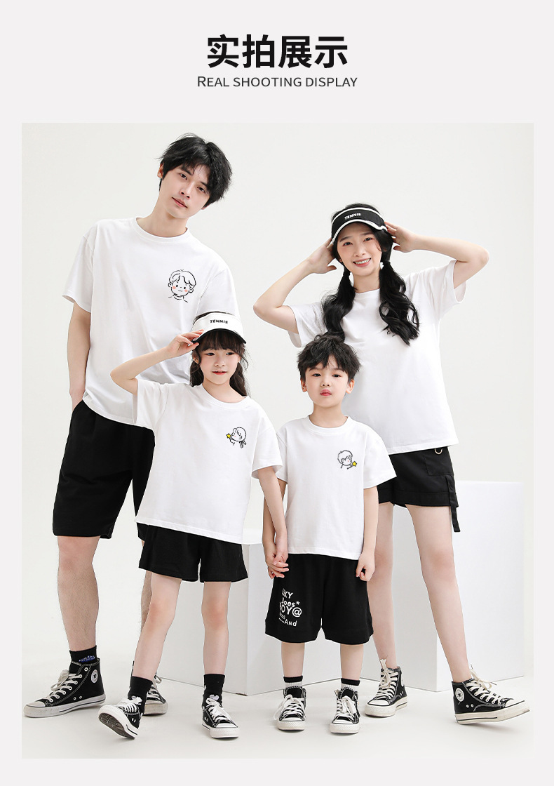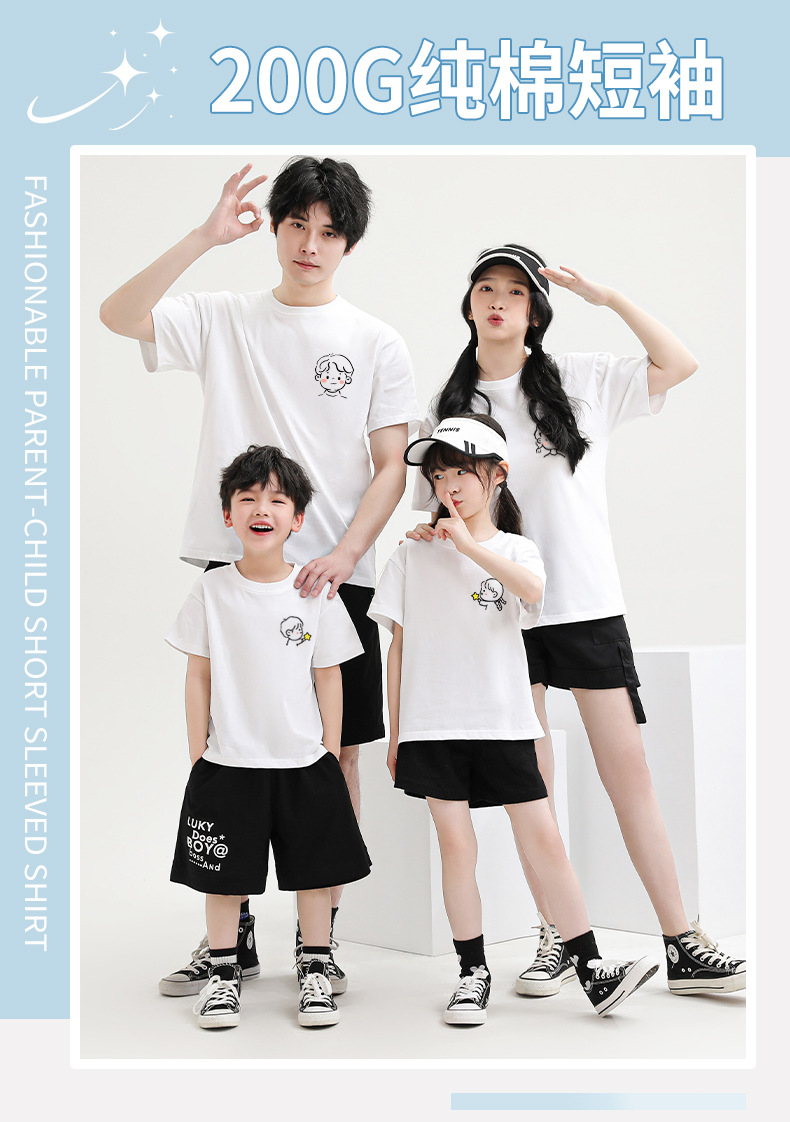 Униформа для детского сада, 100% хлопок, с короткими рукавами, 200 г, стильная семейная одежда для семьи из четырех человек, полная семейная одежда, футболка с рукавом на правое плечо.