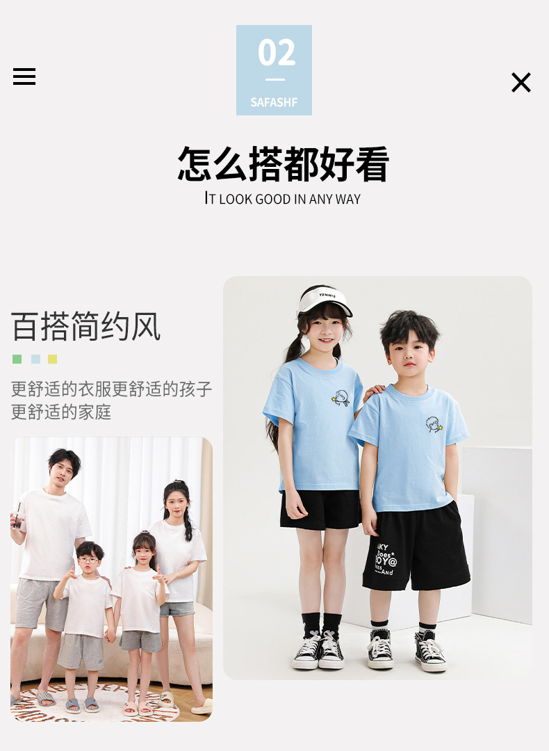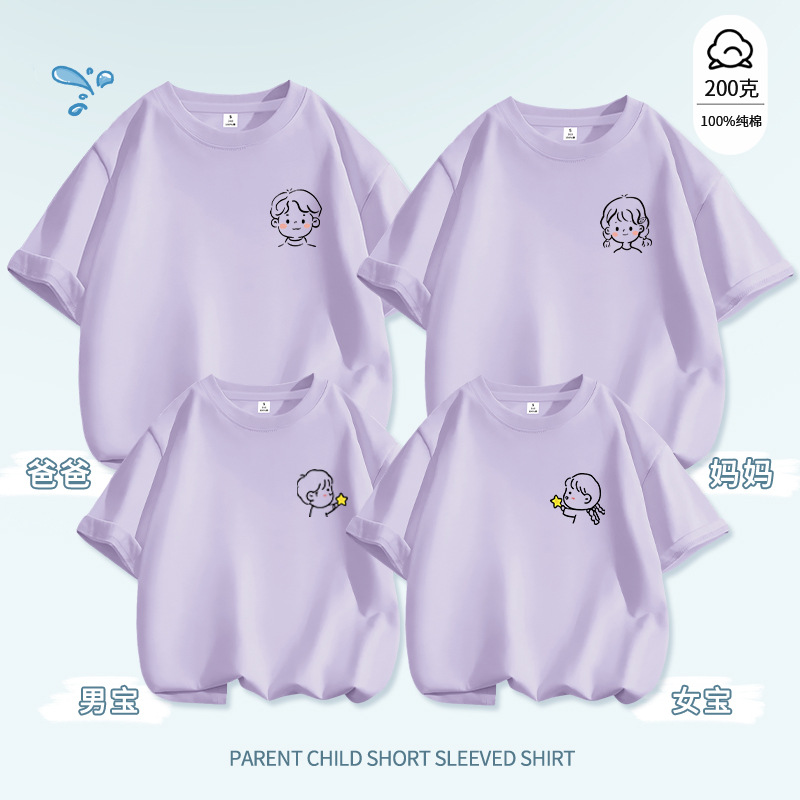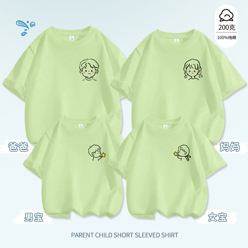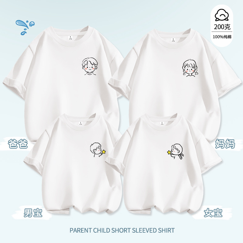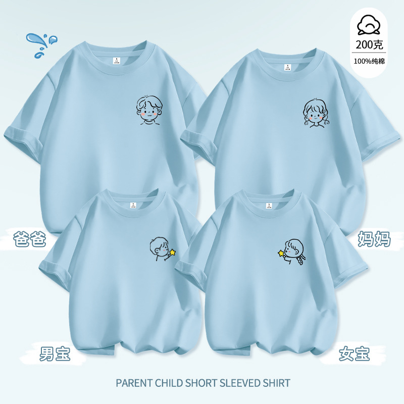 Униформа для детского сада, 100% хлопок, с короткими рукавами, 200 г, стильная семейная одежда для семьи из четырех человек, полная семейная одежда, футболка с рукавом на правое плечо.