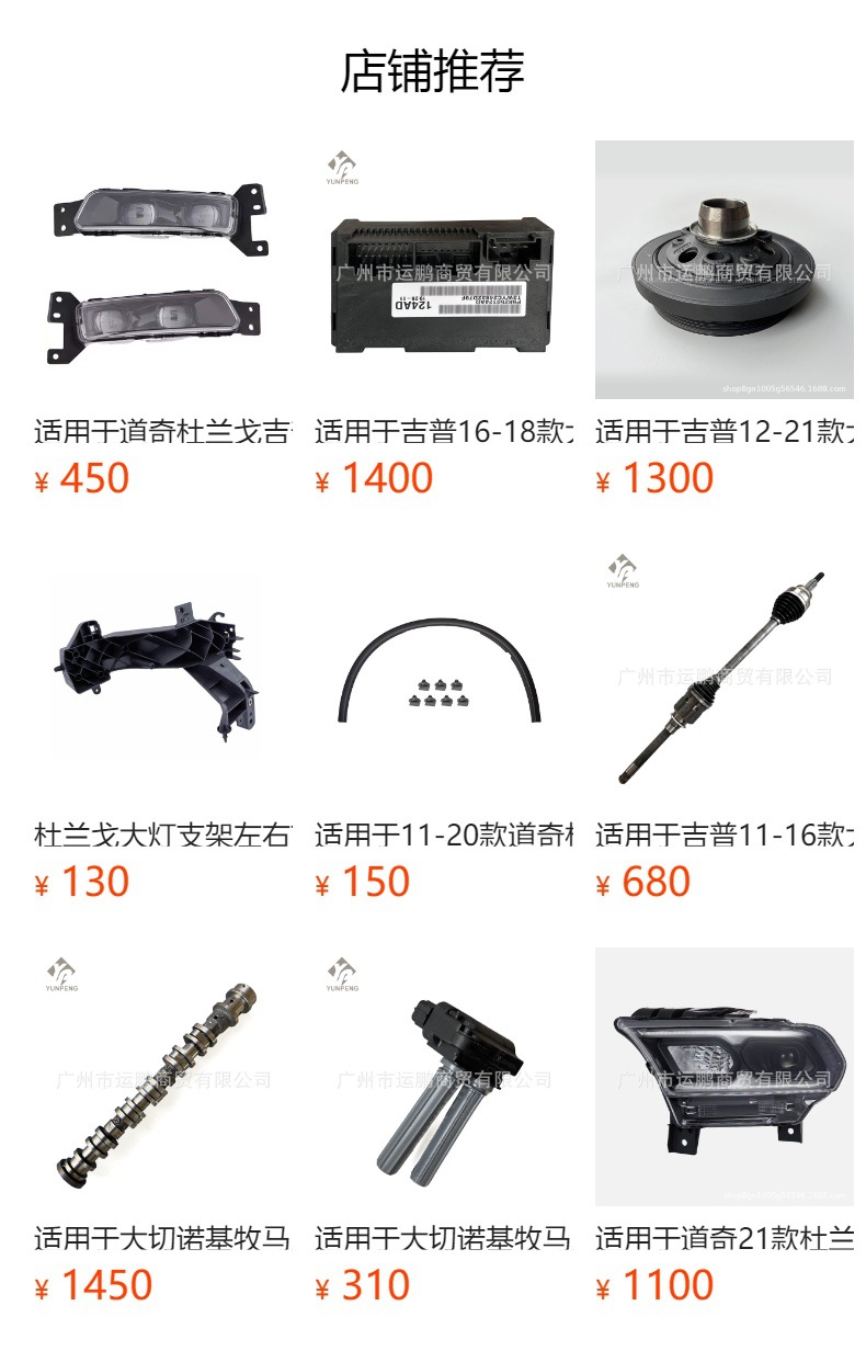 公司经营美国克莱斯勒,Jeep,道奇,广汽菲克 (牧马人,牧马人皮卡角斗士,指南者,自由客,自由光,大切诺基,指挥官,大指挥官,自由侠,自由人,300C,大捷龙,大捷龙凯领,漫步者,赛百灵,酷威,酷博 ,杜兰戈,赛百灵,挑战者 ,战马,RAM公羊皮卡霸王龙,复仇者。)全车配件,优质品牌件,纯正原厂件,一手货源,价格更优