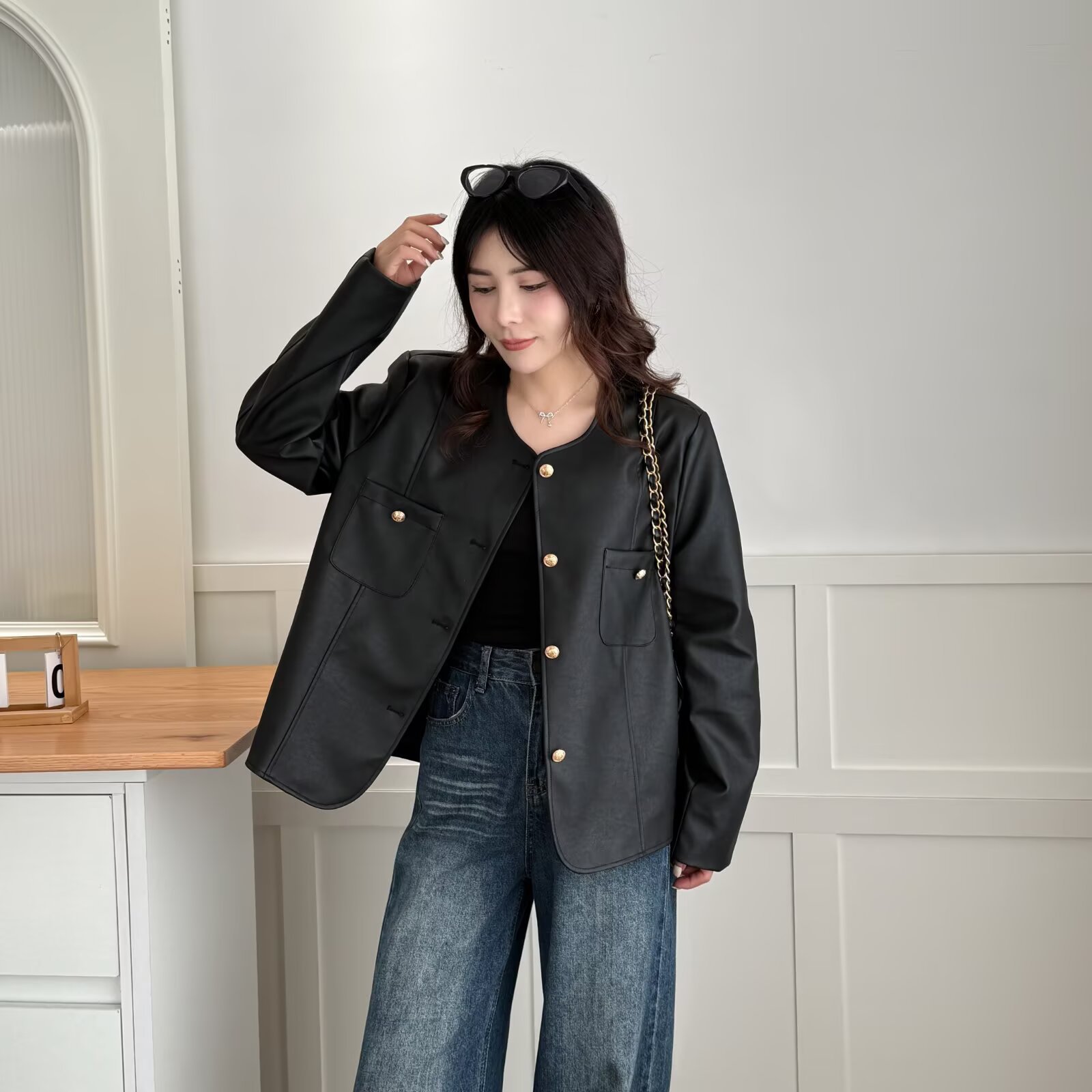 Большой размер женская маленькая ароматная кожаная одежда 2025 Ранняя весна новая 200 кг толстая сестра темперамент PUкожаная куртка 5956