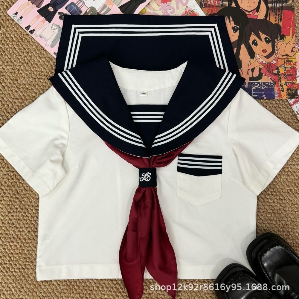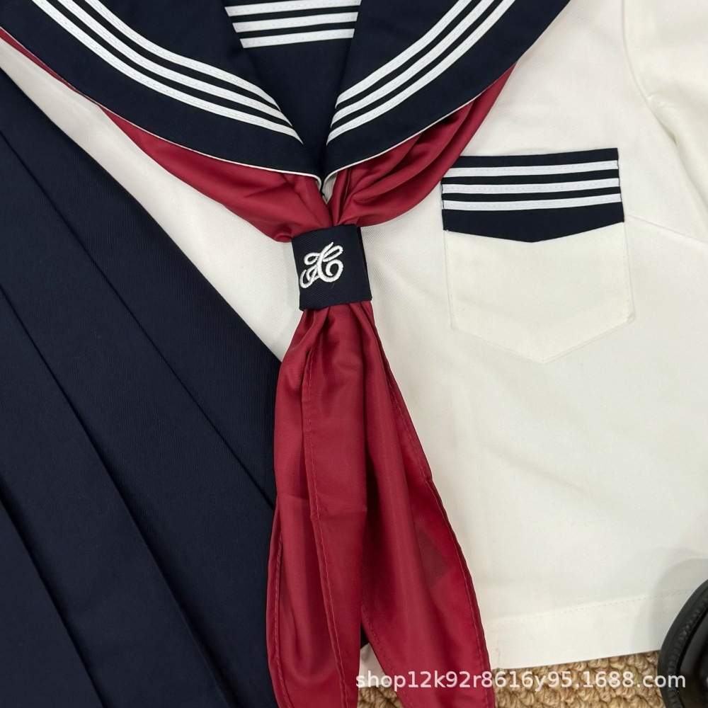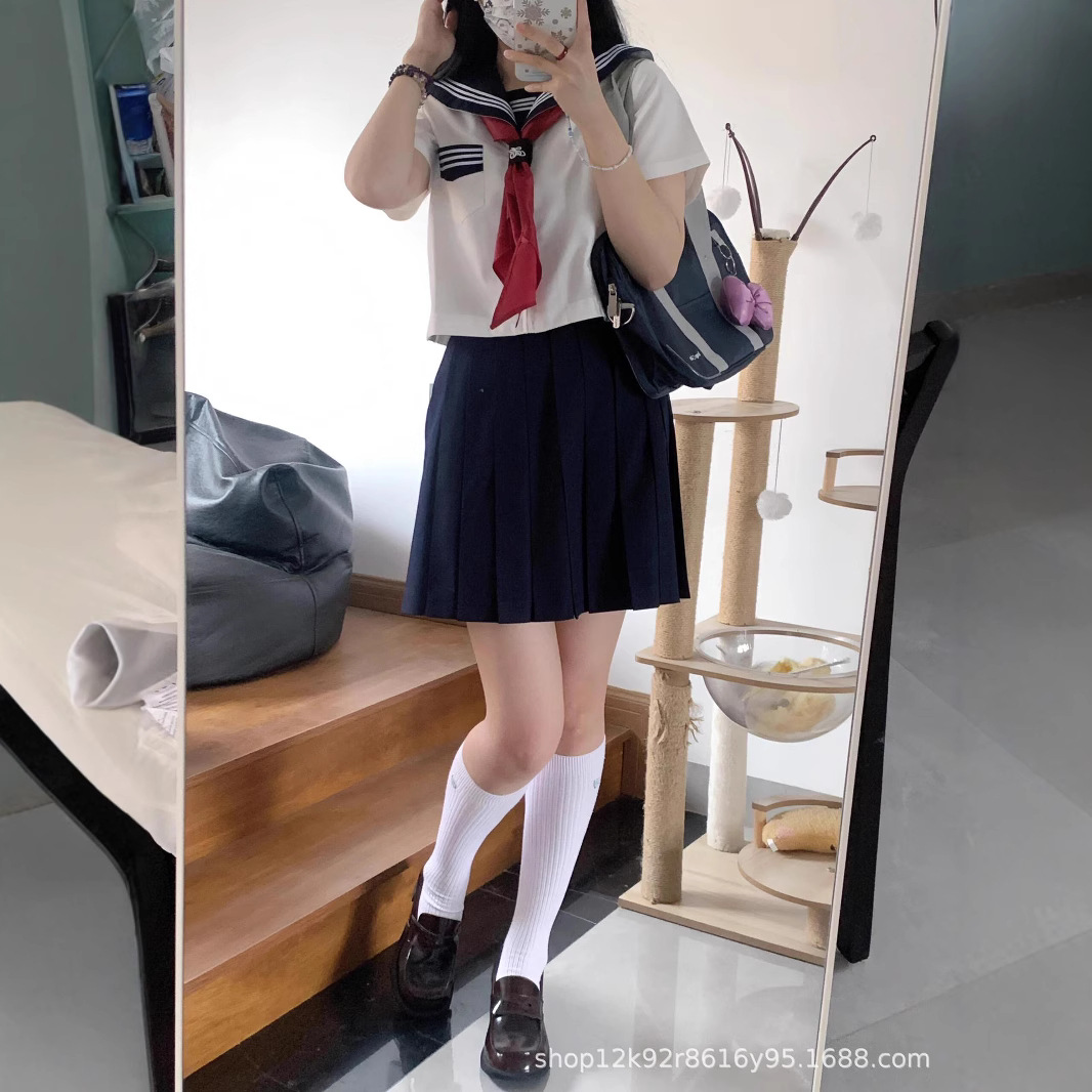 Новый белый комплект из трех предметов с короткими рукавами + красный треугольный шарф.; Новый белый комплект из трех предметов с длинными рукавами + красный треугольный шарф.; Новые белые трикотажные короткие рукава + короткая юбка 39 см [A] + красный треугольный шарф; Новые белые трикотажные короткие рукава + короткая юбка 42 см [A] + красный треугольный шарф; Новый белый комплект из трех предметов с короткими рукавами + короткая юбка 45 см + красный треугольный шарф.; Новый белый комплект из трех предметов с длинными рукавами + короткая юбка 39 см [A] + красный треугольный шарф.; Новый белый комплект из трех предметов с длинными рукавами + короткая юбка 42 см [A] + красный треугольный шарф.; Новый белый комплект из трех предметов с длинными рукавами + короткая юбка 45 см + красный треугольный шарф.; Темно-синяя юбка миди 65см.; Темно-синяя длинная юбка 75см.