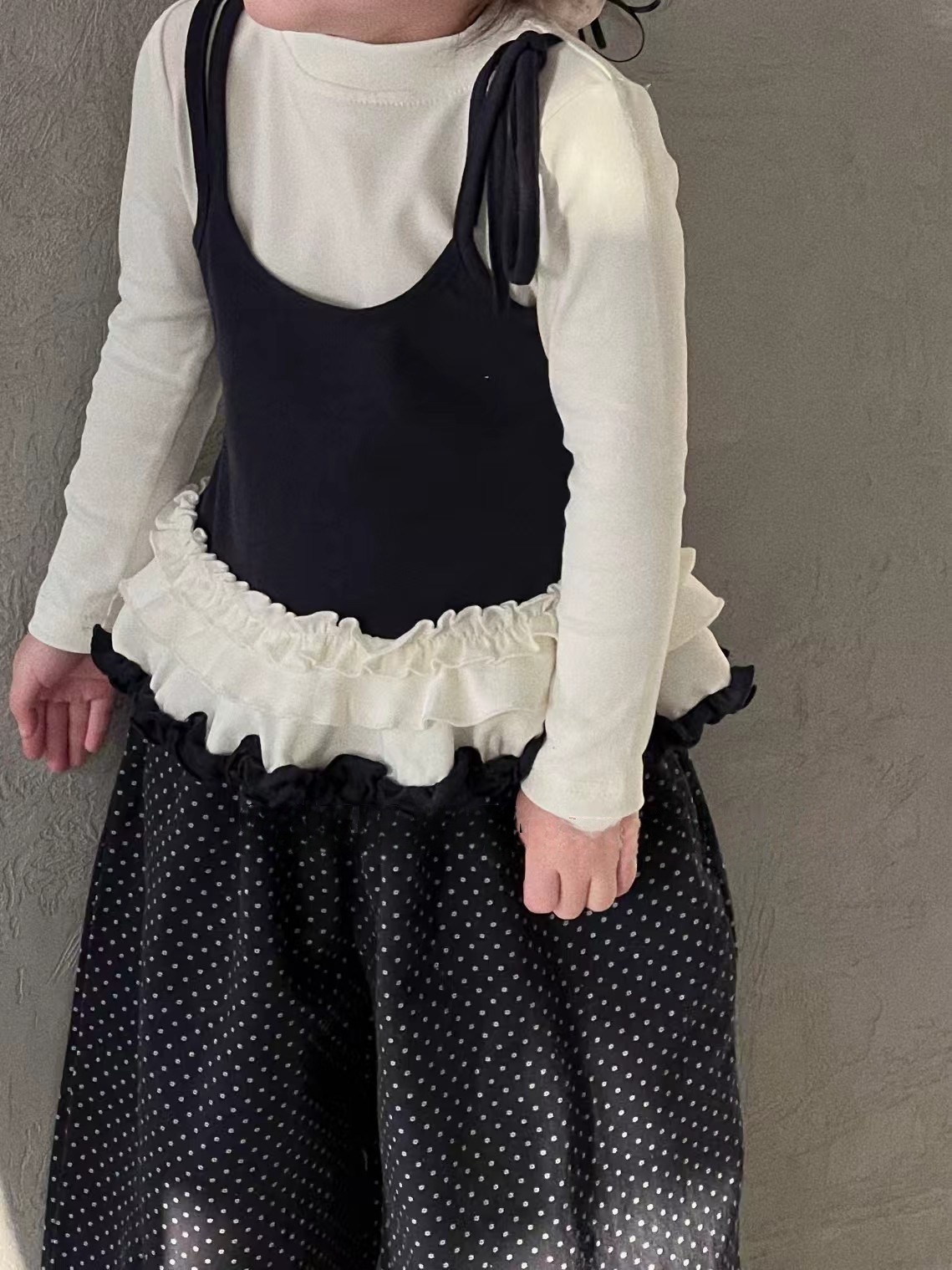 Фальшивая майка-топ с эффектом двухслойности [Специальное предложение, возврату и обмену не подлежит]; Брюки в горошек [Специальное предложение, возврату и обмену не подлежит]