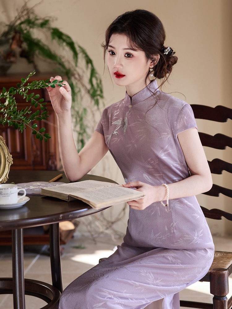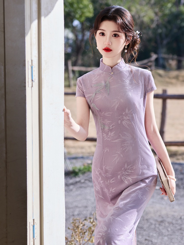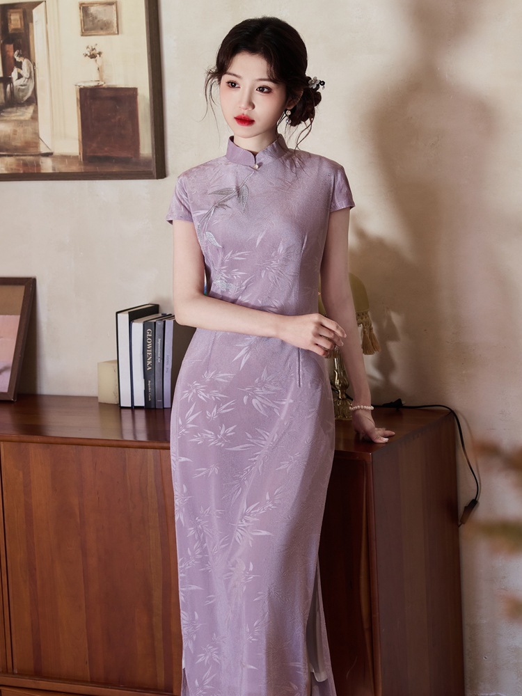 Пурпурный чонсам Bei Чжиюнь "Love Shadow" Новый китайский улучшенный молодой темперамент длинное платье